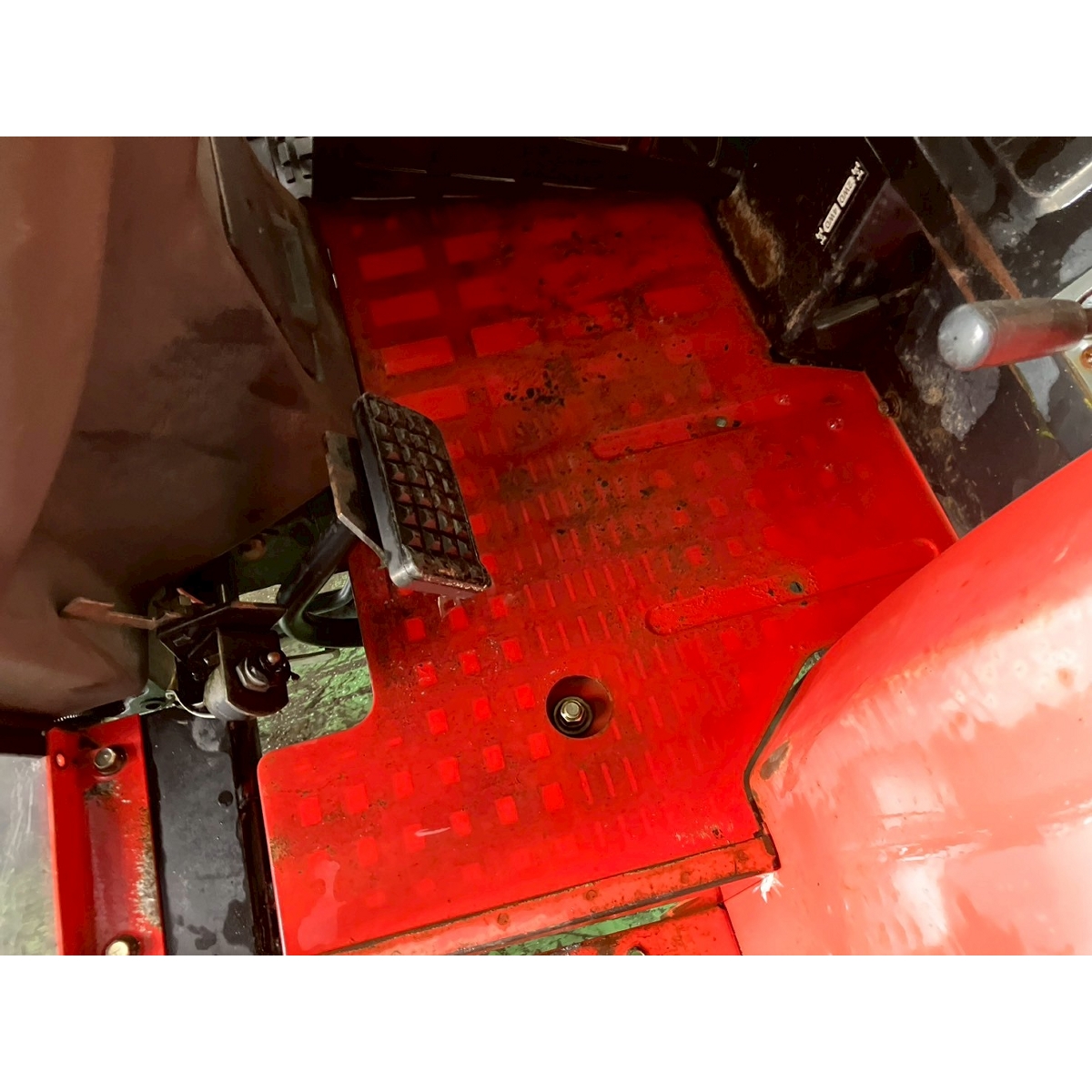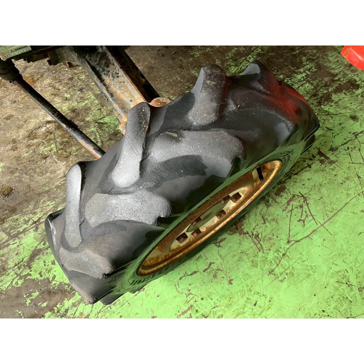 - without rotary, battery ok, with PS, worn all tires, cracked rear left tire, rotary does not shift up/down, faded exterior, tractor has rust, torn seat, cracked front mask