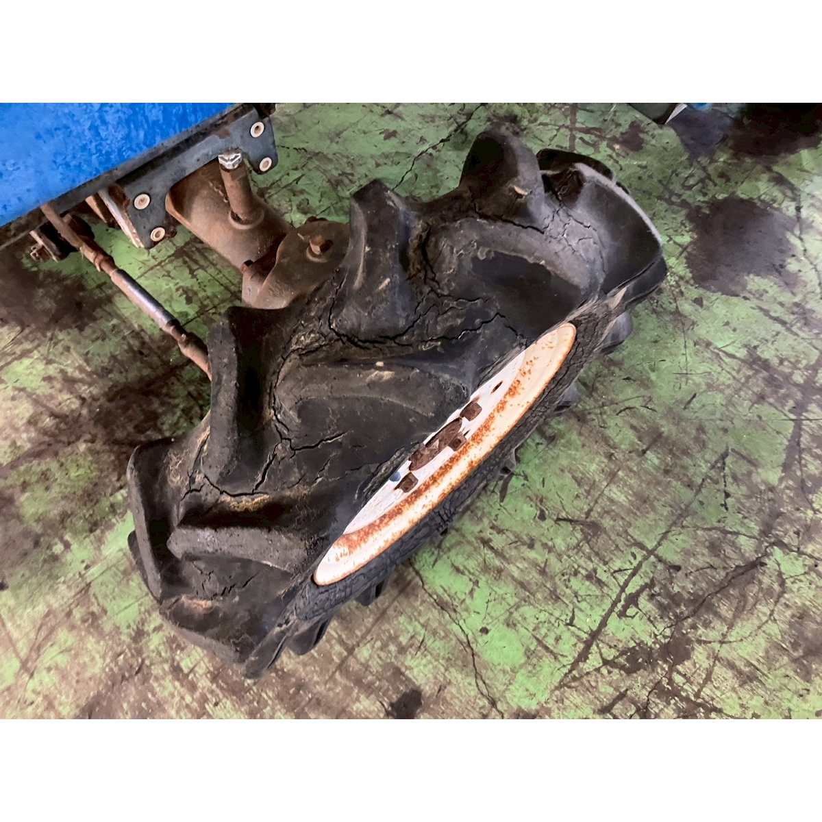 - with rotary, battery ok, without PS, cracked all tires, oil leak from front left tire's shaft, oil is seeping from rear left and right tires' shaft, cracked front mask, missing rotary's tale wheels