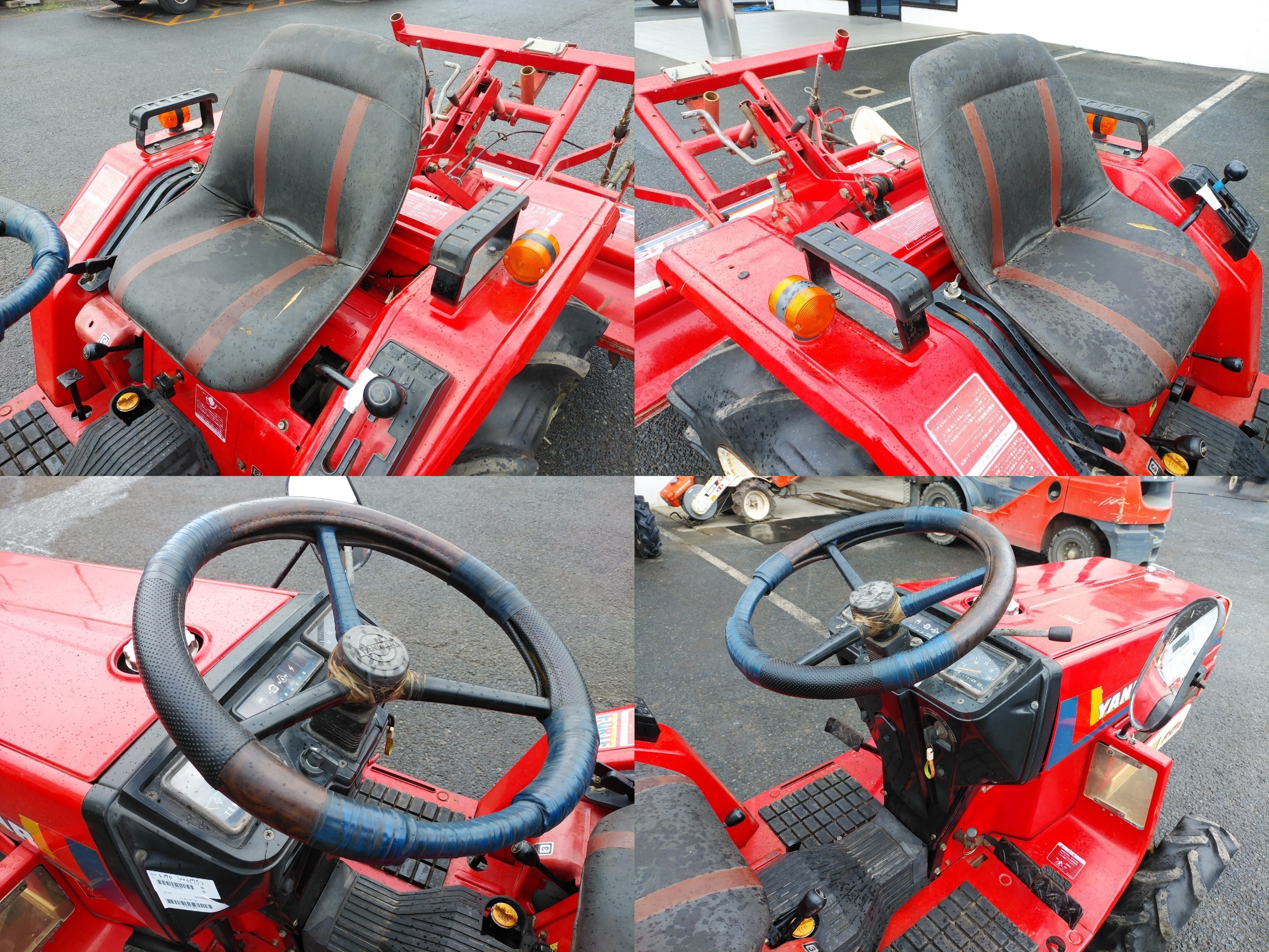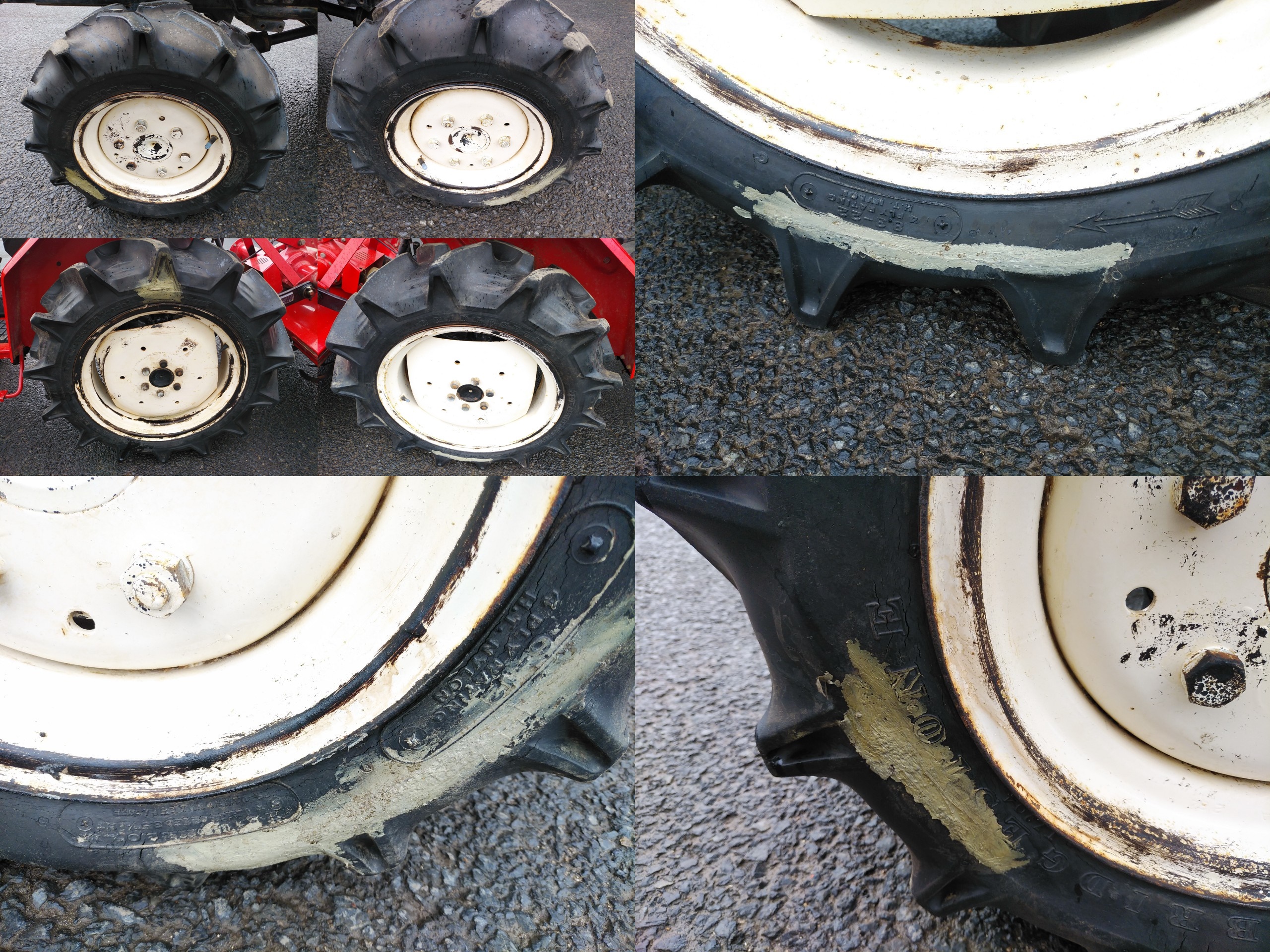 - CRACKED FRONT MASK AND ALL TIRES, OIL LEAK FROM FRONT HUB AND REAR TIRES AXIS OIL SEAL, BROKEN DEPTH OF TILLAGE WIRE AND SHIFT GATE, IT DON'T ROTARY UP/DOWN MOVE, BROKEN MUFFLER