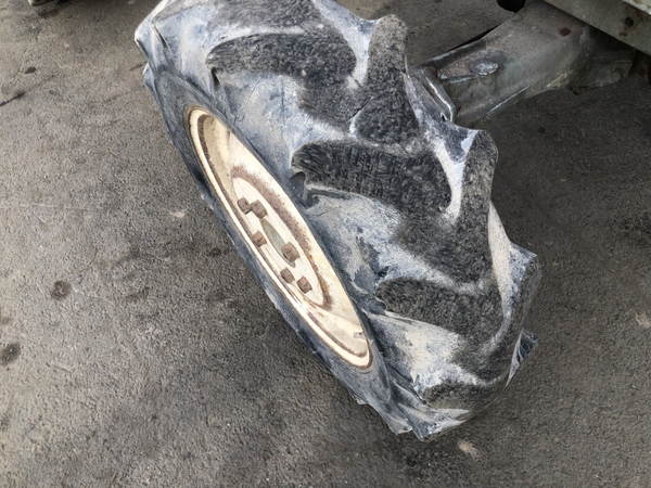 - without rotary, with PS, worn and cracked all tires, dented front part