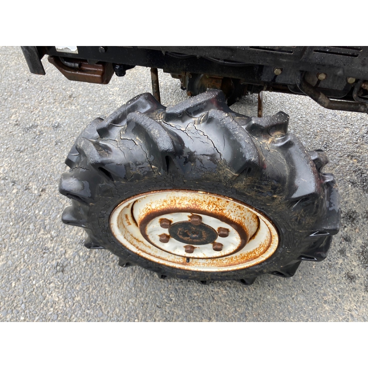 - battery ok, without PS, rusty exterior, torn seat, cracked tires, oil leak from rear right hub, white smoke, blowby gas, cracked side mirror, hole on tractor's rear body