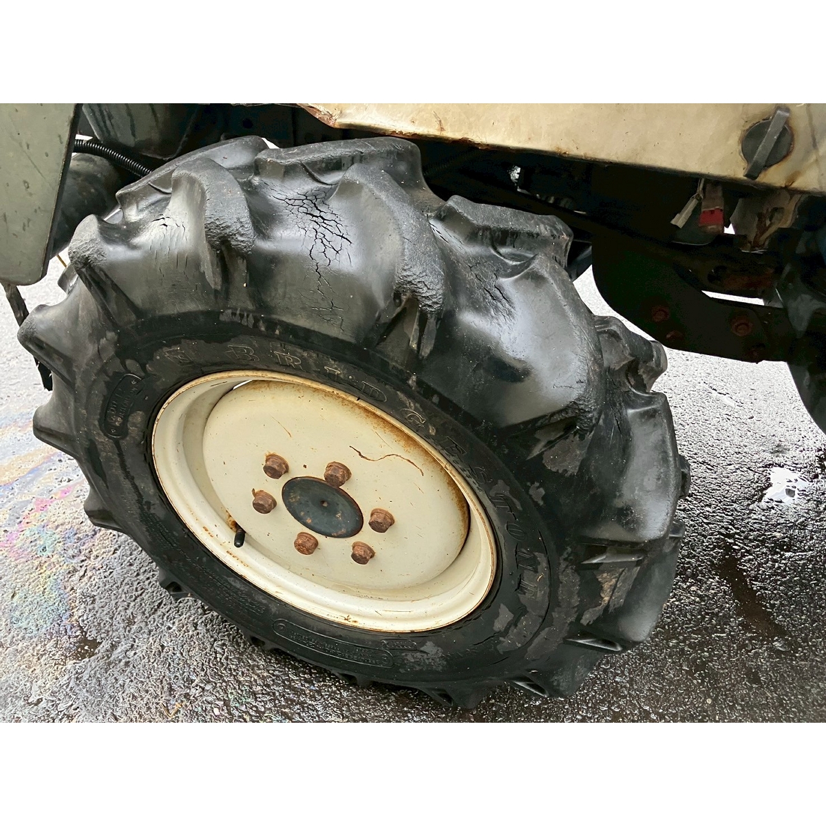 - with rotary, with canopy, no battery, without PS, cracked and worn all tires, torn rear left tire, no problem in operation, faded exterior, repainting, tractor has rust, torn seat, with front loader and bucket, condition has not been checked because fuel leaks from engine filter's air bleed hole when engine starts