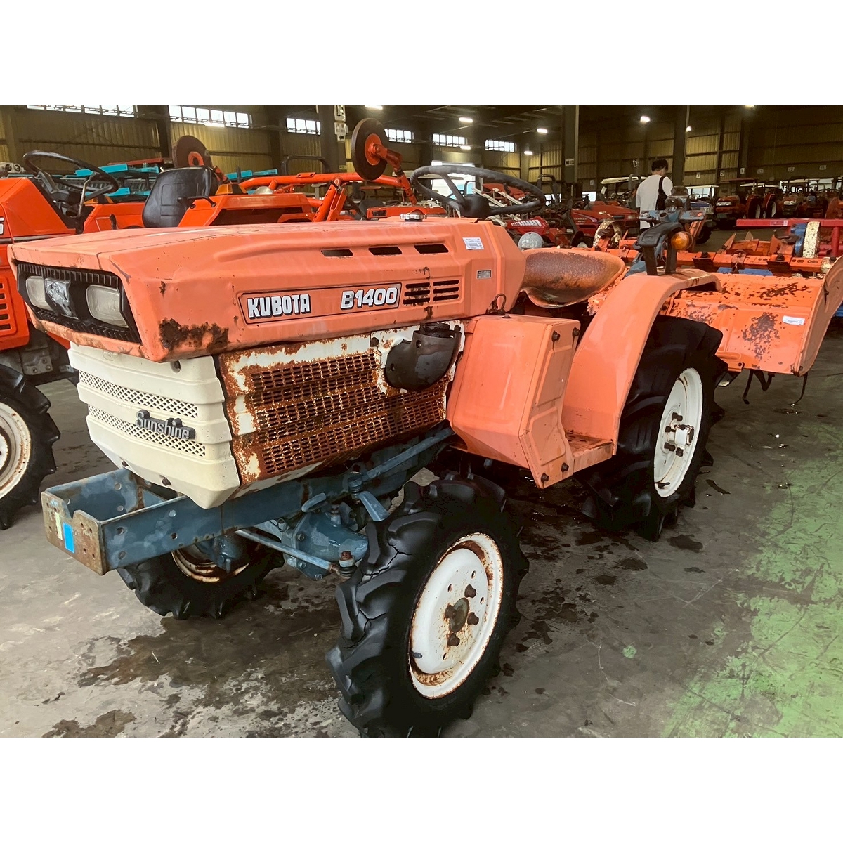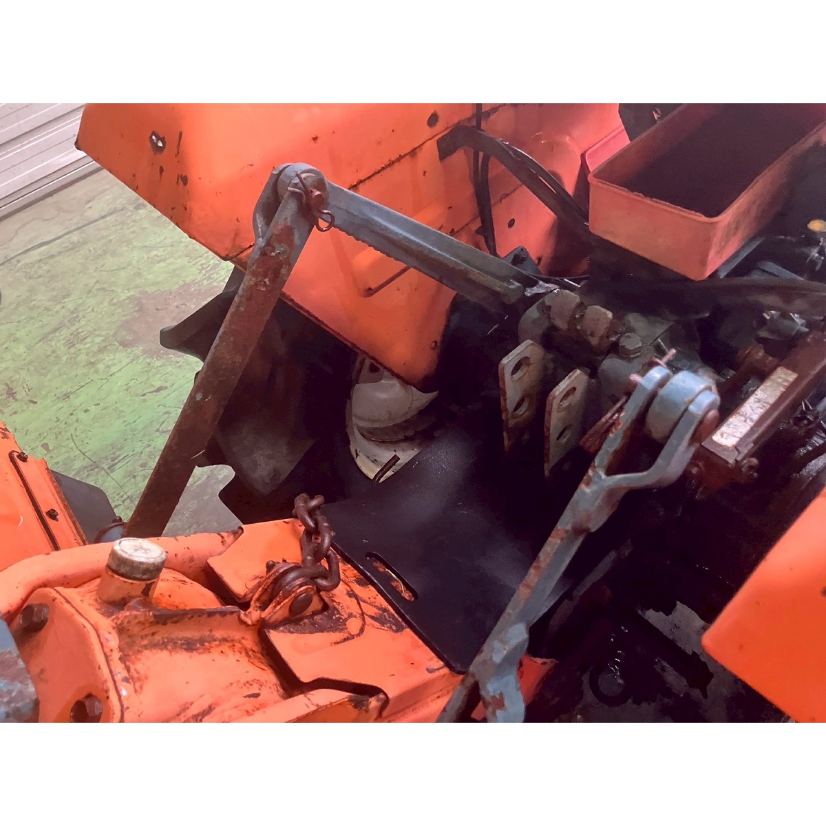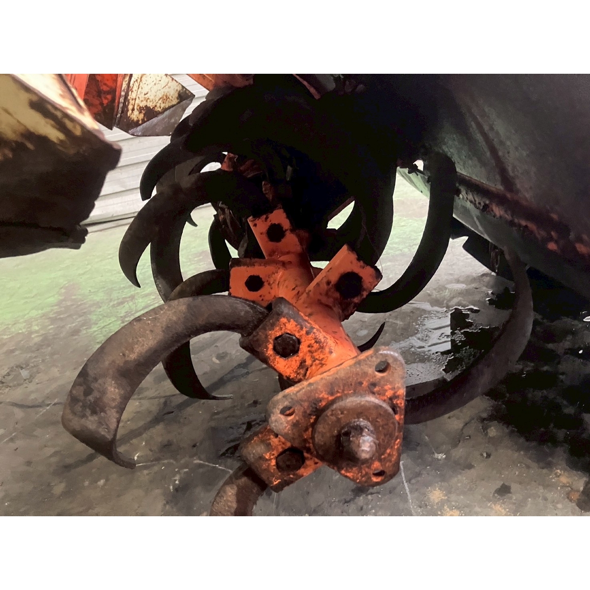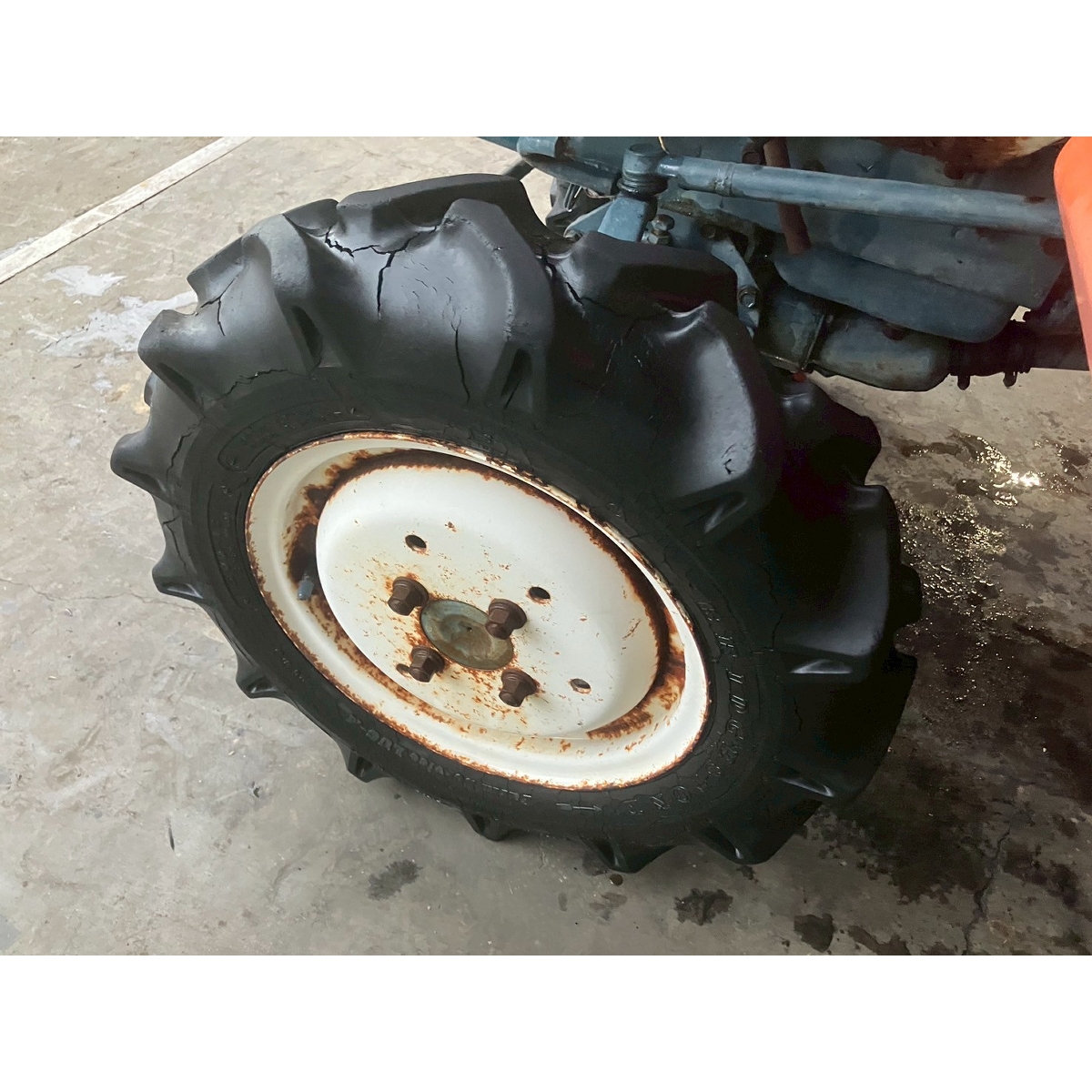 - with rotary, weak battery, without PS, cracked front tires, worn all tires, torn inside rear tires, faded exterior, tractor has rust, small holes on seat, missing rotary cover and right side cover, slightly oil leak from front right tire, loosen fan belt, right brake does not work, torn air hose, broken muffler, accelerator lever feels tight