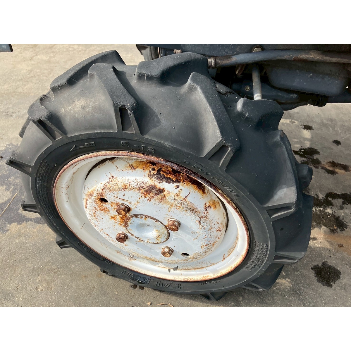 - with rotary, no battery, without PS, worn all tires, no problem in operation, tractor has rust, torn seat, slightly oil leak from front tires, run out of engine oil, white smoke comes out when we increase engine speed, cracking front mask