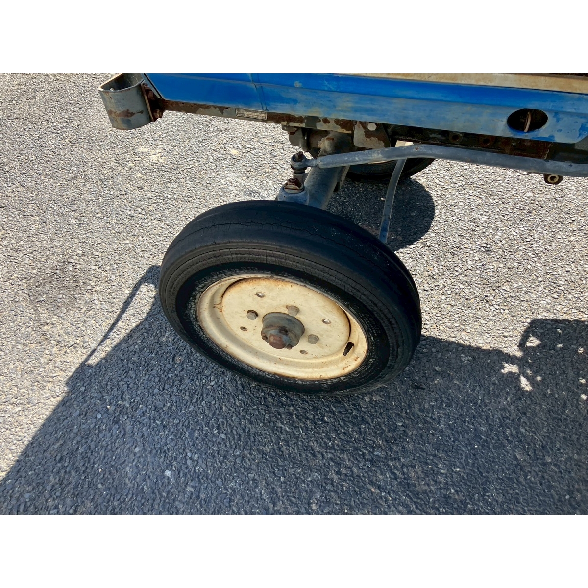 - without rotary, no battery, without PS, engine ok, missing top link and joint, working hour could be 1104 hours, slightly blowby gas (it would disappear by replacing oil), cracked front tires