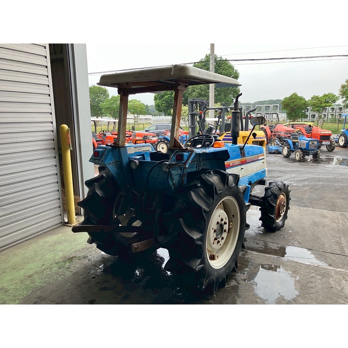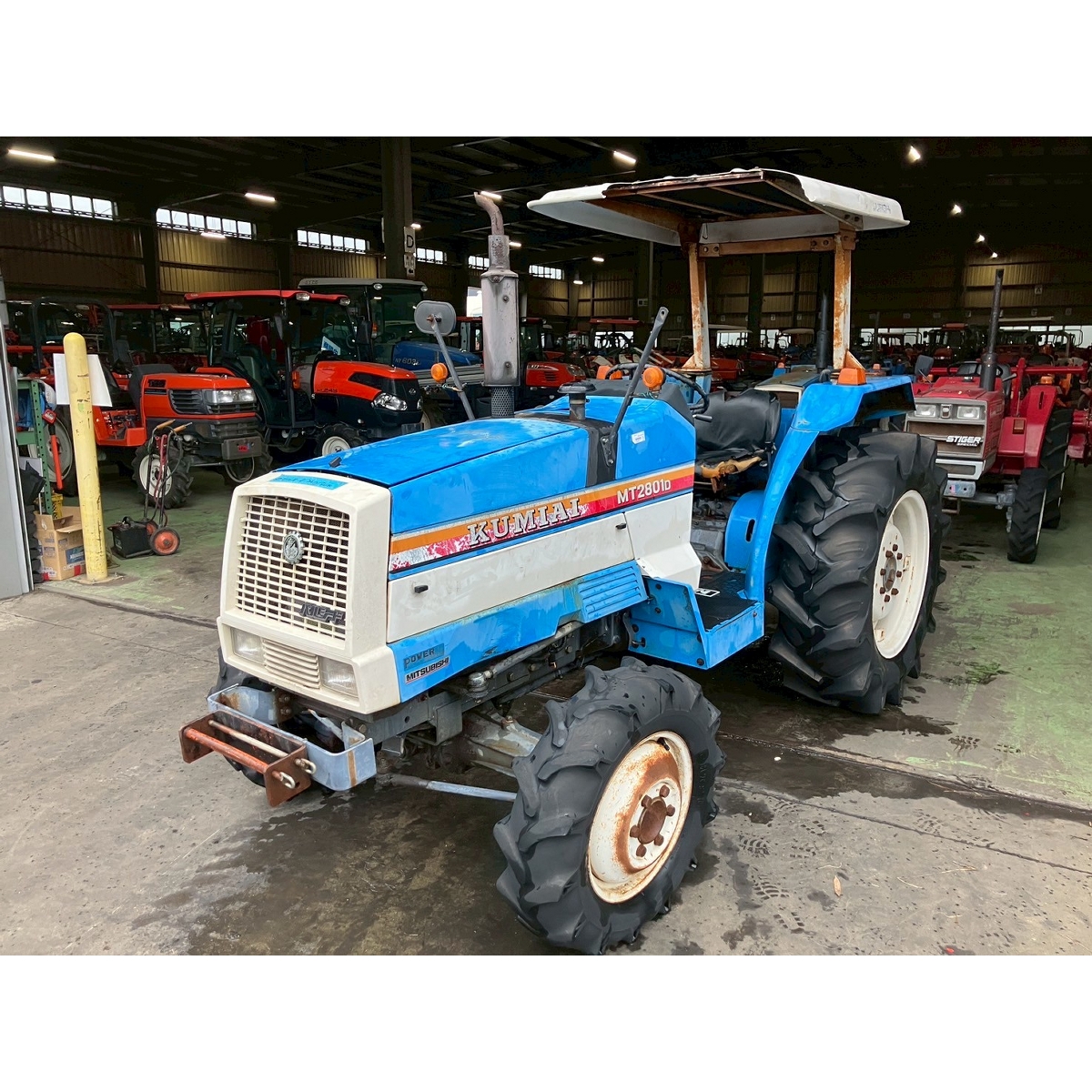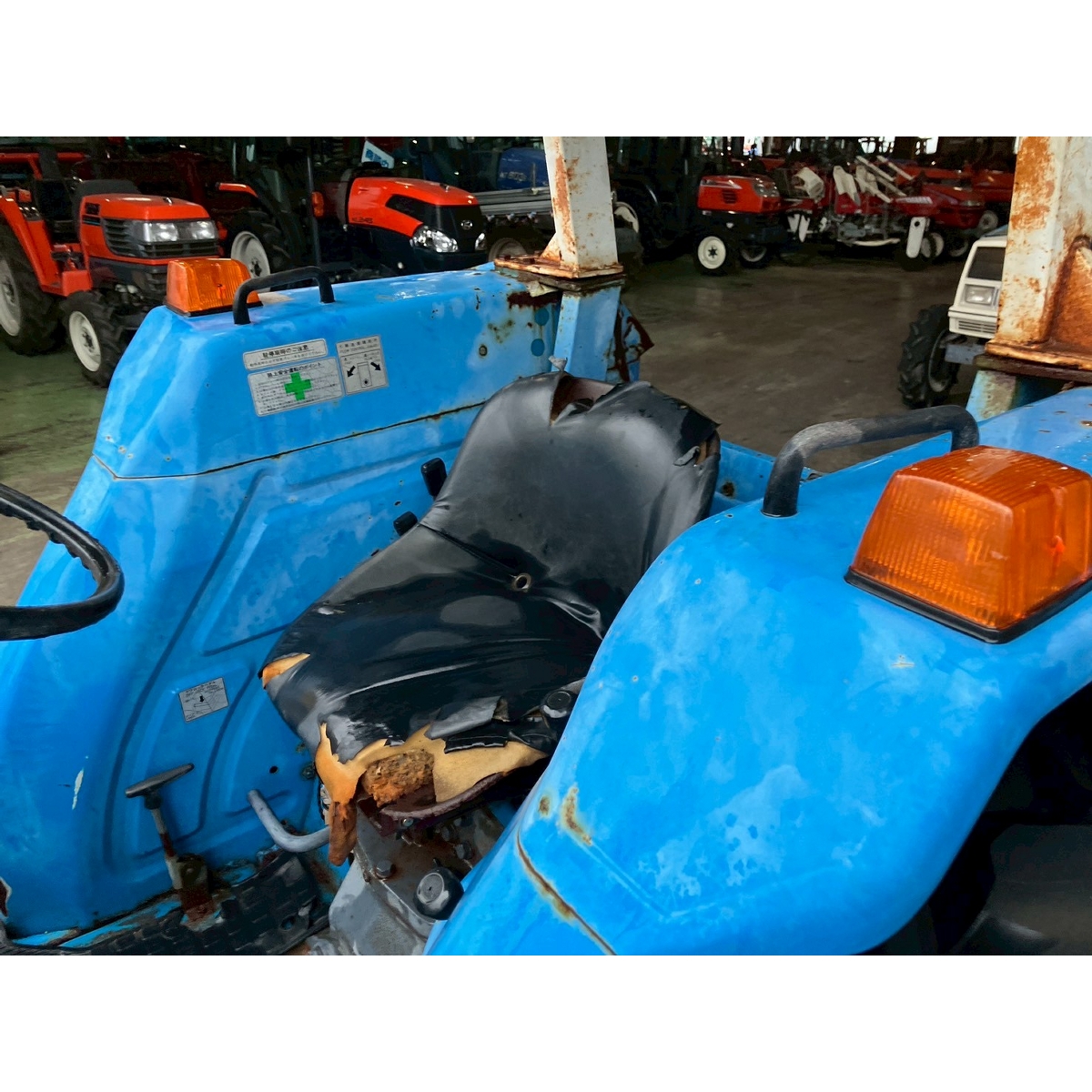 - Shift lever stiff, direct drive start, radiator water leak, oil seepage around right front wheel and engine block, top link missing, faded paint, rust, torn seat, damaged canopy