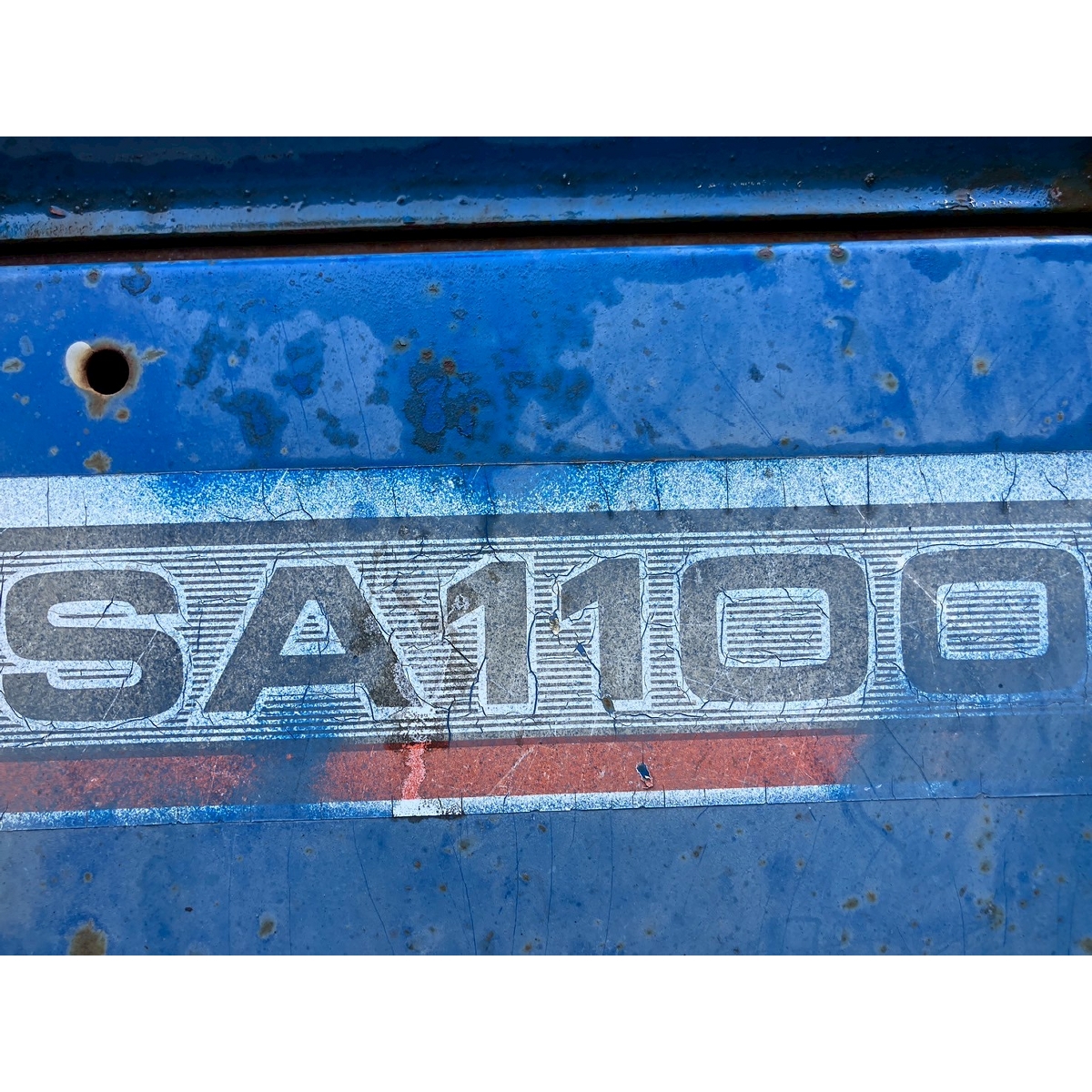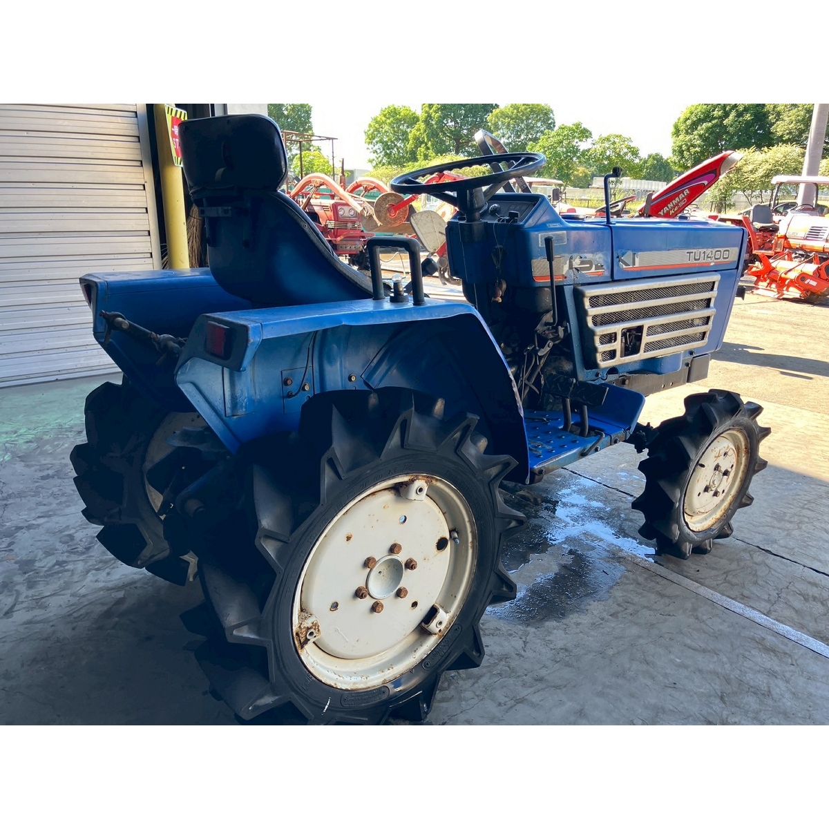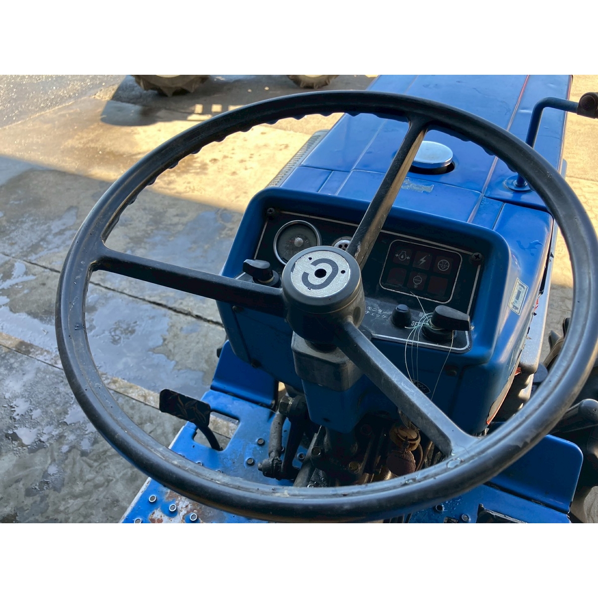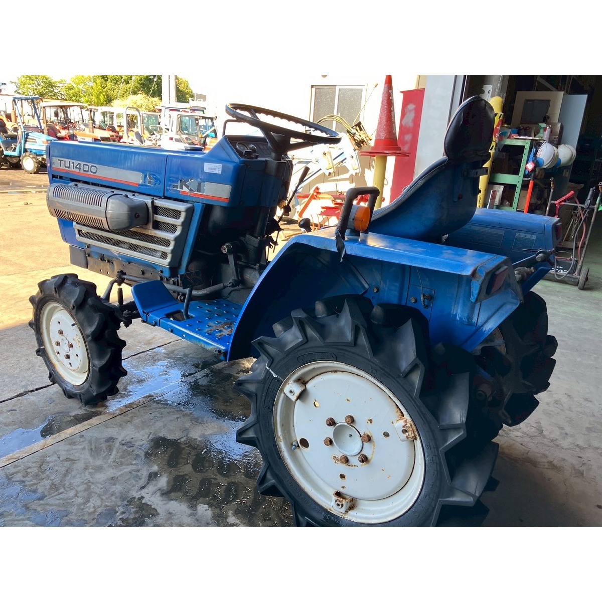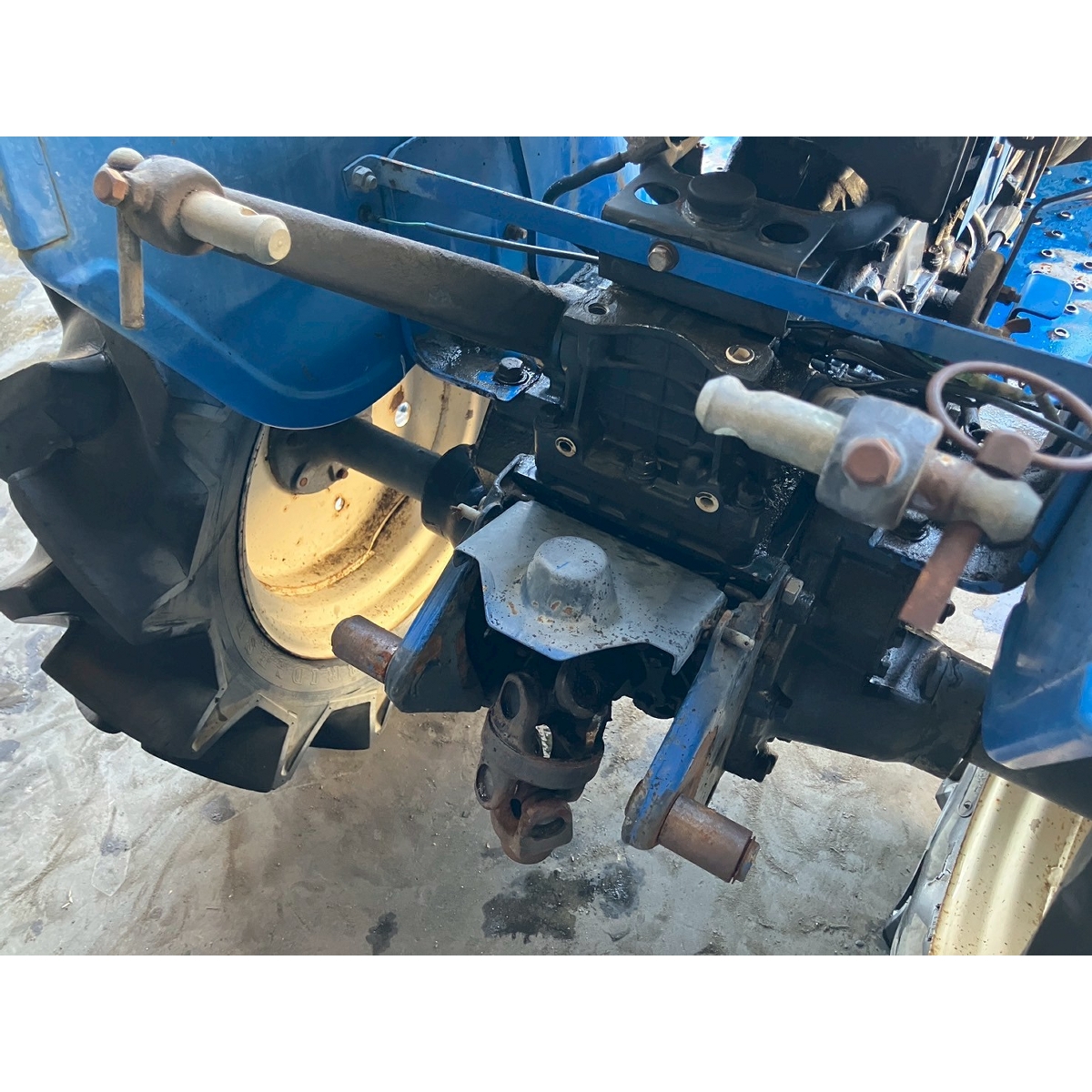 - with rotary, no battery, without PS, cracked front left tire and rear tires, no problem in operation, faded exterior, tractor has rust, torn seat
