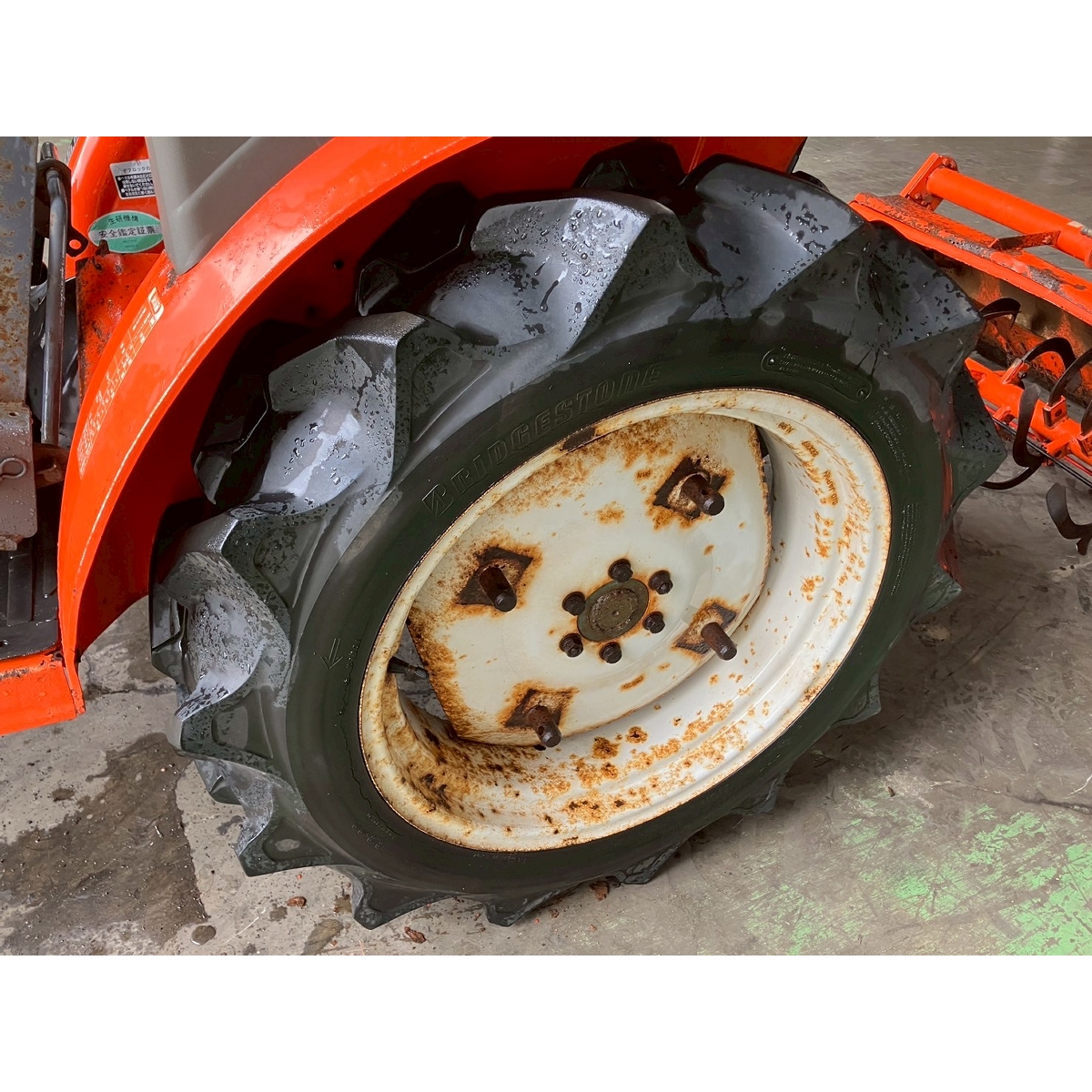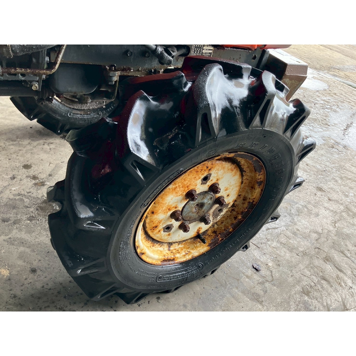 - with rotary, without PS, cracked front tires, rear tires in good condition, loose fan belt, torn seat, slightly oil leak from the hitch and hub, rattling rotary lifting, noise comes out because of bad oil circulation