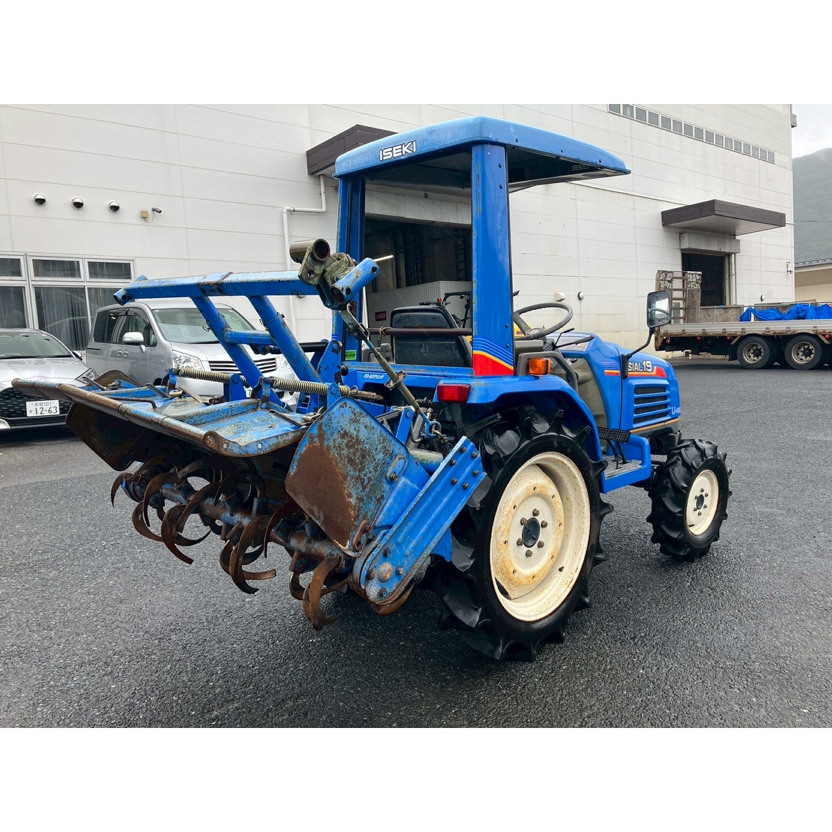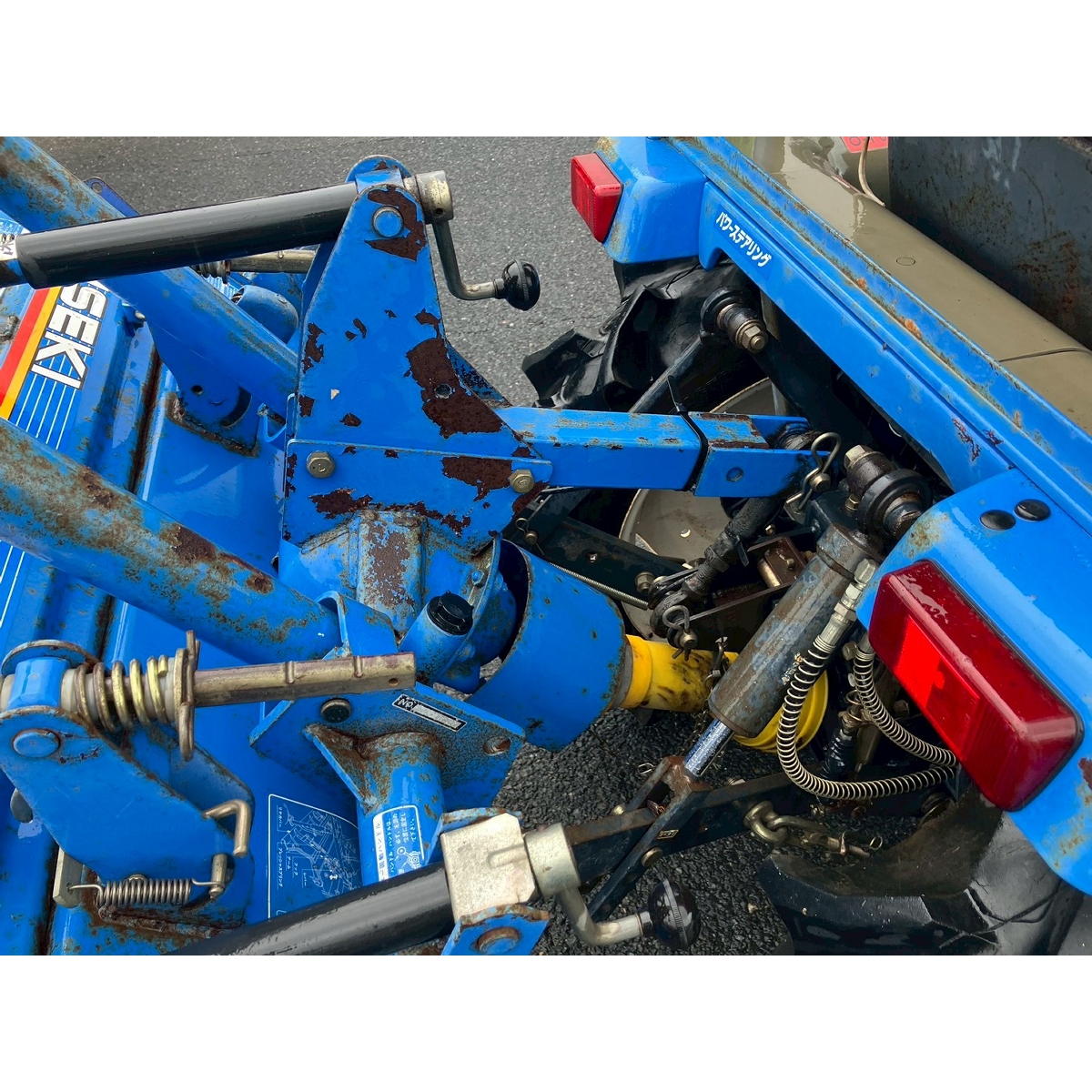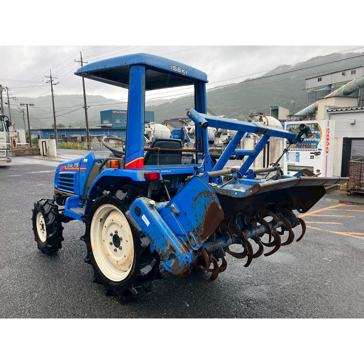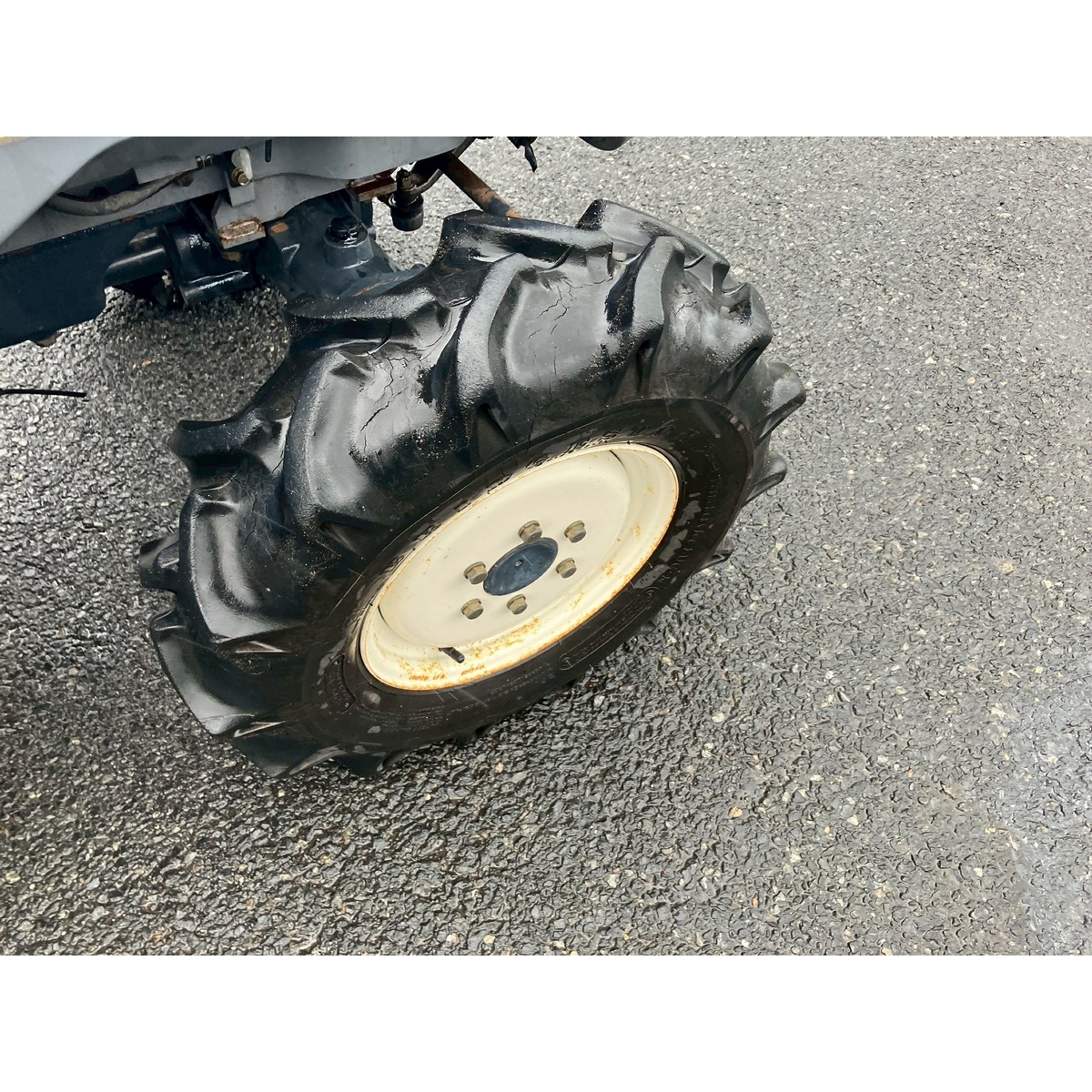 - with rotary, with canopy, battery ok, with PS, engine ok, cracked all tires, rotary has rust, rusty bonnet