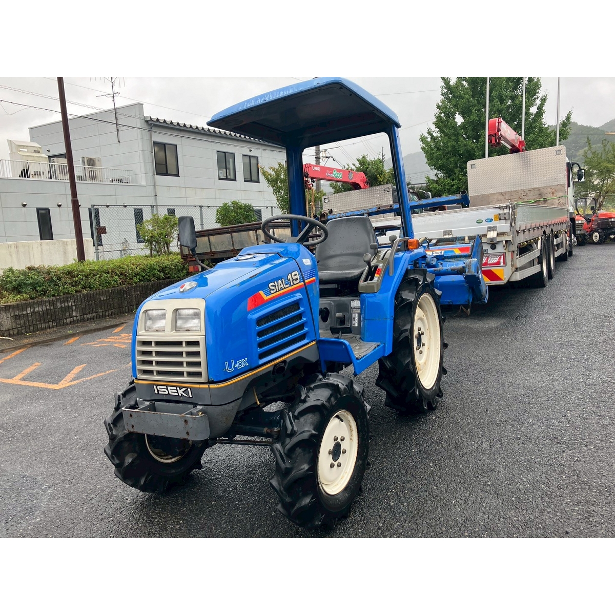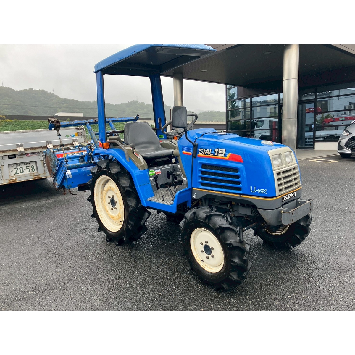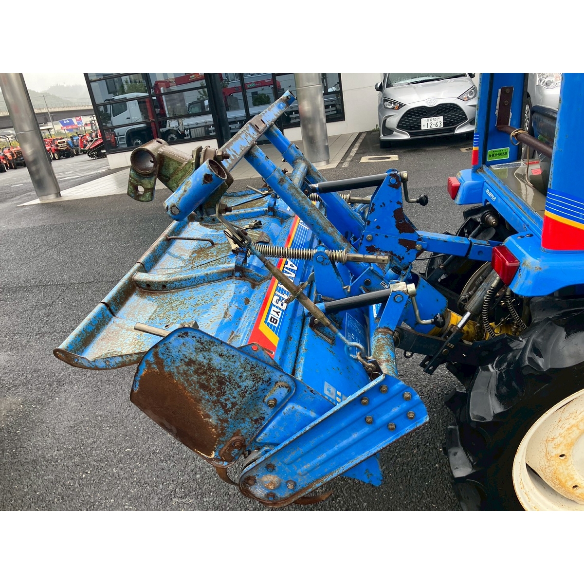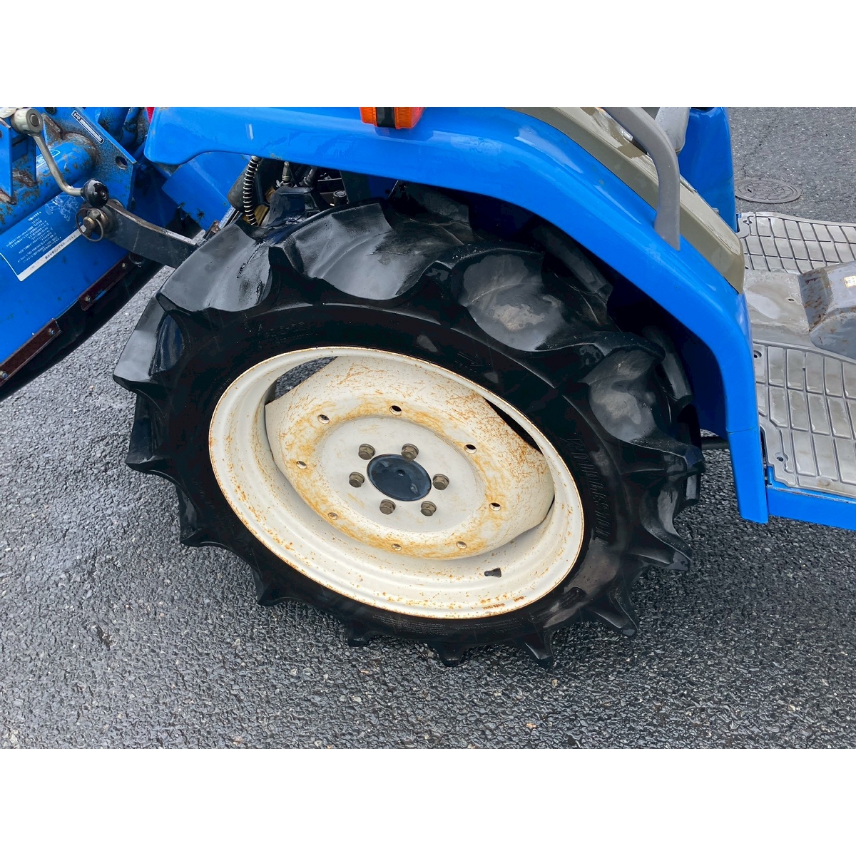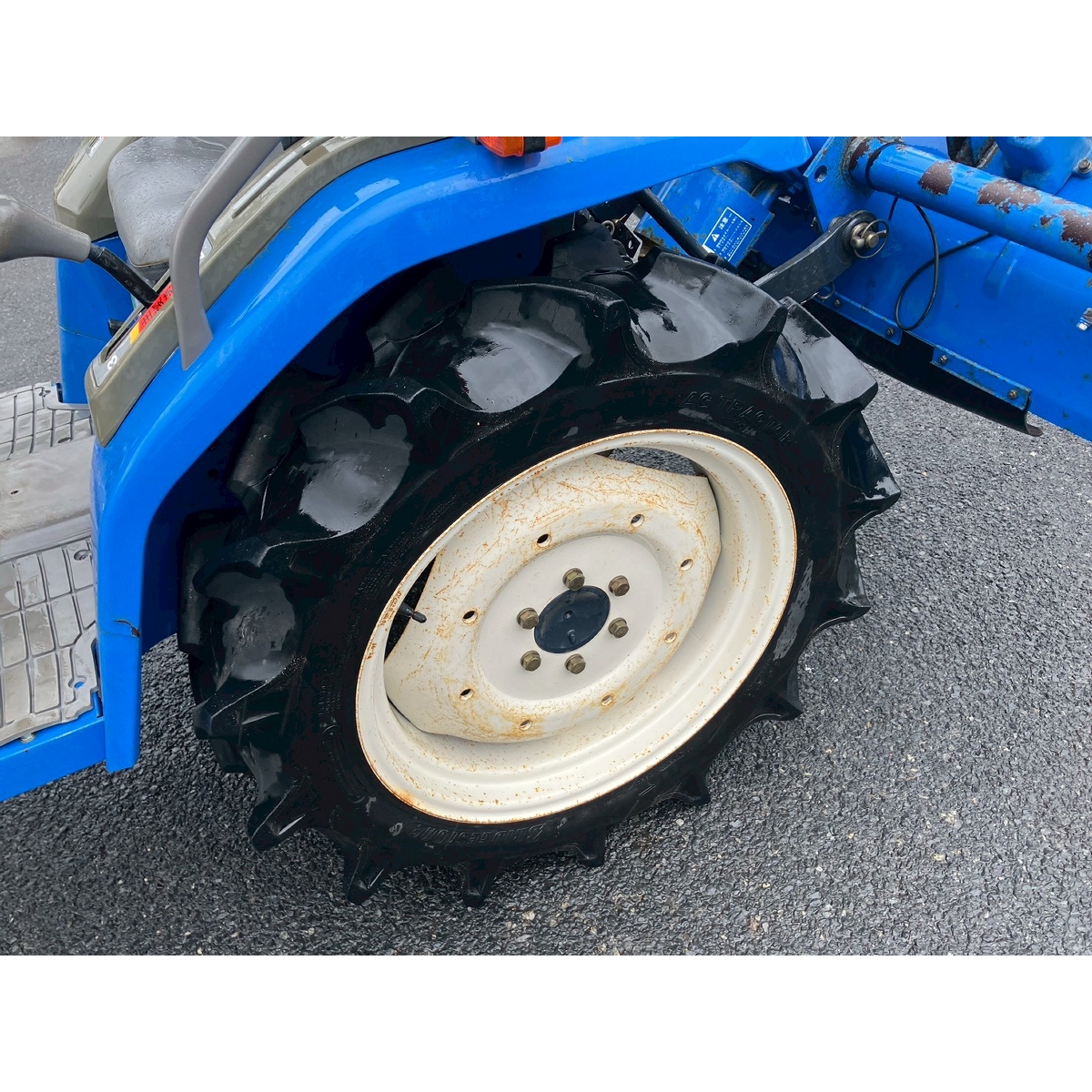 - with rotary, with canopy, battery ok, with PS, engine ok, cracked all tires, rotary has rust, rusty bonnet