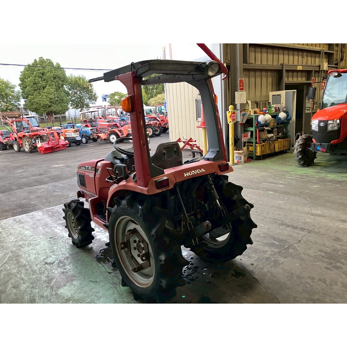 - without rotary, with canopy, no battery, without PS, cracked front tires and rear left tire, no problem in operation, missing canopy's roof part, loose fan belt, blowby gas, rotary shift up/down if it is connecting the battery, missing top link