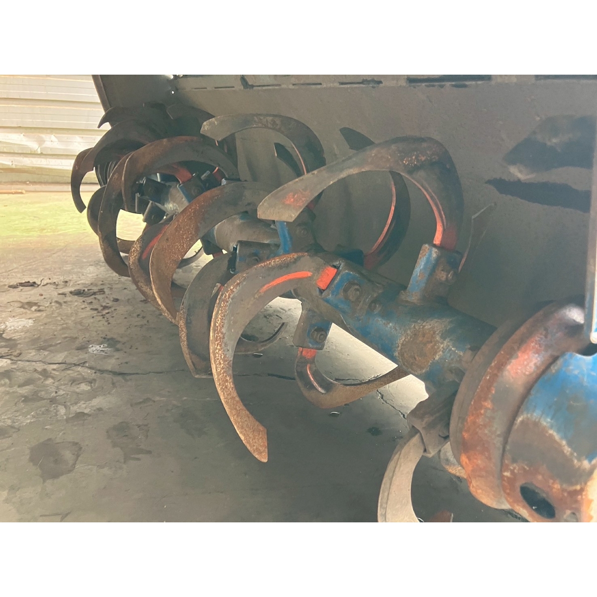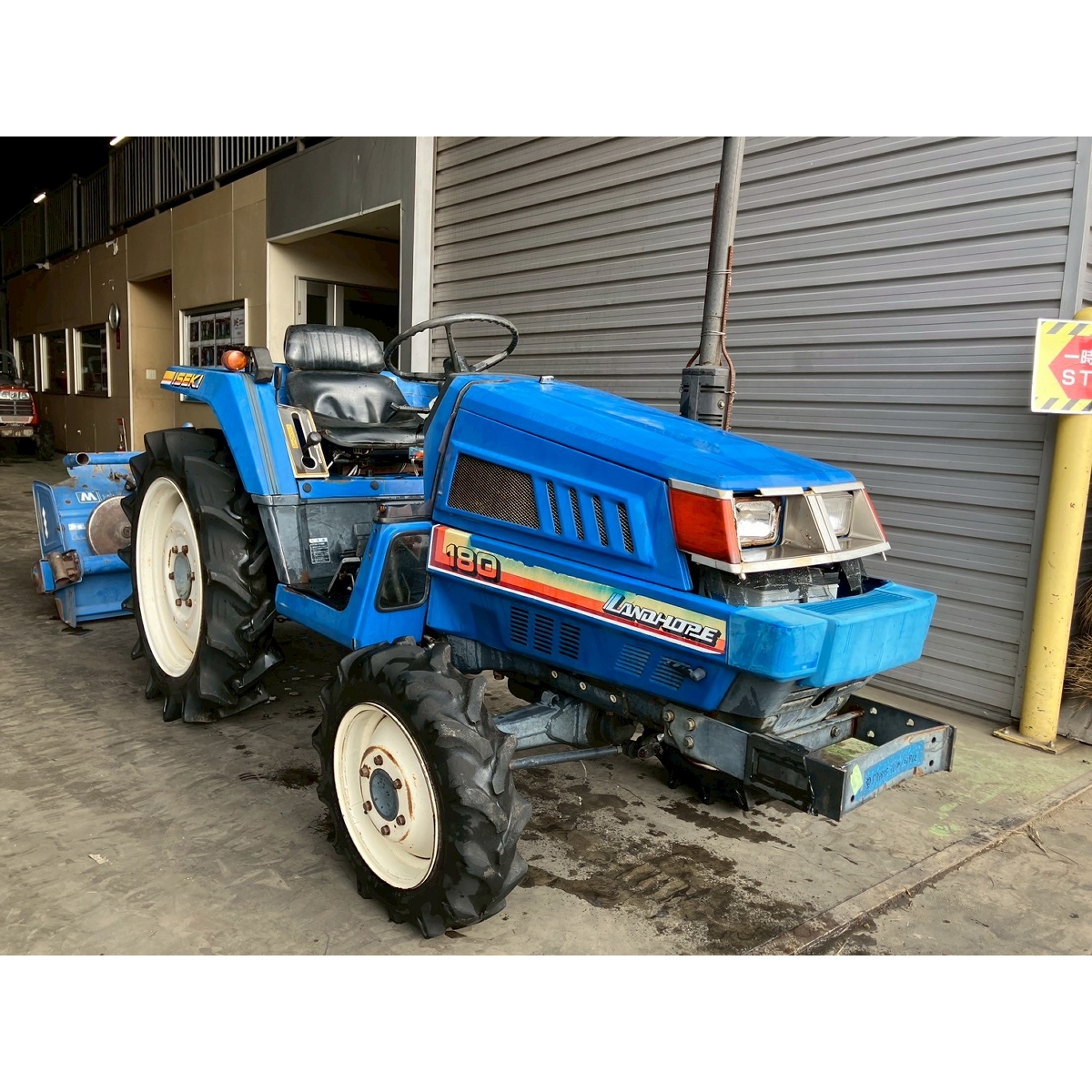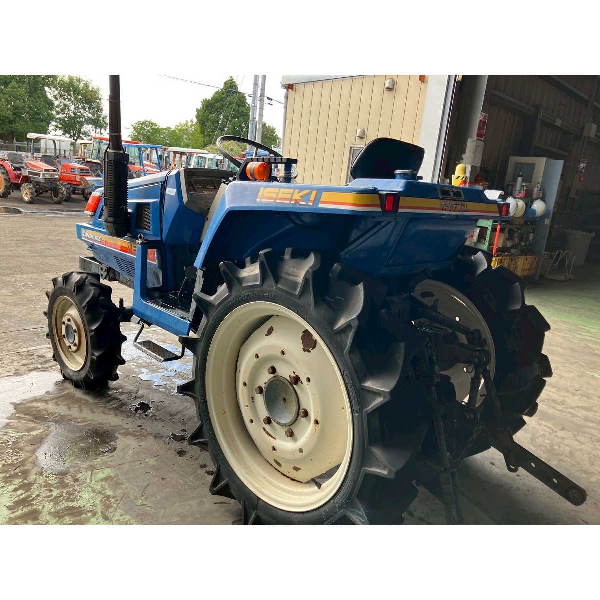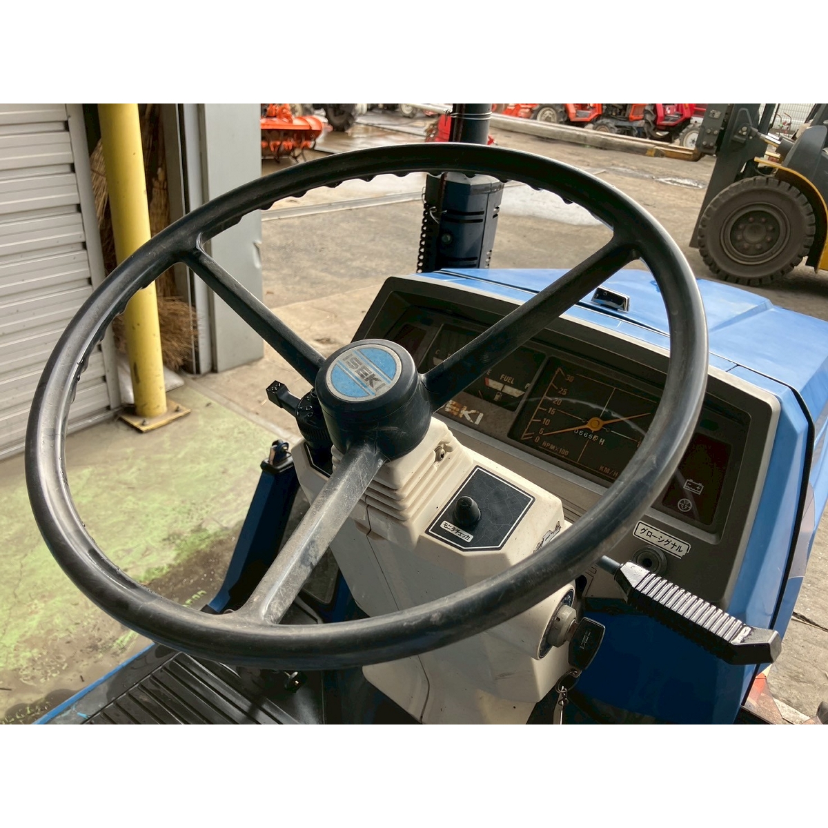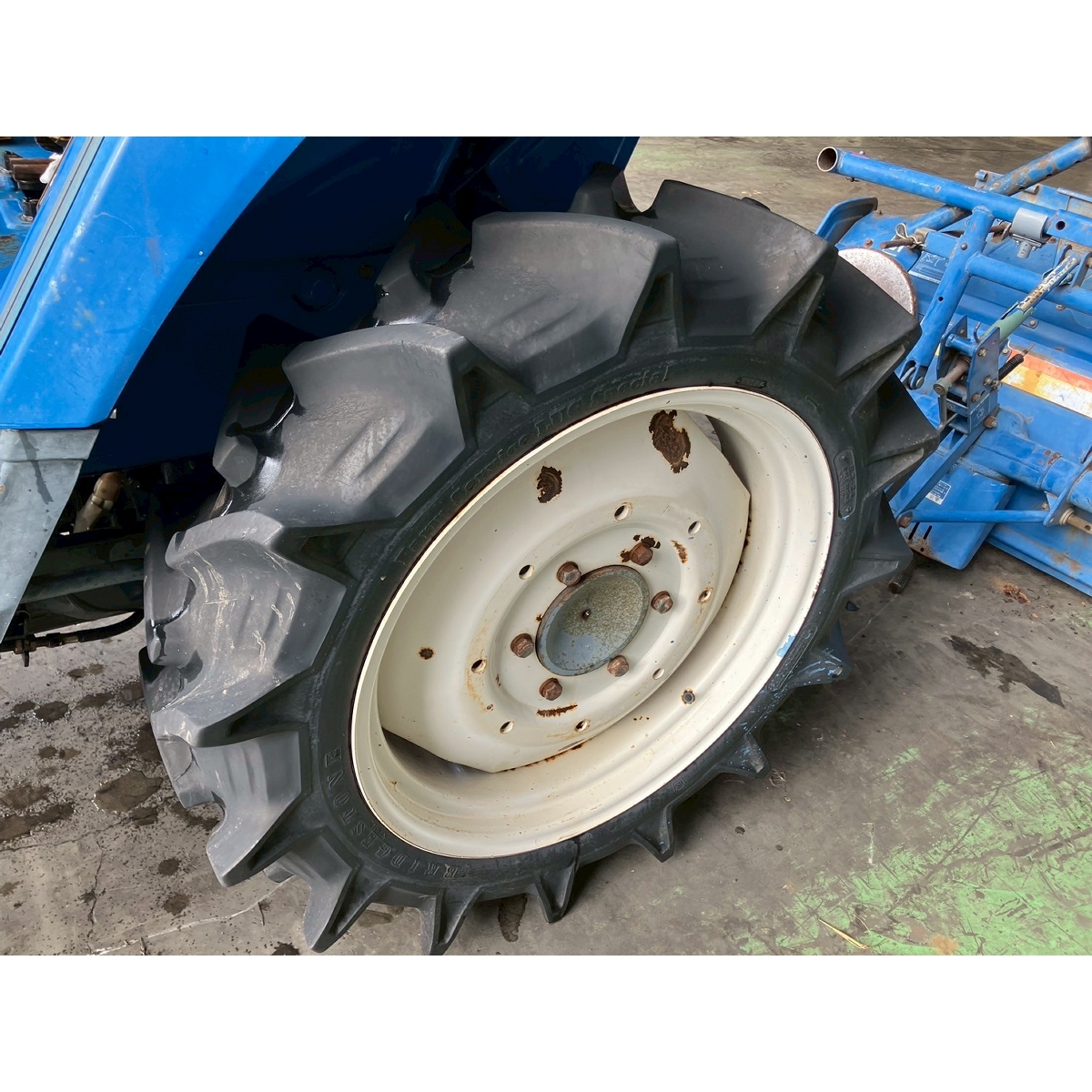 - with rotary, no battery, without PS, worn front left tire and rear right tire, PTO does not turn, slightly blowby gas, gear shaft comes off, gear does not work and tractor does not travel, slightly oil leak from engine part, dented and cracked front mask