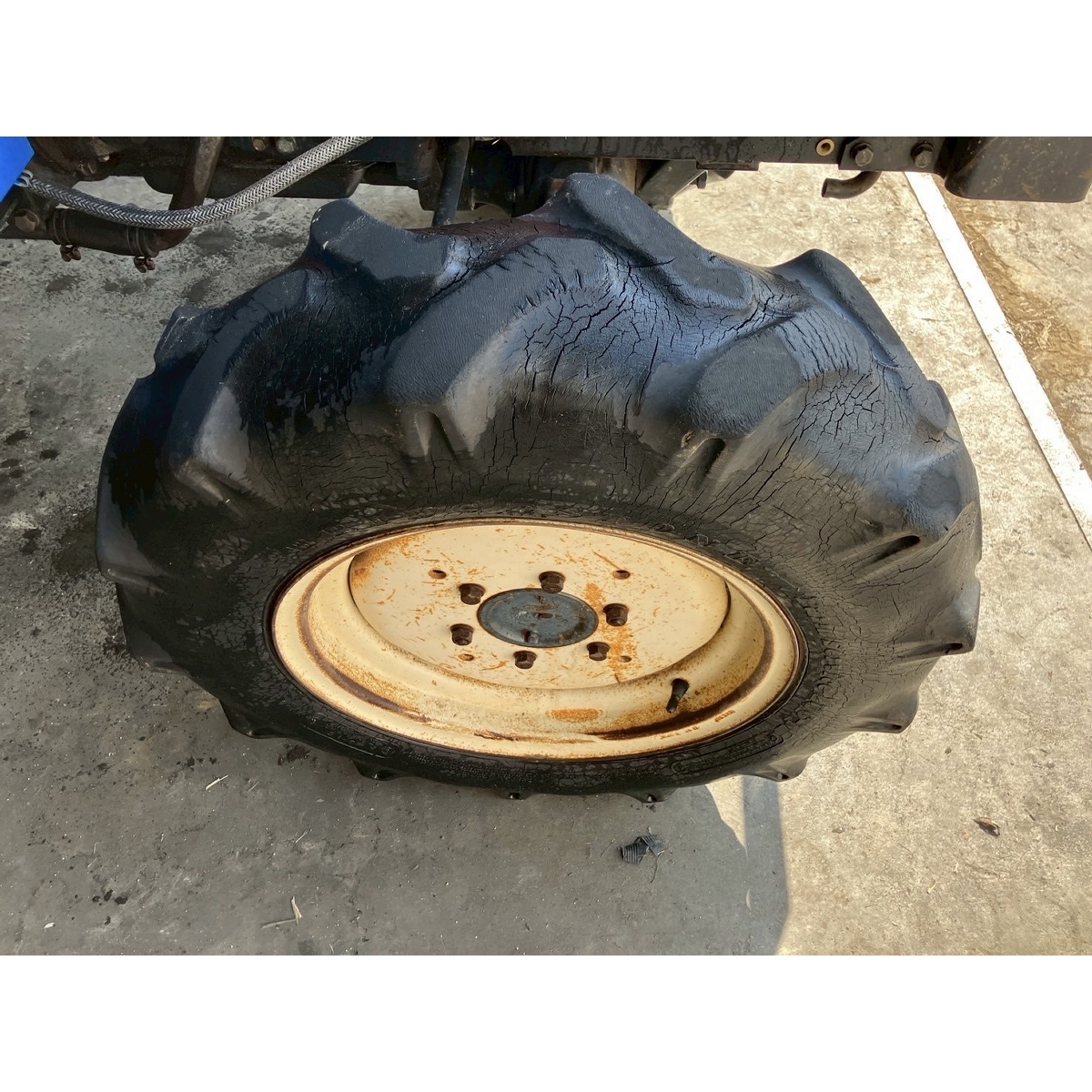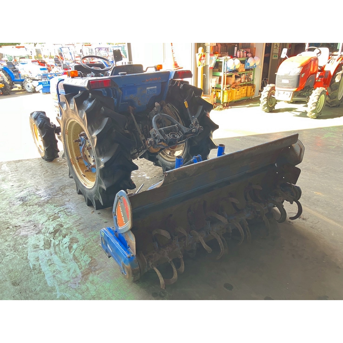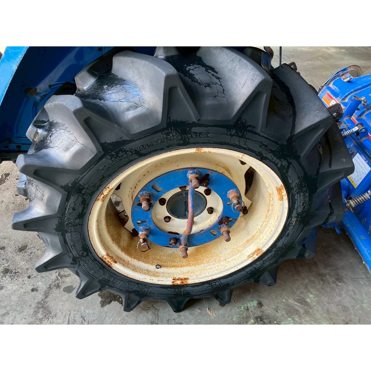 - with rotary, with PS, cracked and worn all tires, broken tractor's bottom part of oil pipe and oil leaking (run out of transmission oil), slightly oil leak from bottom part of engine, rusty clutch, brake, and accelerator and these does not return smoothly