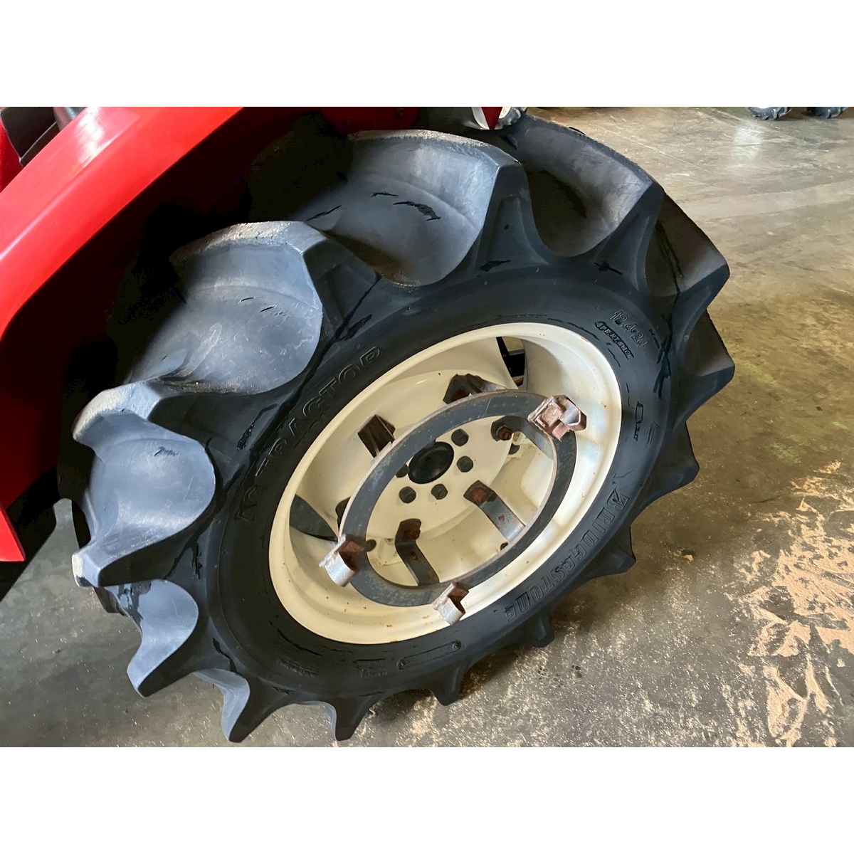 - no rotary, with power steering, crack tires, torn seat, loose fanbelt, oil leak undercarriage, good working