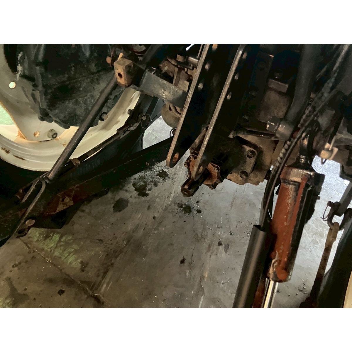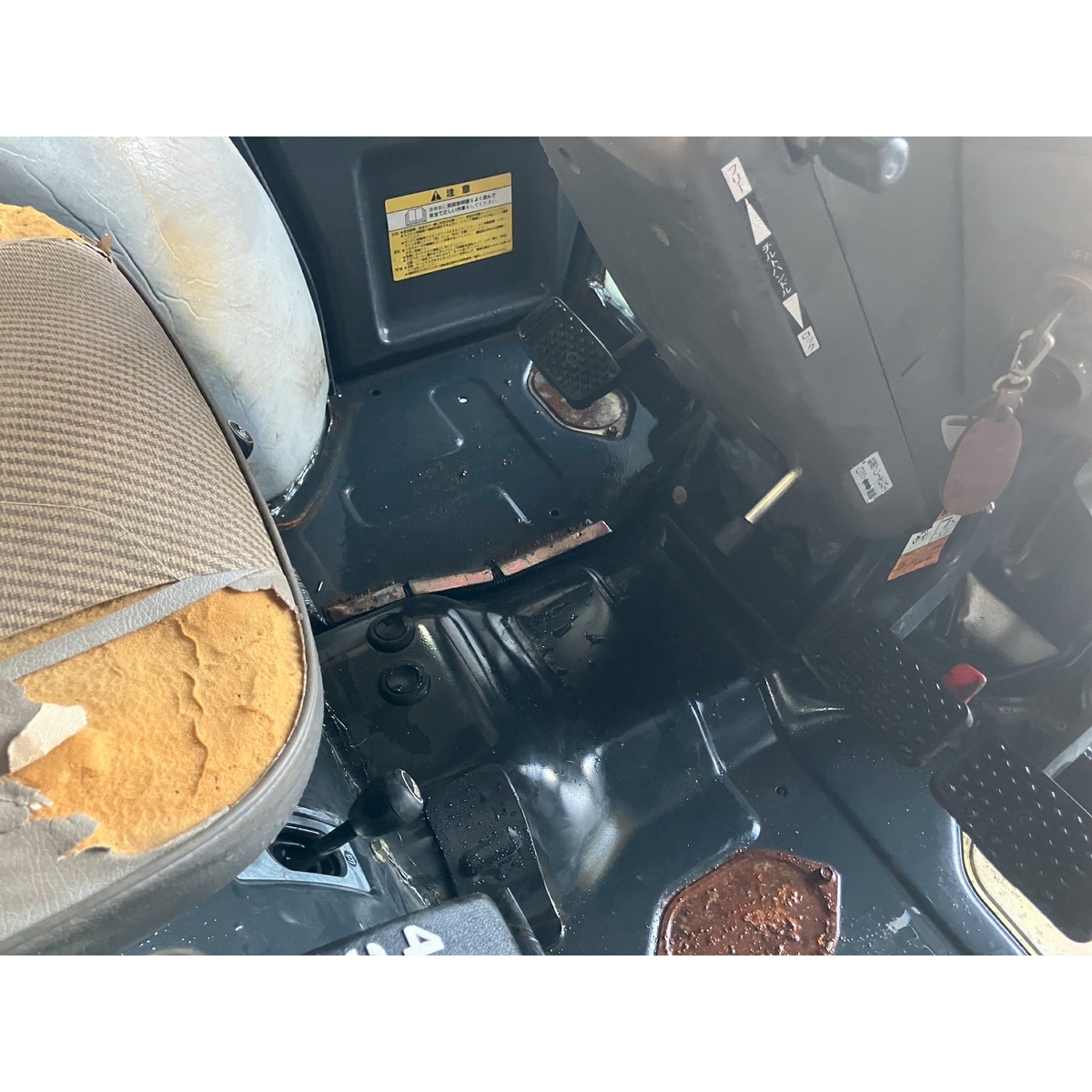 - without rotary, battery ok, with cabin, with PS, cracked all tires, PTO lever feels tight and lever does not move, oil leak from around tires, faded exterior, torn seat