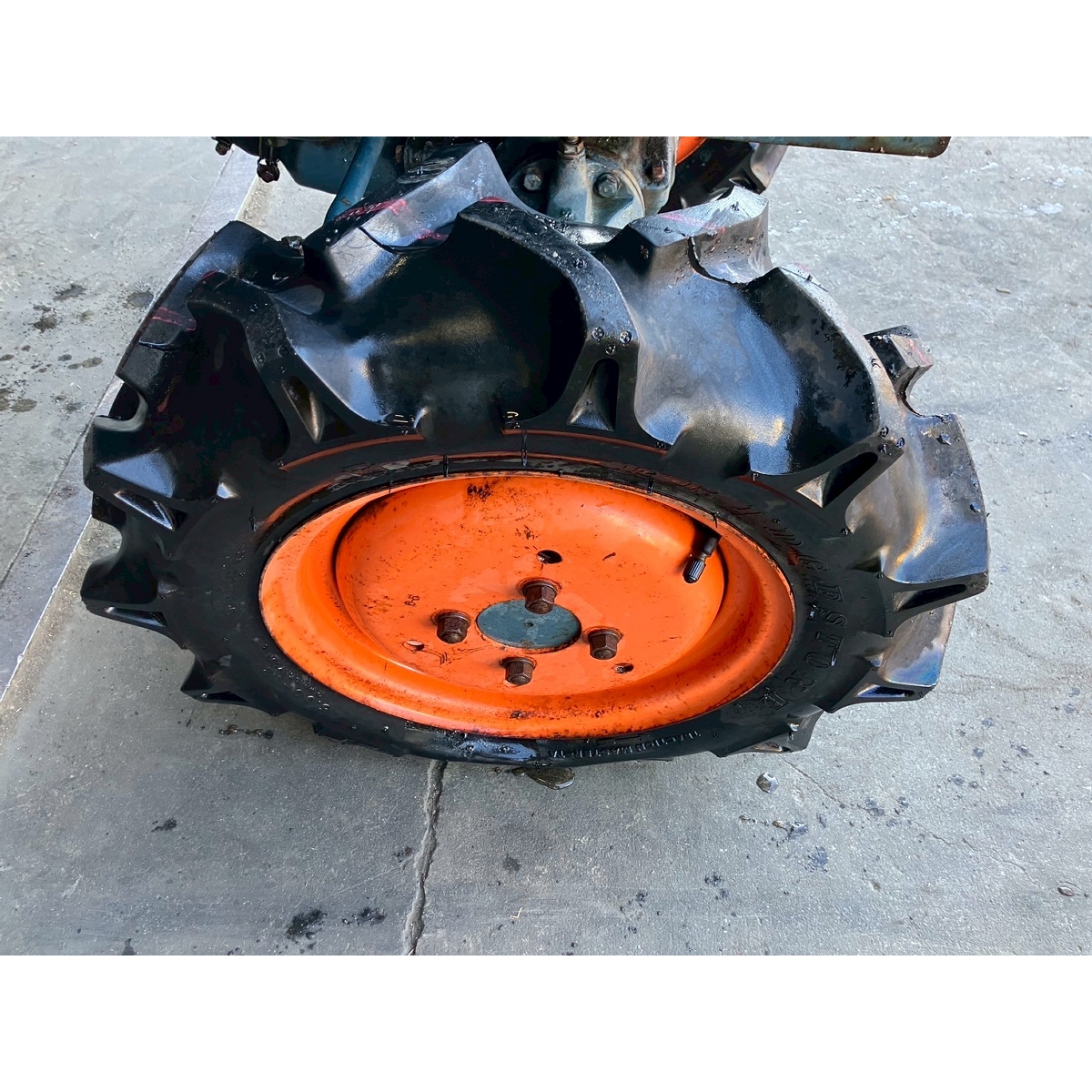 - with rotary, no ps, battery ok, worn front tire, crack & worn rear tire, loose fanbelt, rusty