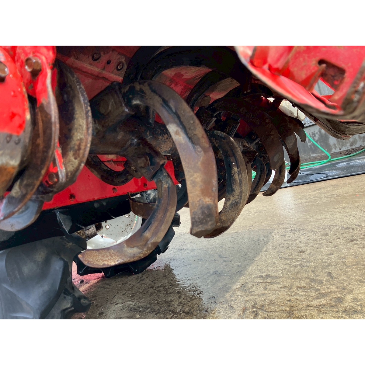 - with rotary, battery weak, without PS, worn tires (front & rear), some noise and wobble but disappears when shifted into powerful gear, PTO clutch disengaged then rotation starts slowly, faded paint, mask light cracked, mask partially detached