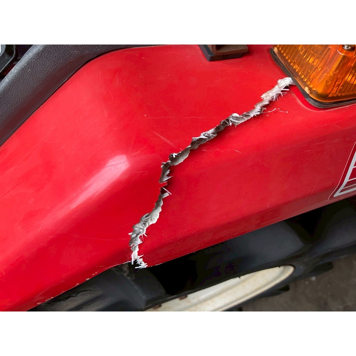 - without rotary, battery weak, without PS, cracked tires (front & rear), rotary up/down not working, rust, torn seat, body cracked, lower part of right side cover detached, oil leak underneath, no water in radiator