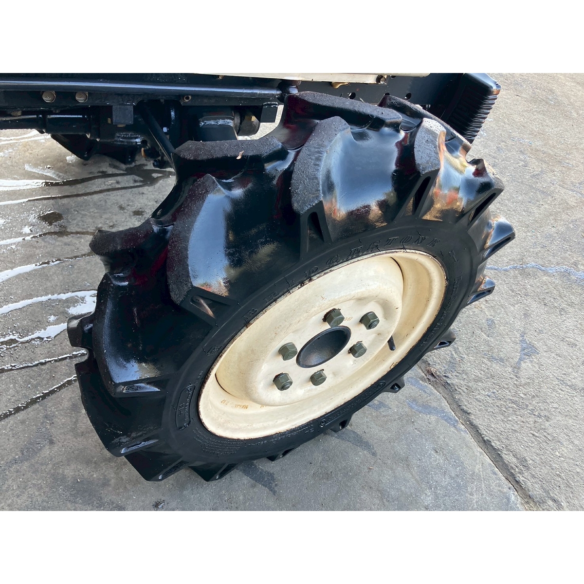 - with rotary, no battery, without PS, cracked and worn rear tires, no problem in operation, faded exterior, tractor has rust, torn seat, repainting a part of tractor, hole on cracked front mask, cracked plastic part around foot space
