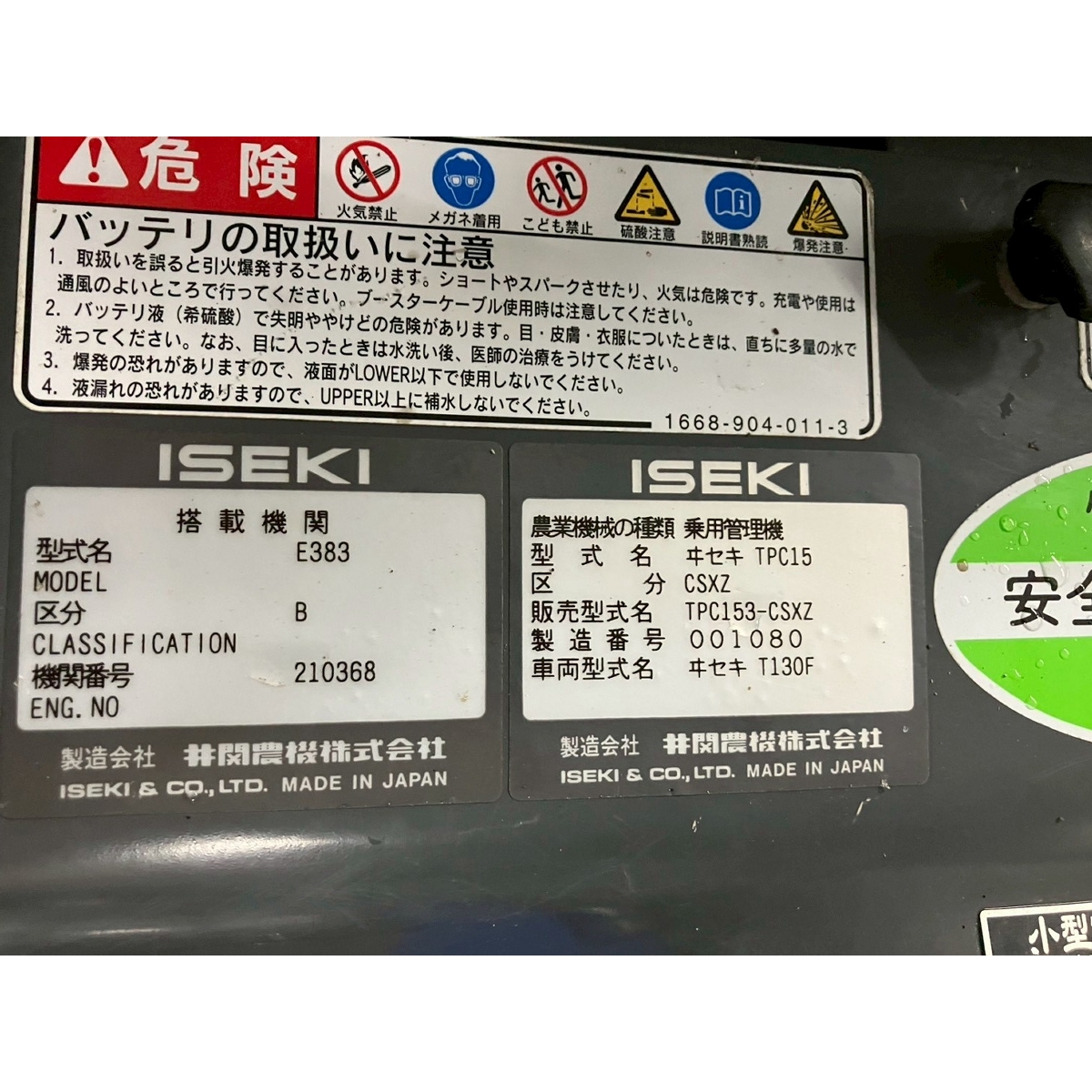 - Model : TPC153, with rotary, with canopy, battery ok, engine ok, crawler model