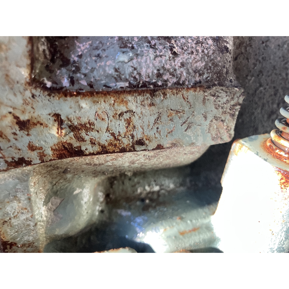 - Fan belt loose and worn; oil seepage on front axle shafts; slight blow-by; brakes stiff but functional