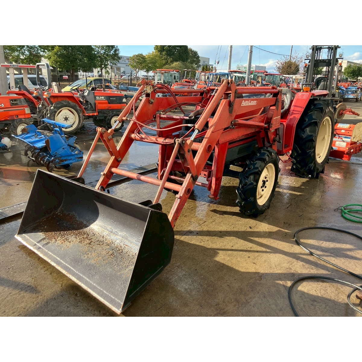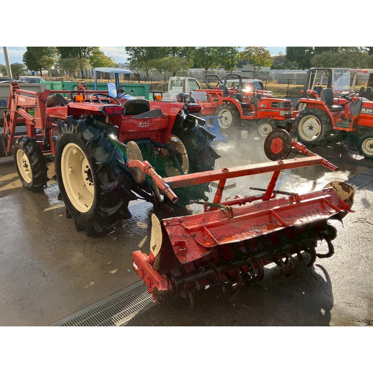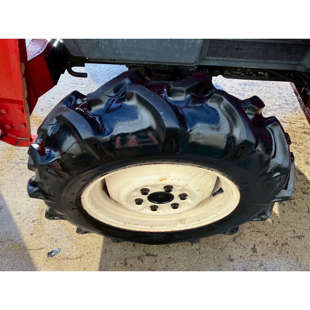 - with rotary, battery ok, with PS, worn all tires, repainting, dented rear part of tractor (tool box part), blowby gas, engine starts cause slightly white smoke but it disappear if engine speed increase, rattling noise