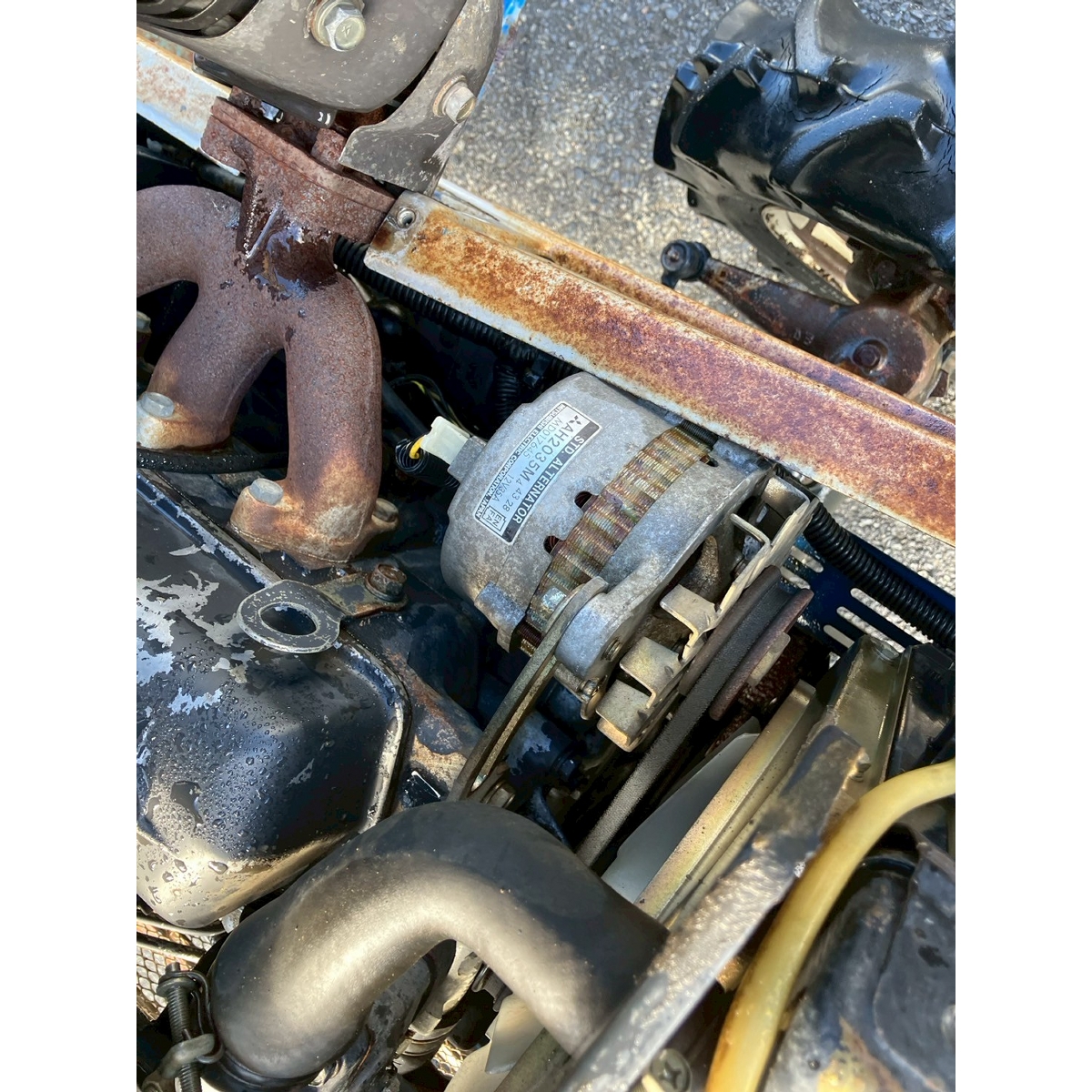 - with rotary, no battery, without PS, engine ok, cracked tires, scratches and rust on exterior, right light goes inside, missing muffler's upper part, fan belt's parts collide with side cover, with canopy