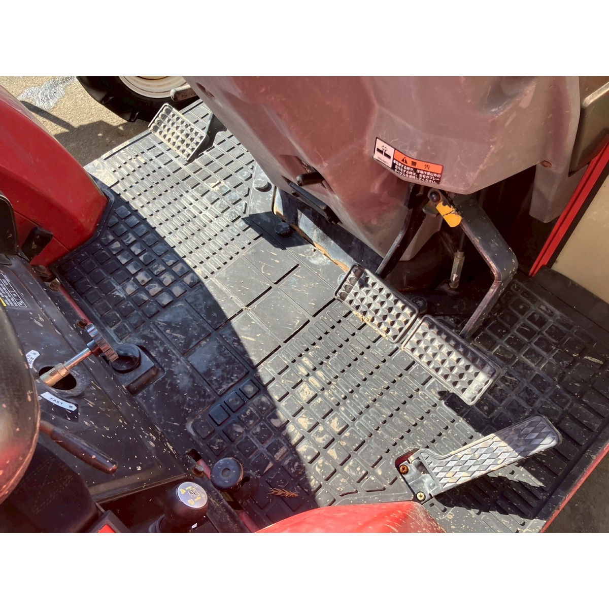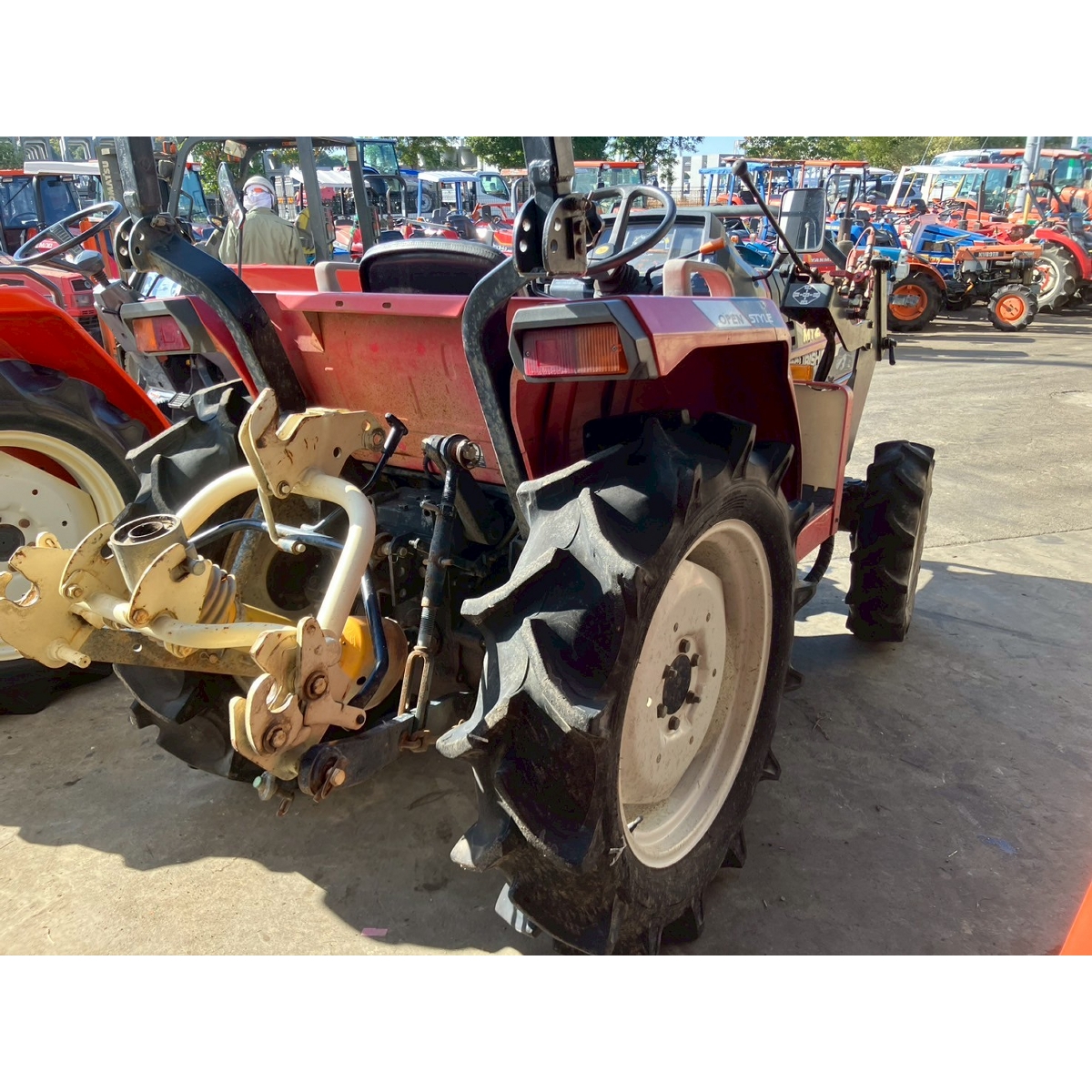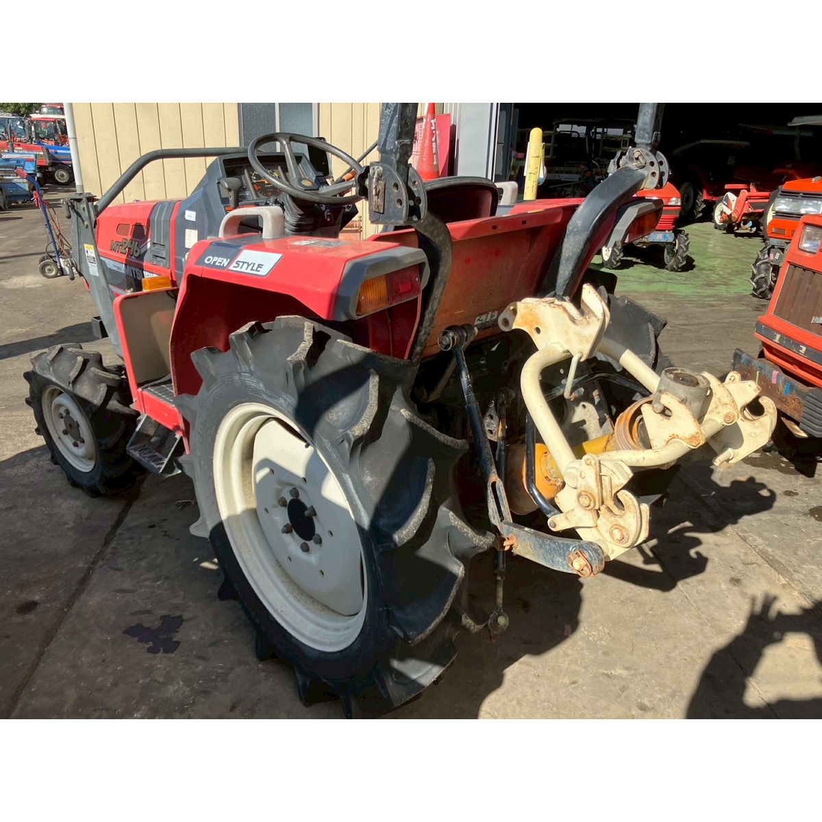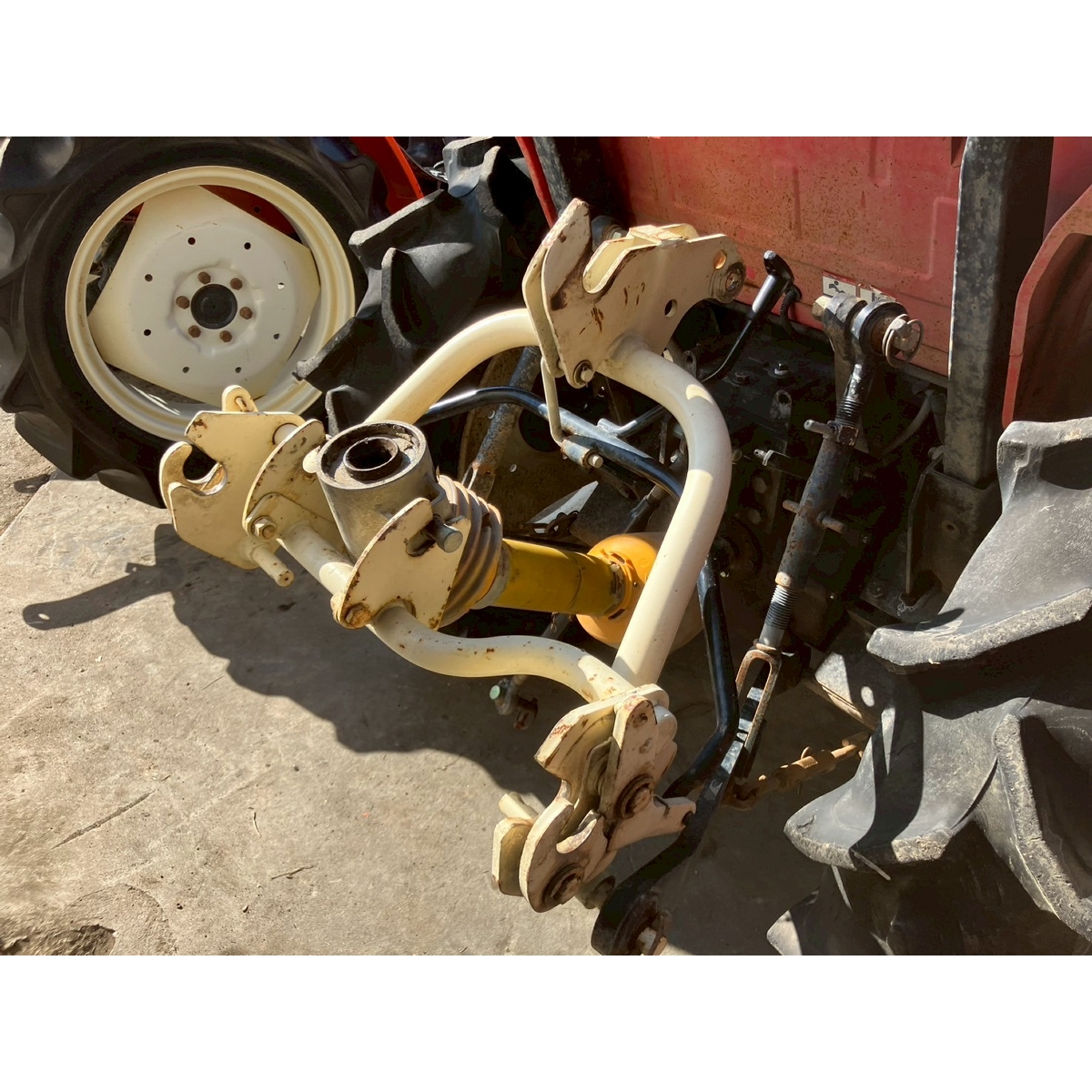 - without rotary, battery ok, with PS, cracked all tires, slightly oil leak from front left tire's shaft, white smoke comes out when engine is running, faded exterior, tractor has rust, torn seat