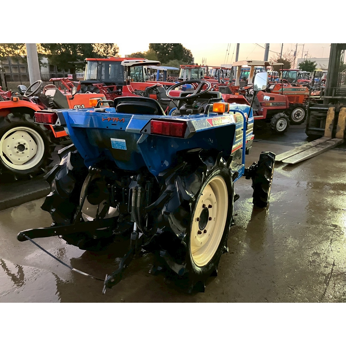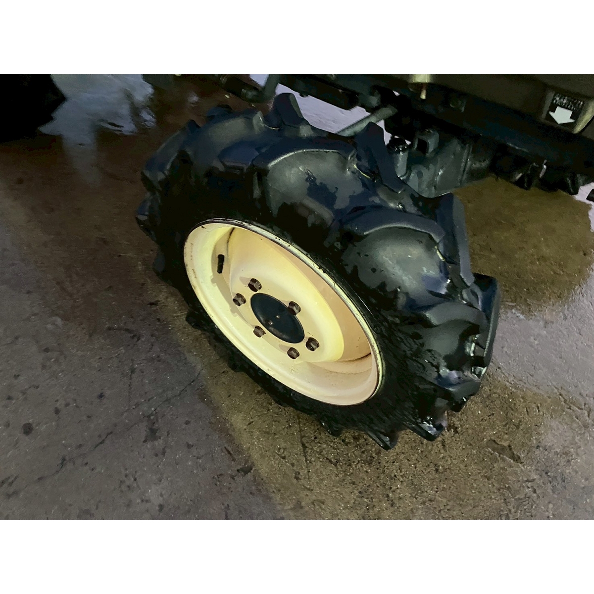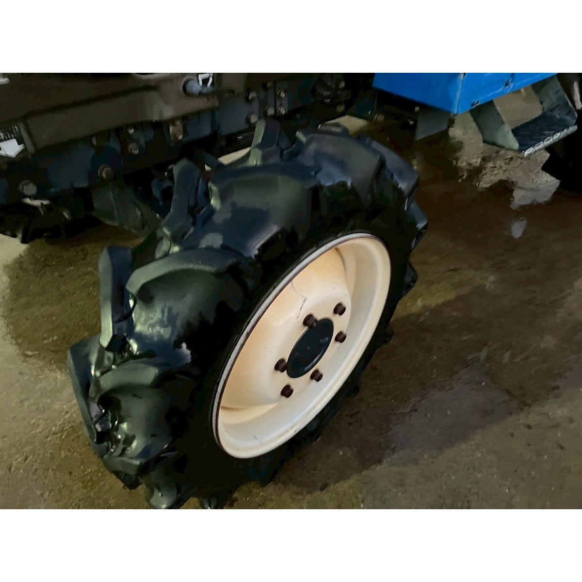 - without rotary, battery ok, with PS, cracked rear tires, oil leak from PTO shaft, slightly oil leak from front right tire, rattling water pump