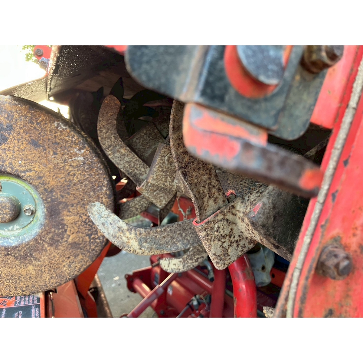 - with rotary, no battery, without PS, cracked front tires, worn rear tires, no problem in operation, faded exterior, tractor has rust, torn seat, missing joint, loose fan belt, working hour could be 1328 hours