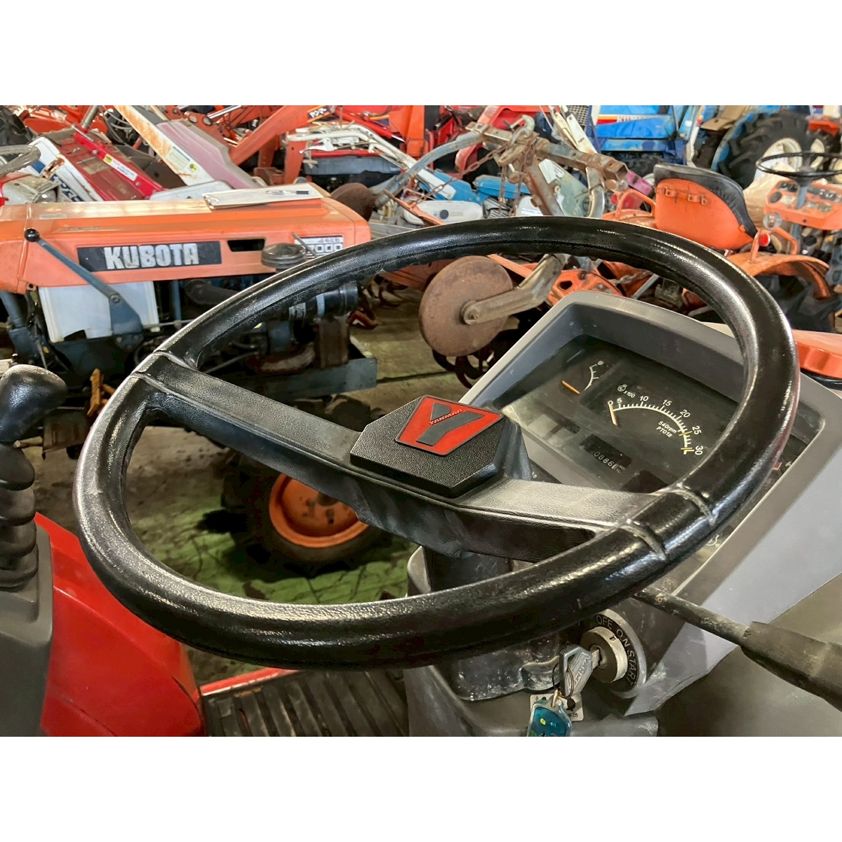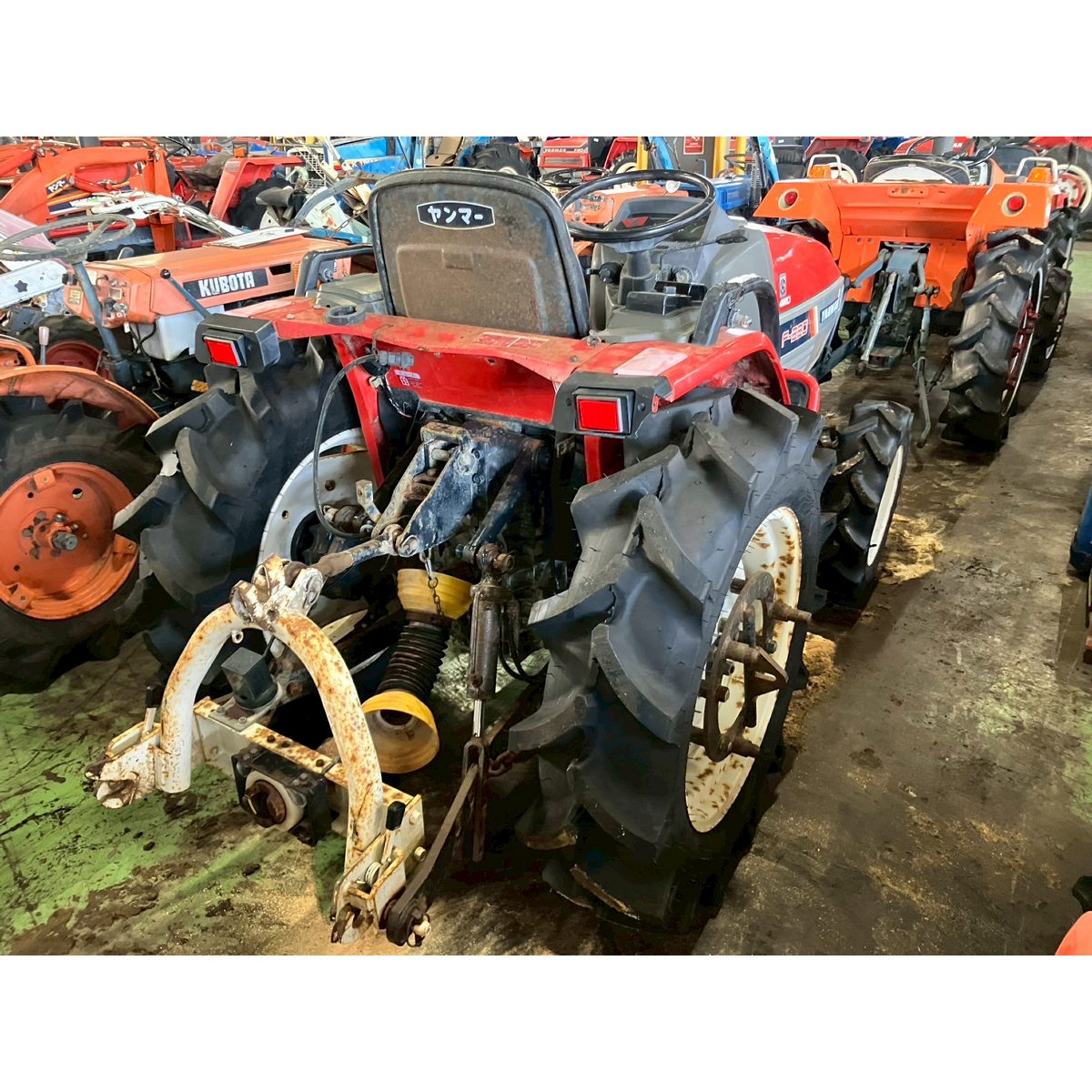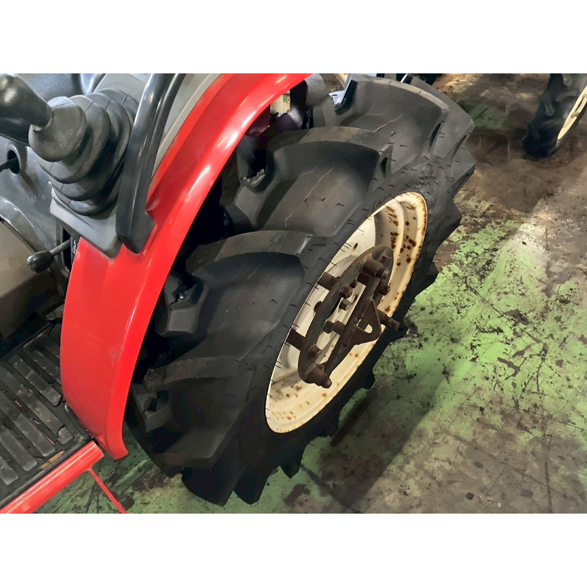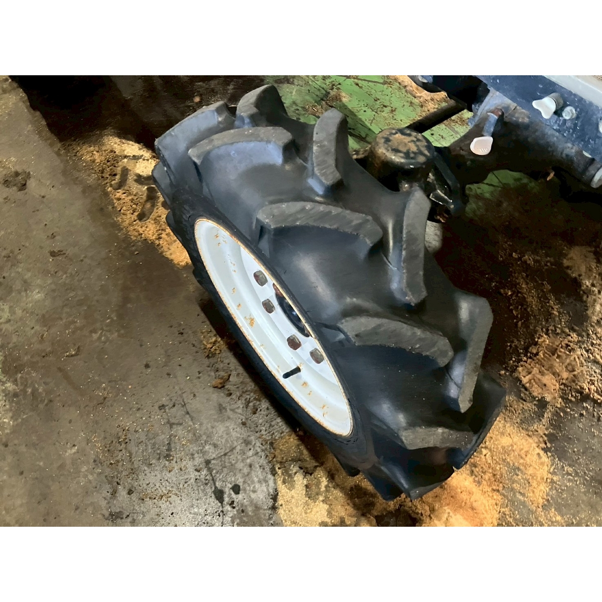 - with rotary, no battery, without PS, cracked front tires, worn all tires, tractor has rust