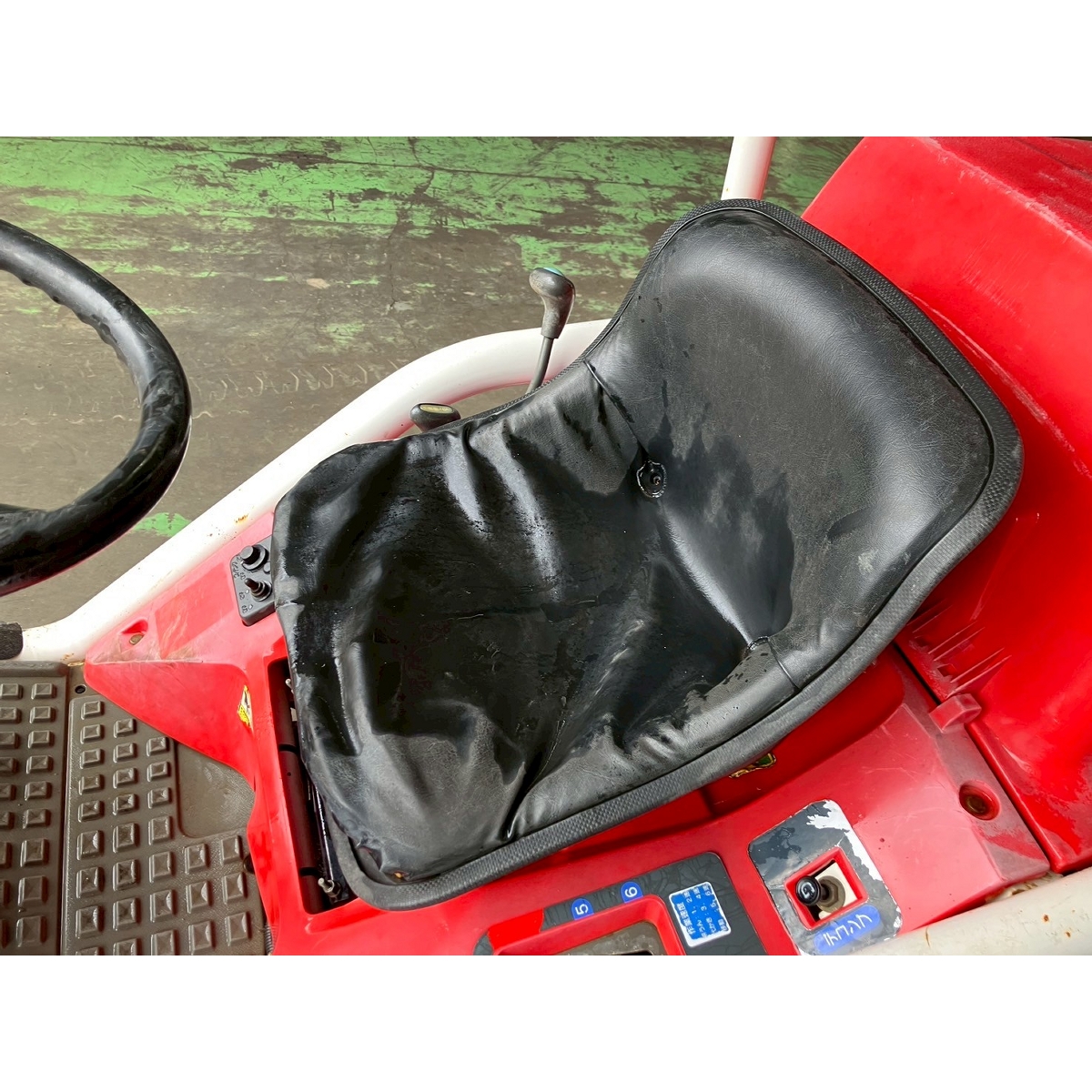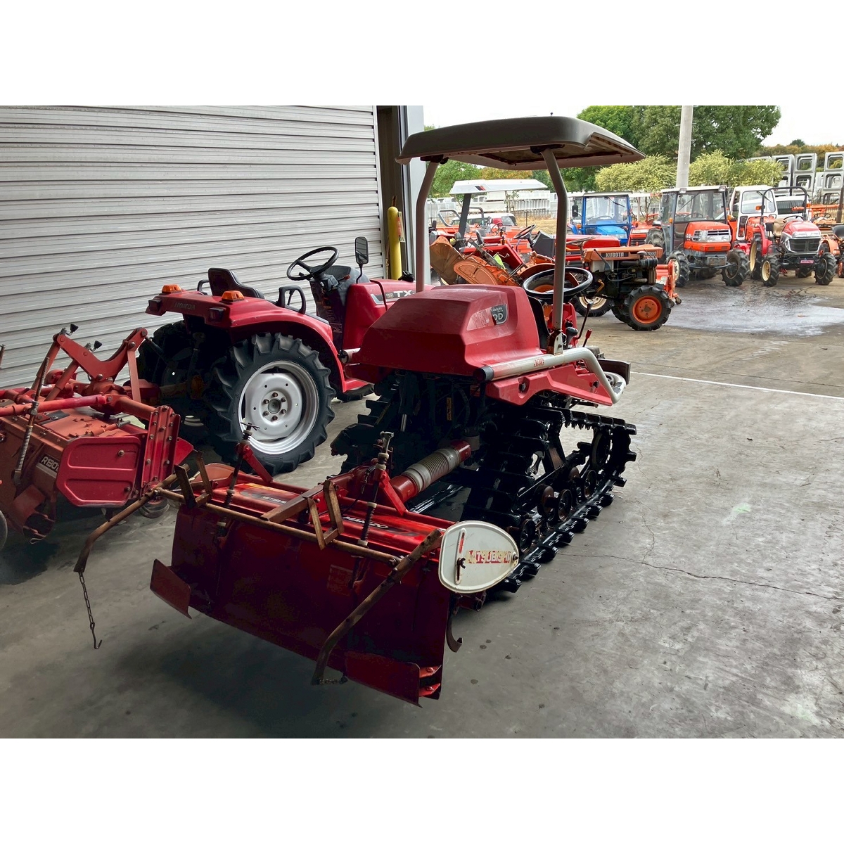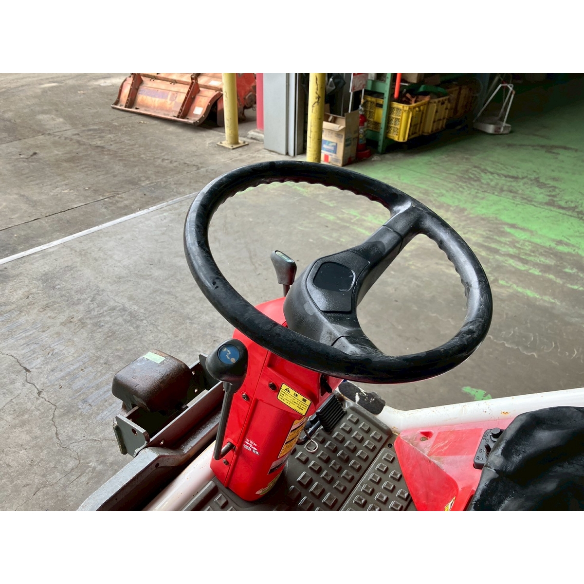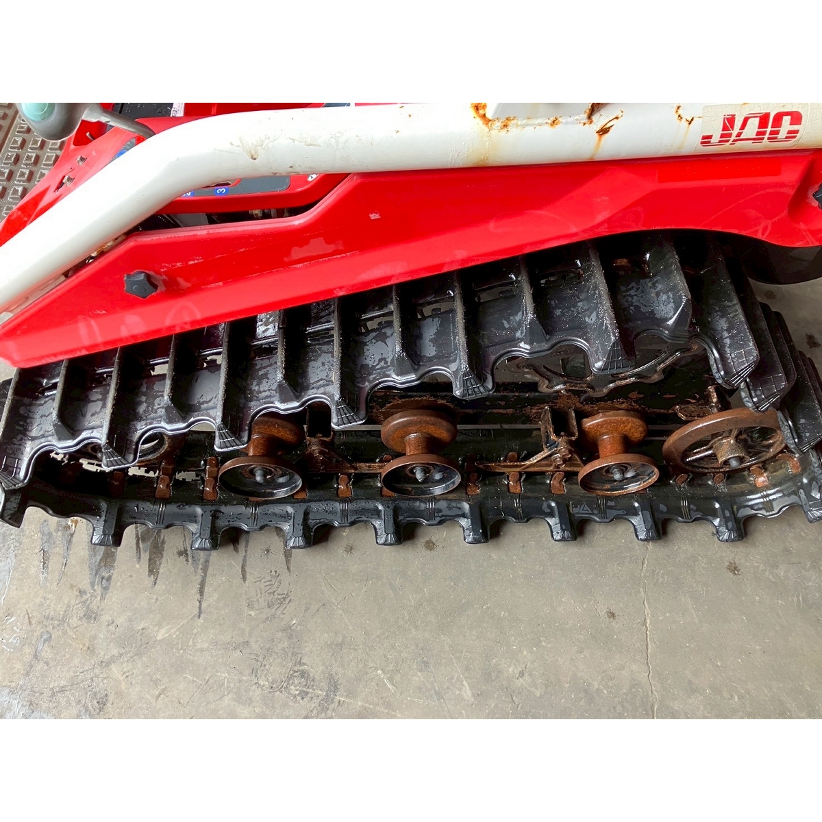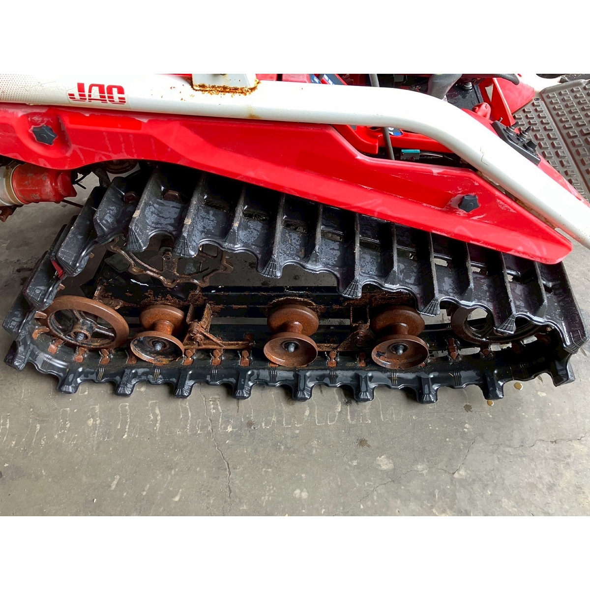 - with rotary, with battery, no power steering, front & rear tires cracked, faded paint, full crawler, one right wheel deformed, rotary lowers naturally, seat torn