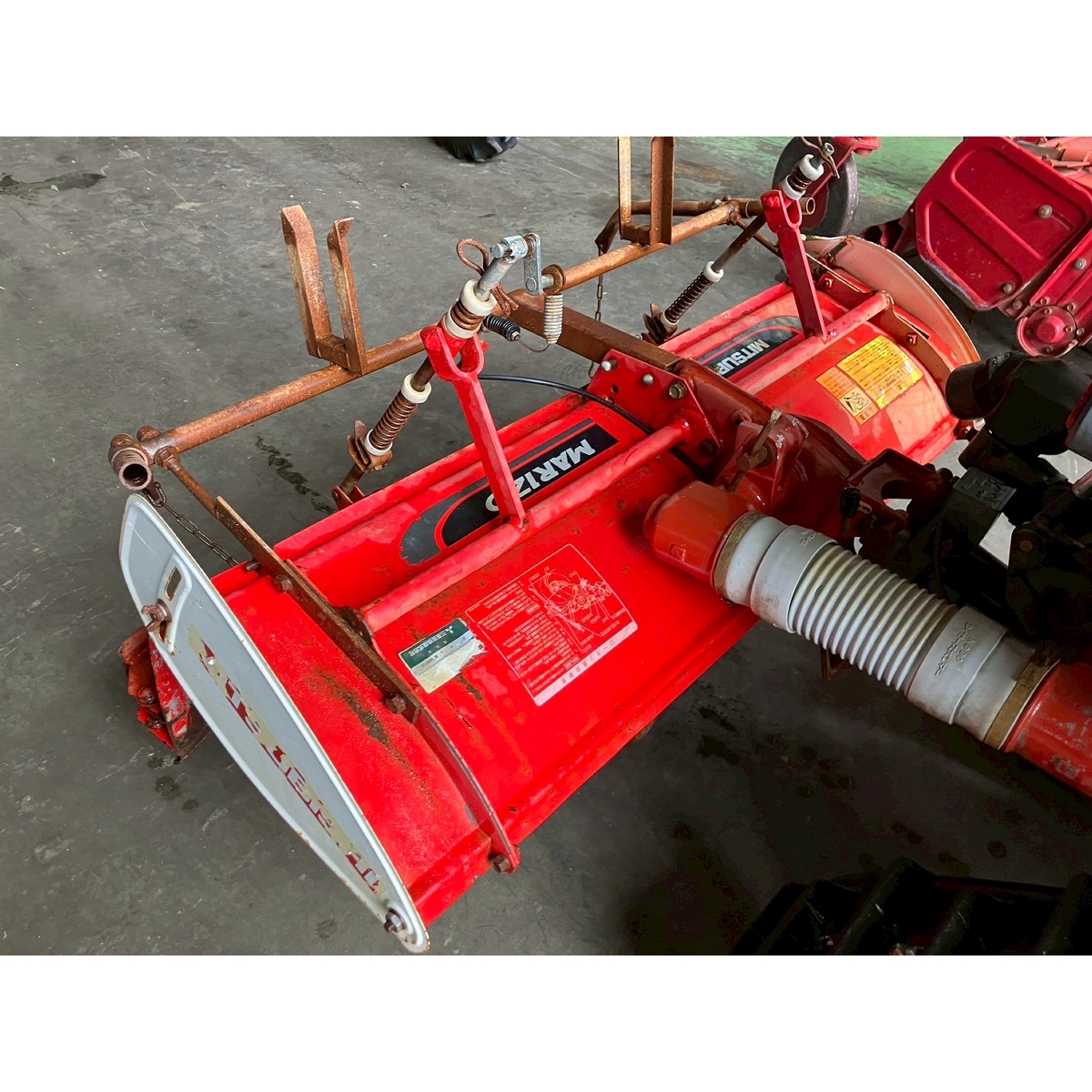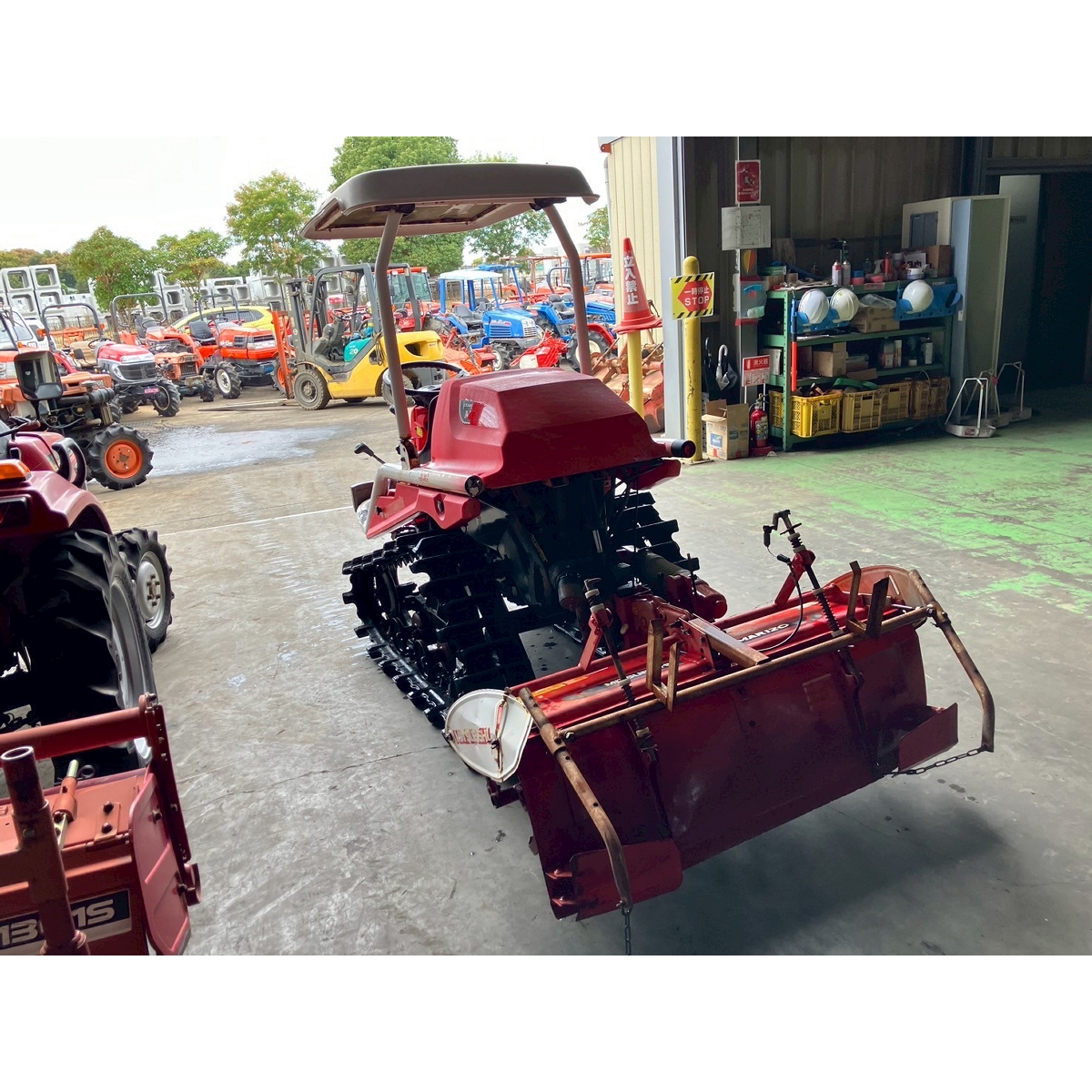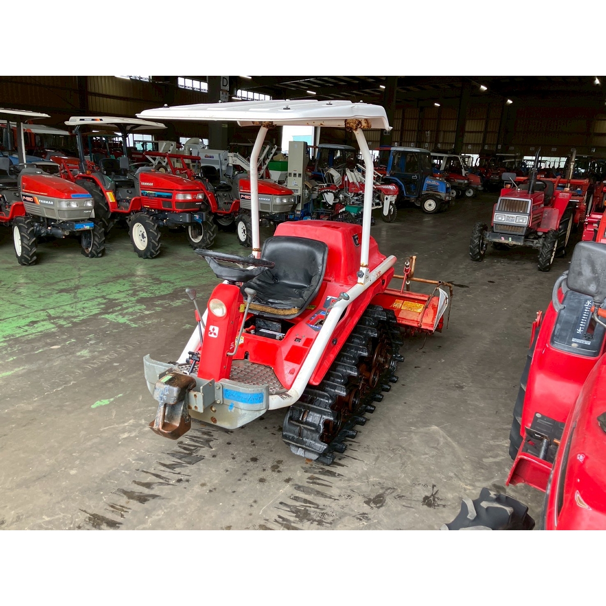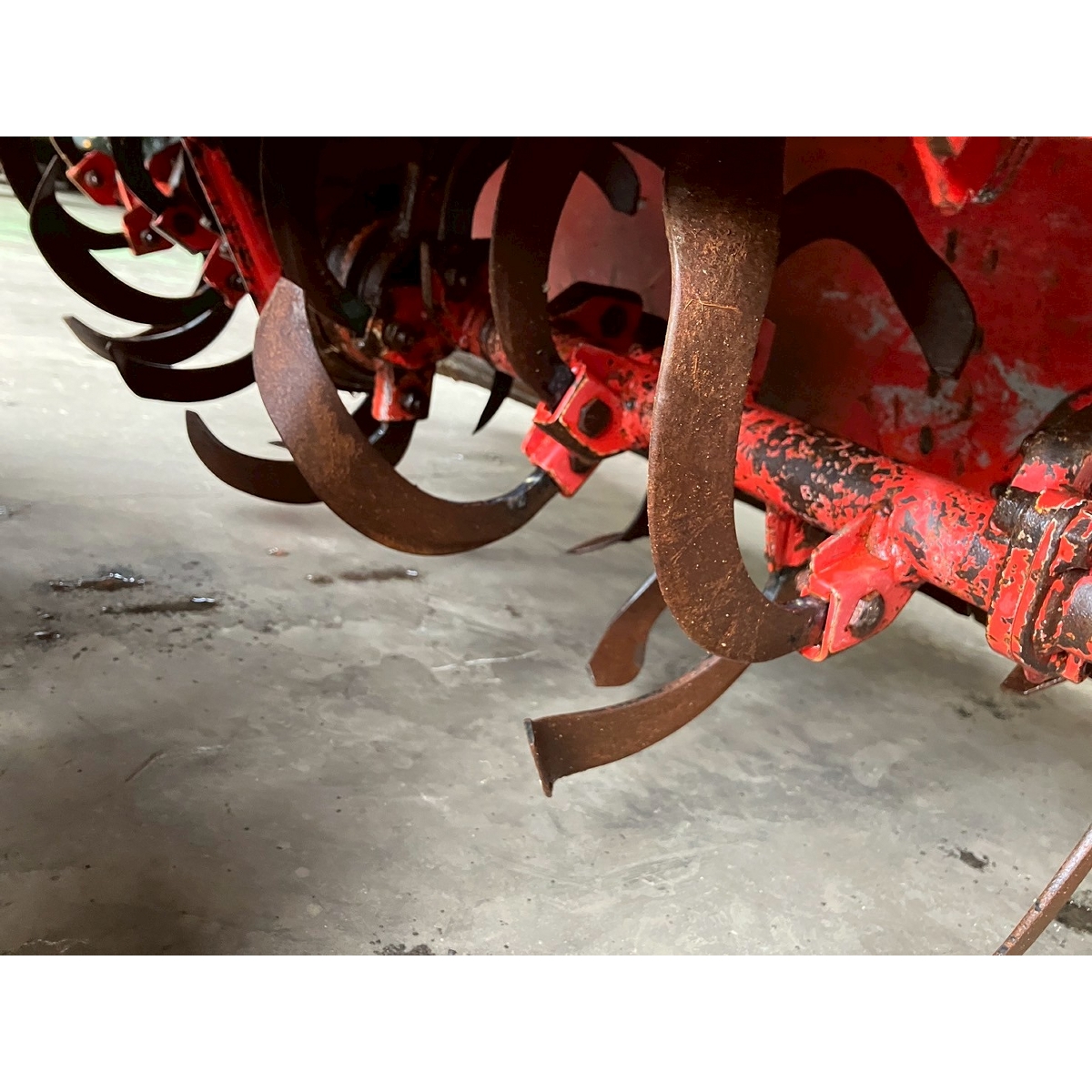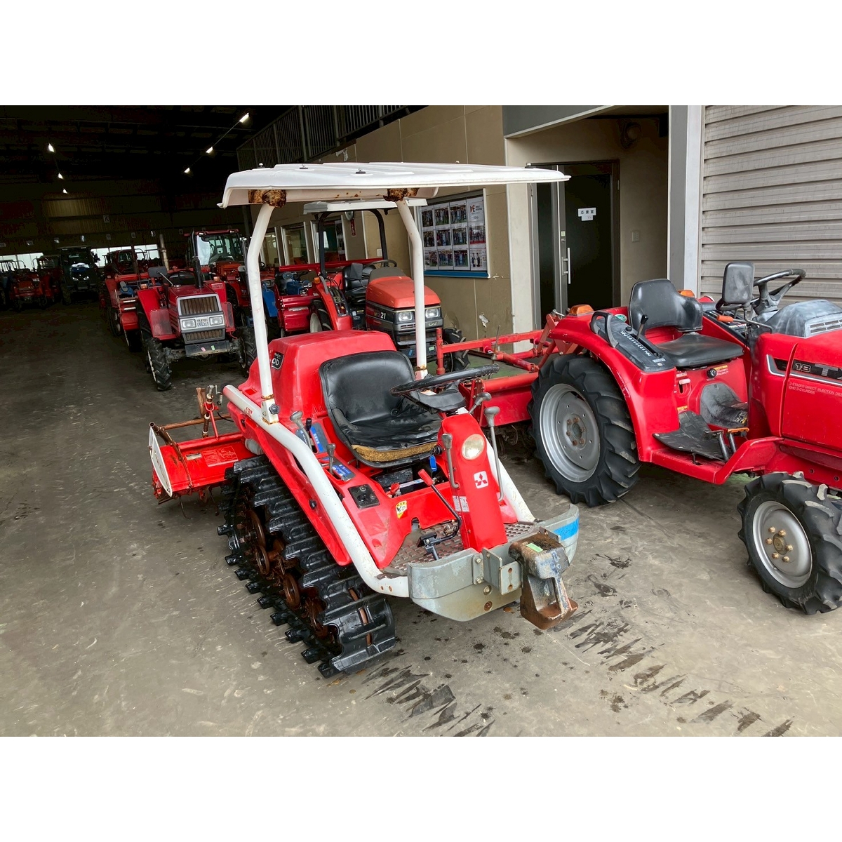 - with rotary, with battery, no power steering, front & rear tires cracked, faded paint, full crawler, one right wheel deformed, rotary lowers naturally, seat torn