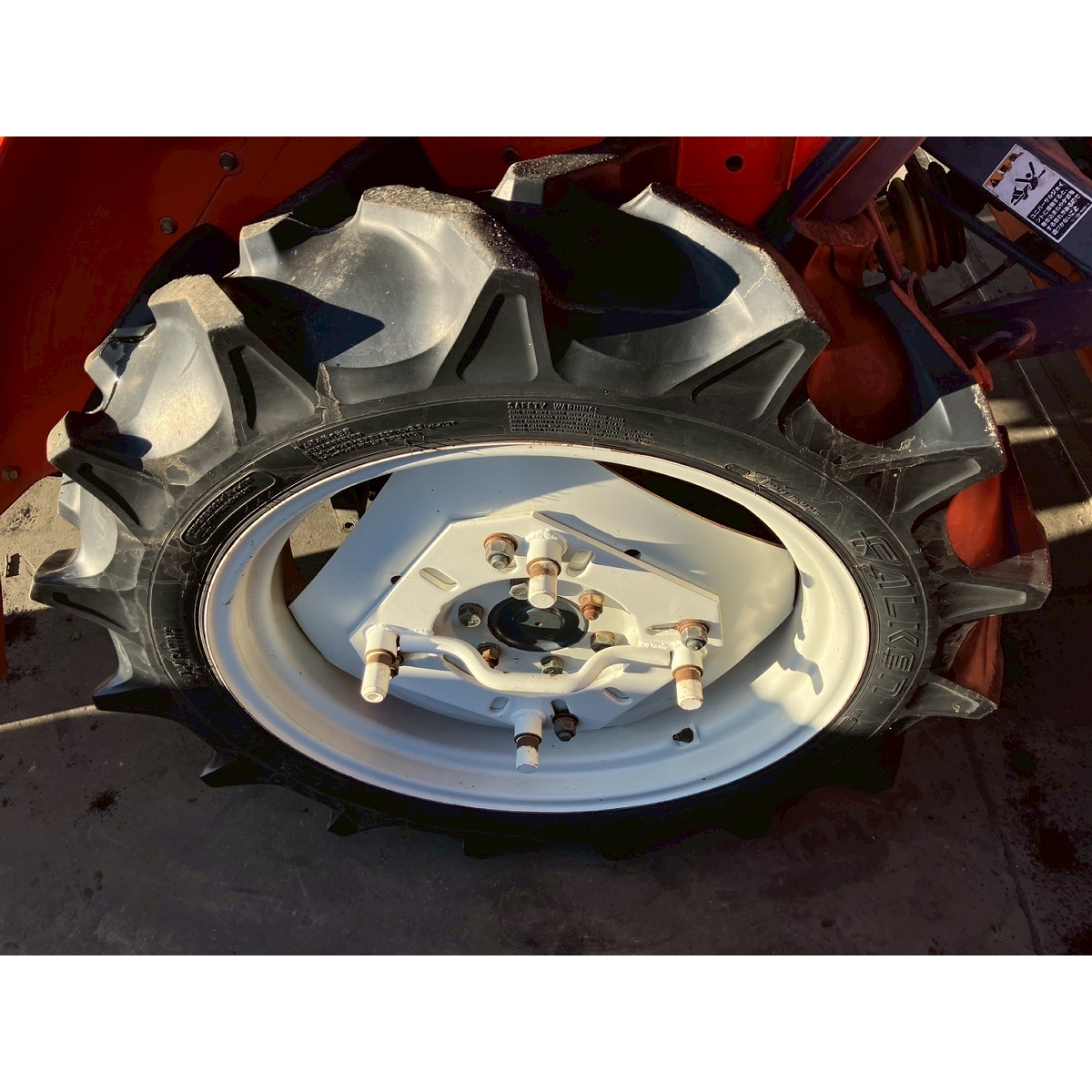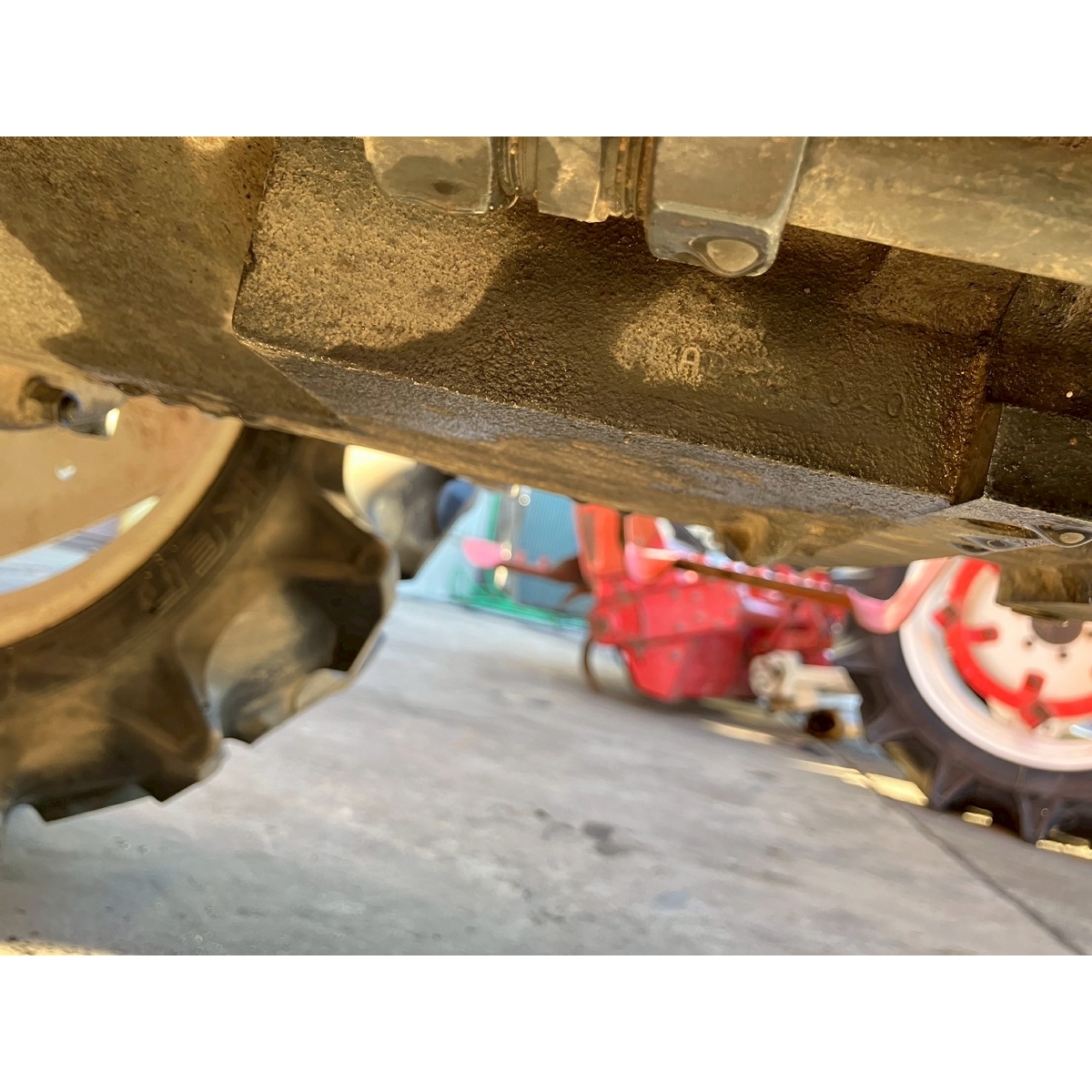 - with rotary, battery ok, with PS, loose fan belt, a lot of blowby gas, white smoke comes out when engine starts, manual - model, slightly oil leak from bottom part of tractor, missing rotary's tale wheels