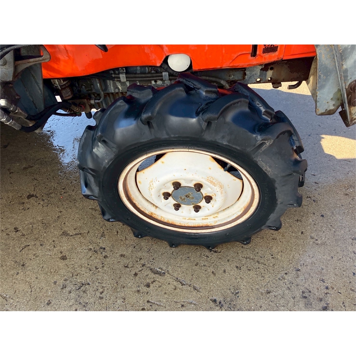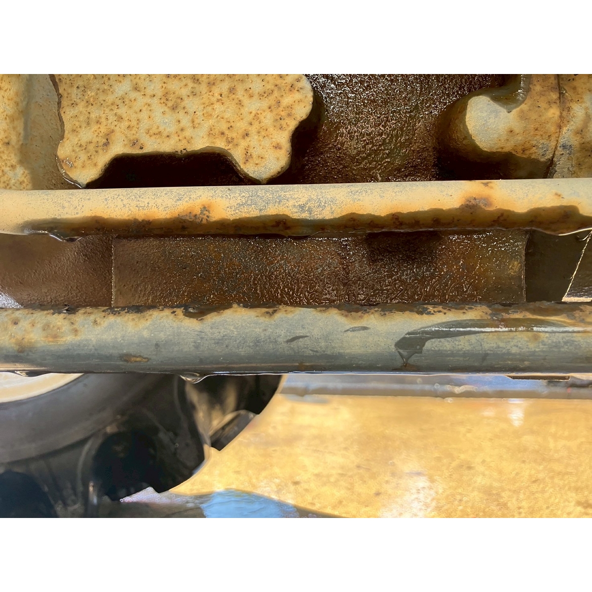 - with rotary, with PS, worned tires, Overall rust, oil leak from loader hydraulics, no front mask, cabin has corrosion but no holes.