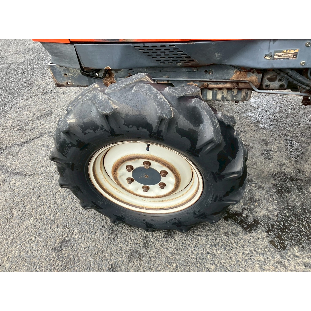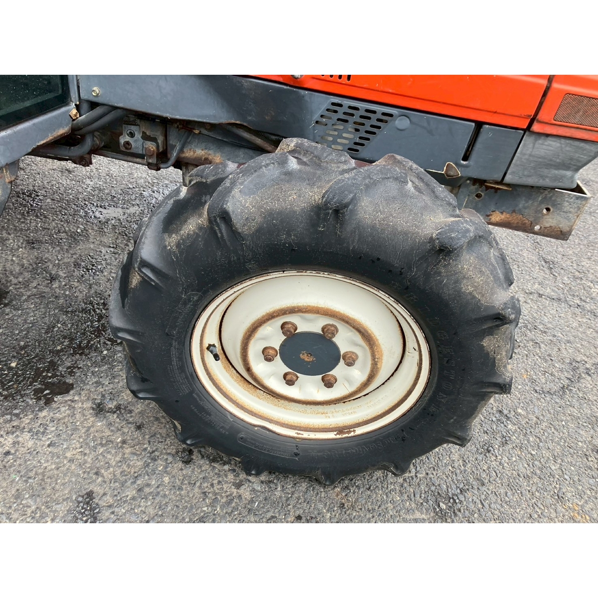 - without rotary, battery ok, with PS, a lot of white smoke and blowby gas, engine does not work (noise from engine), cracked and worn tires, tractor has rust, with cabin