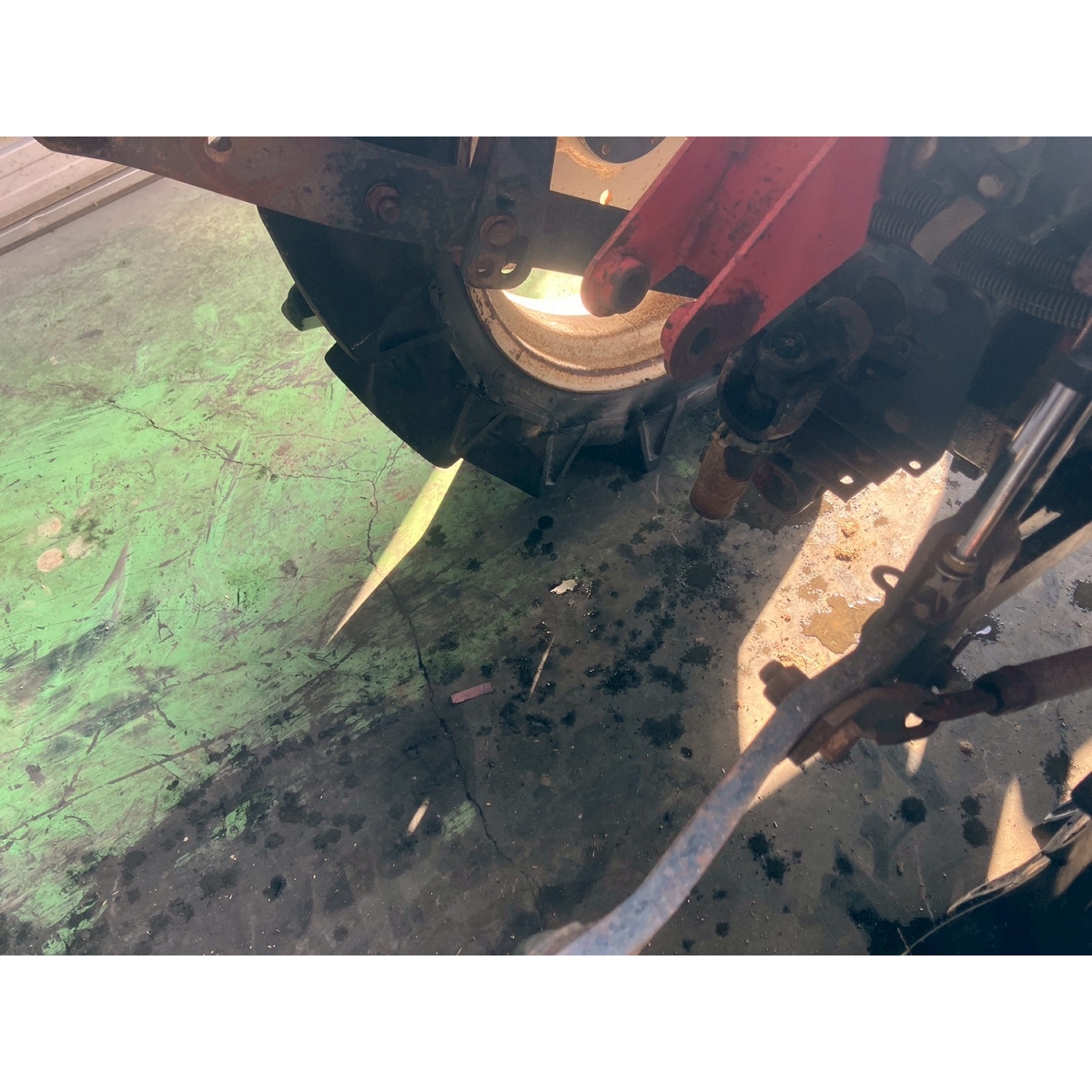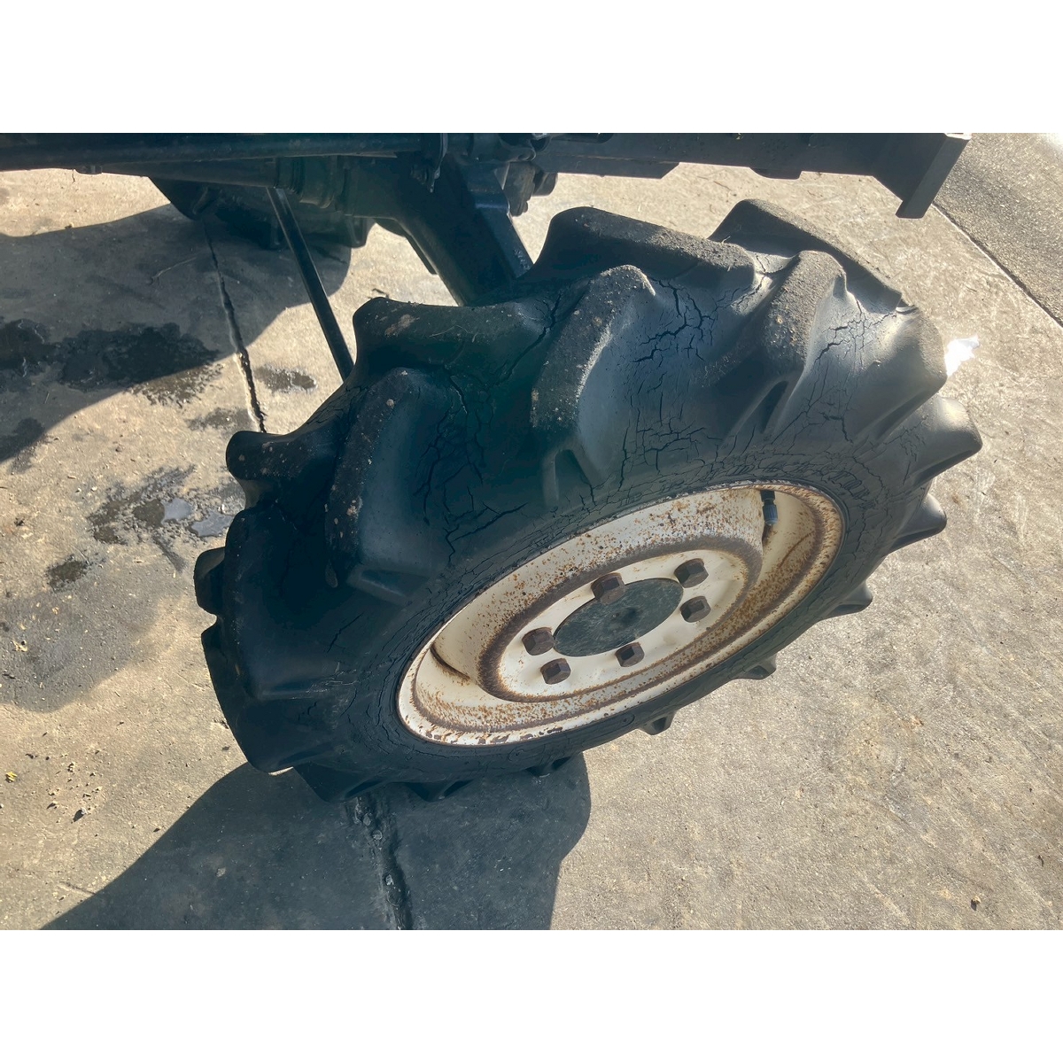 - with rotary, no PS, cracked tires, o tail wheel, rotary blades missing, upper bonnet cover missing, white smoke on start-up and at low RPM, oil seepage from both front wheel axles, oil seepage from both rear wheel axles, one side cover missing.
