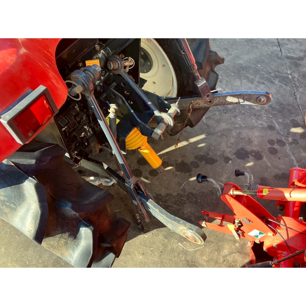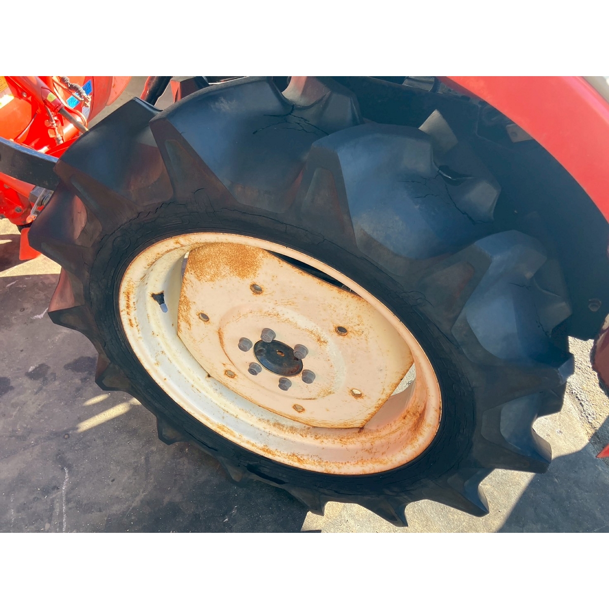 - with rotary, without PS, cracked and worned tires, Right lift rod slightly bent, cannot be attached to lower link, operating hours estimated at 1,100 based on corrosion condition and tire cracks