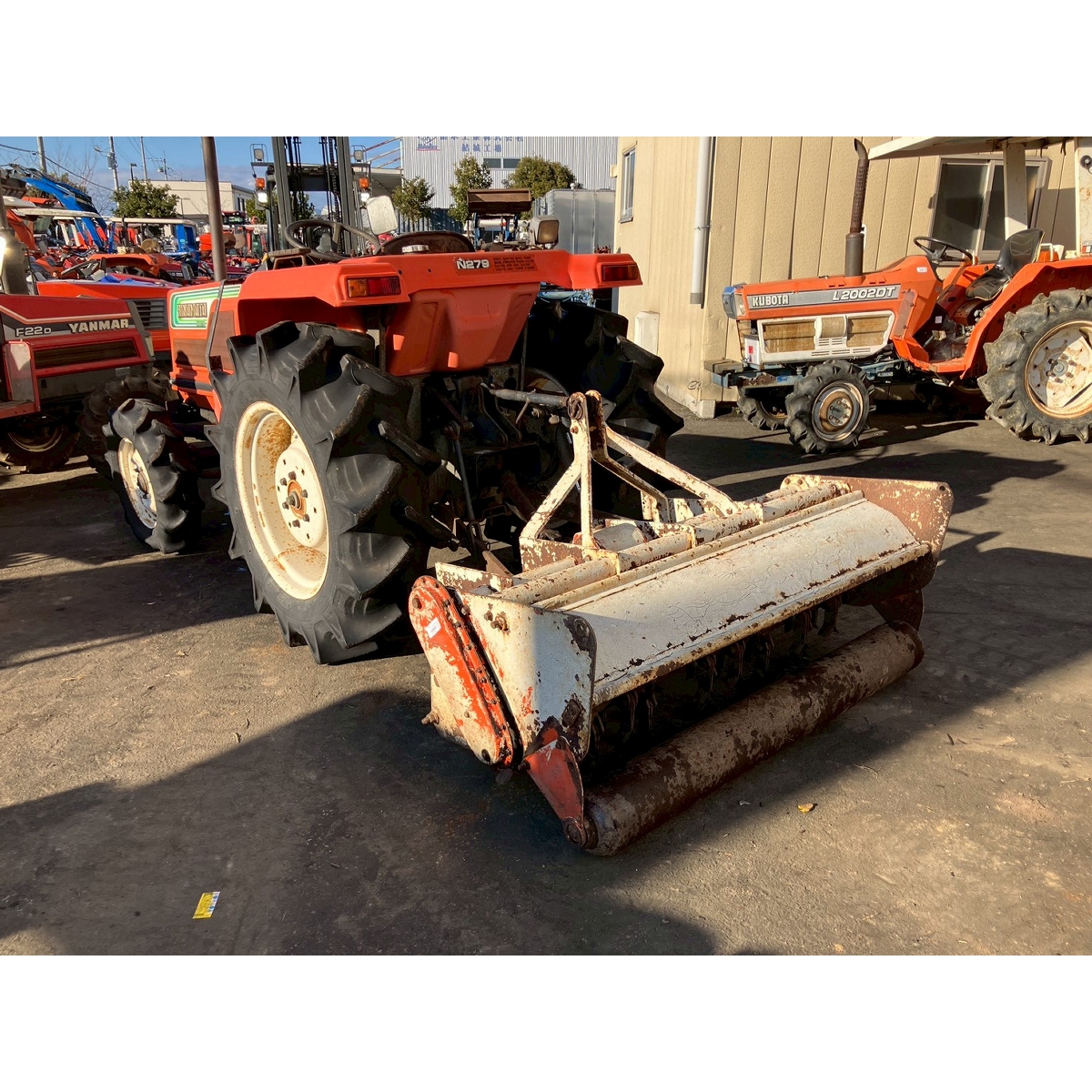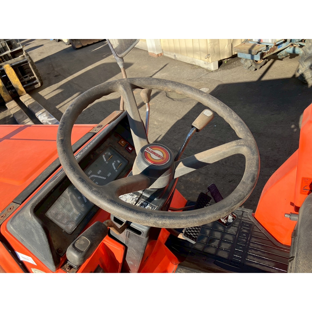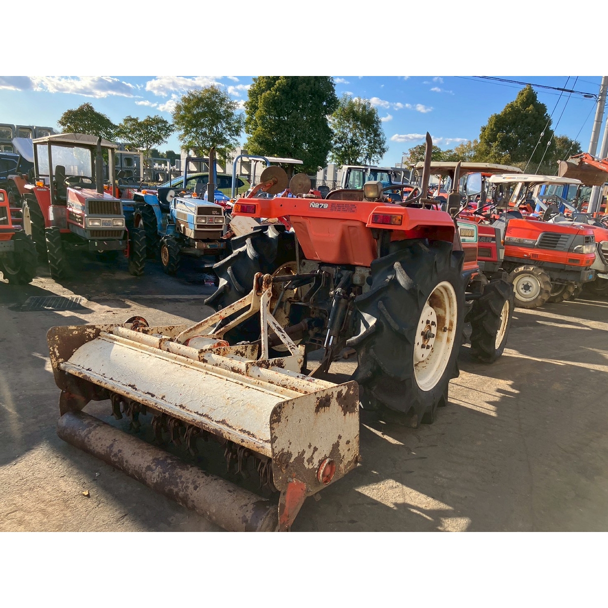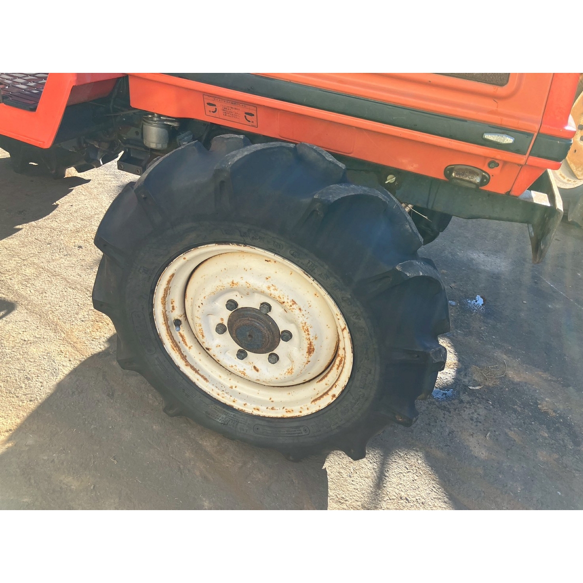 - with rotary, battery ok, without PS, cracked rear tires, rotary does not shift up/down, torn seat, steering wheel does not work smoothly, engine speed up by idling lever but it would not speed down (engine speed would be adjusted by pedal), with flail mower