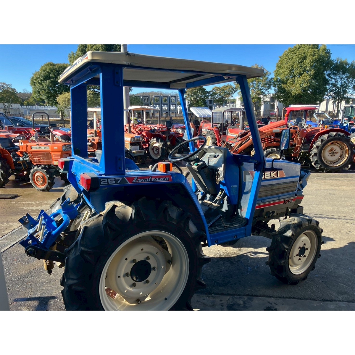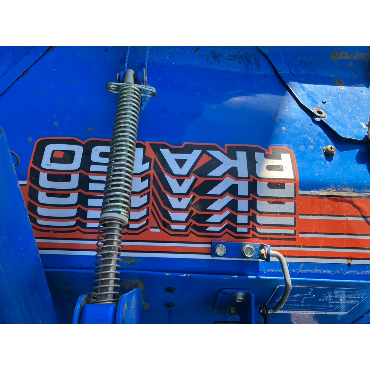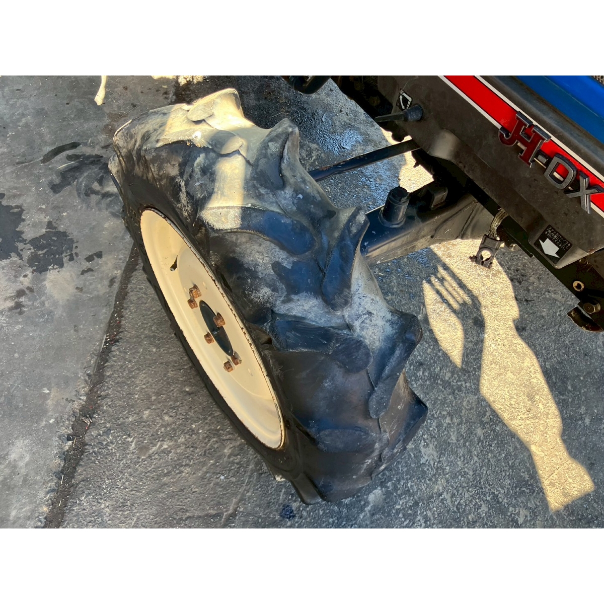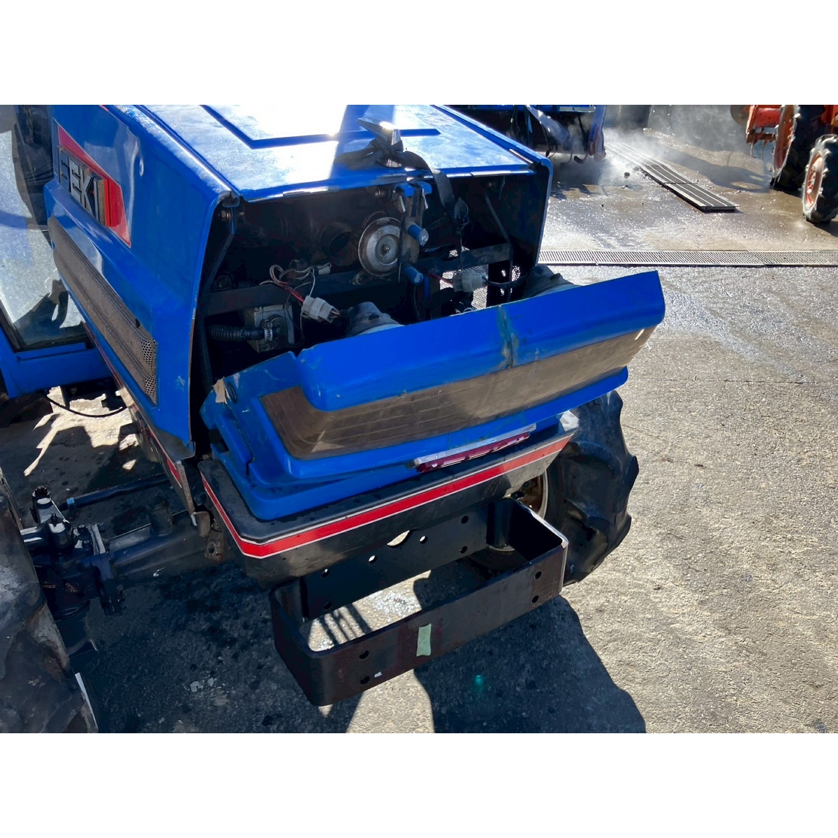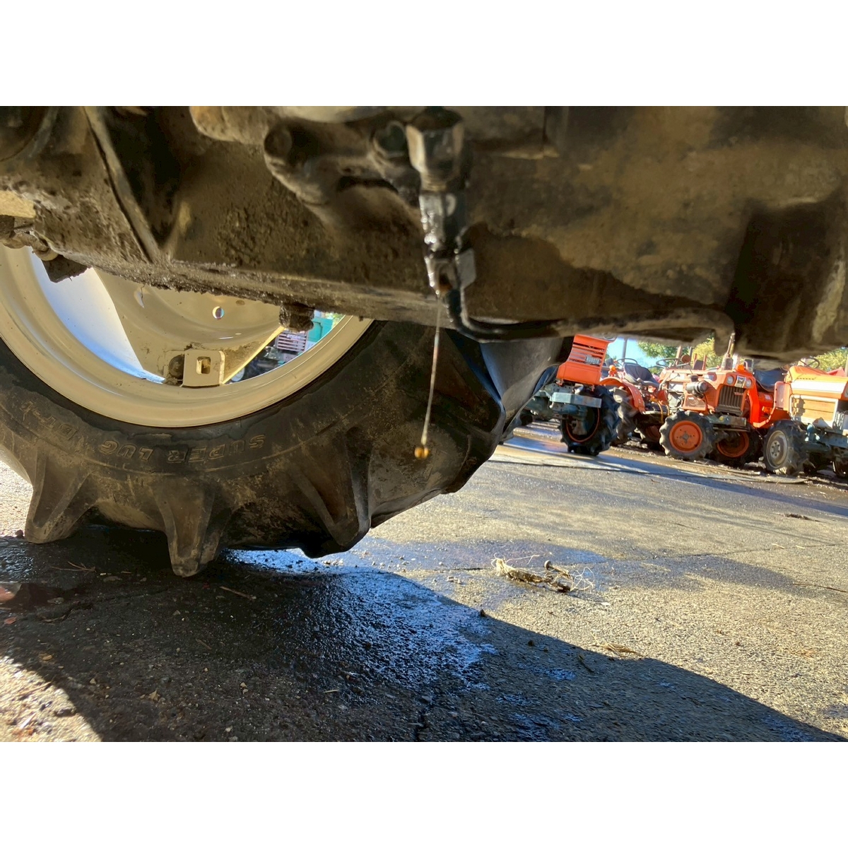 - with rotary, battery ok, with PS, cracked and worn all tires, cracked front mask, oil leak from deformed oil pipe at bottom part of tractor, with canopy