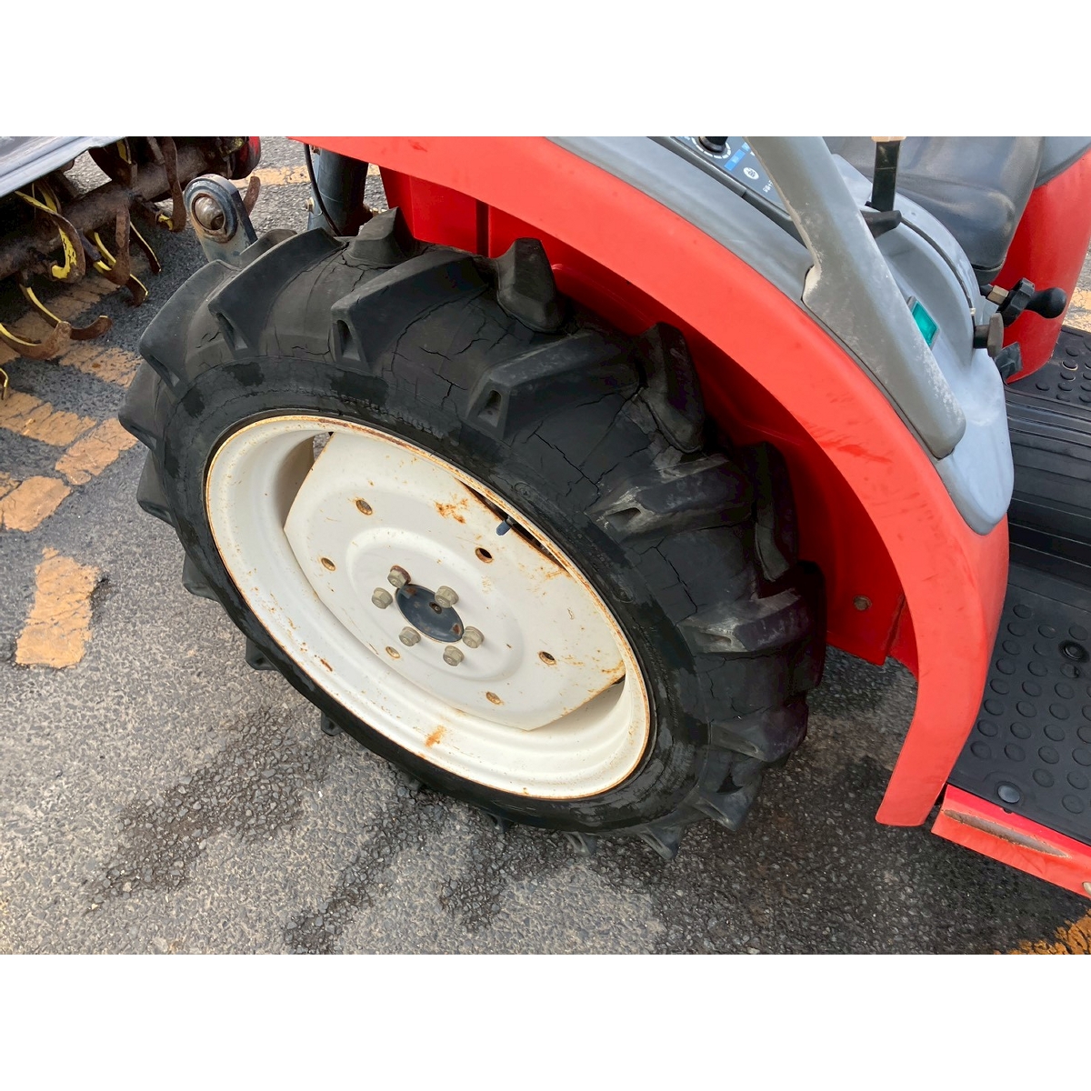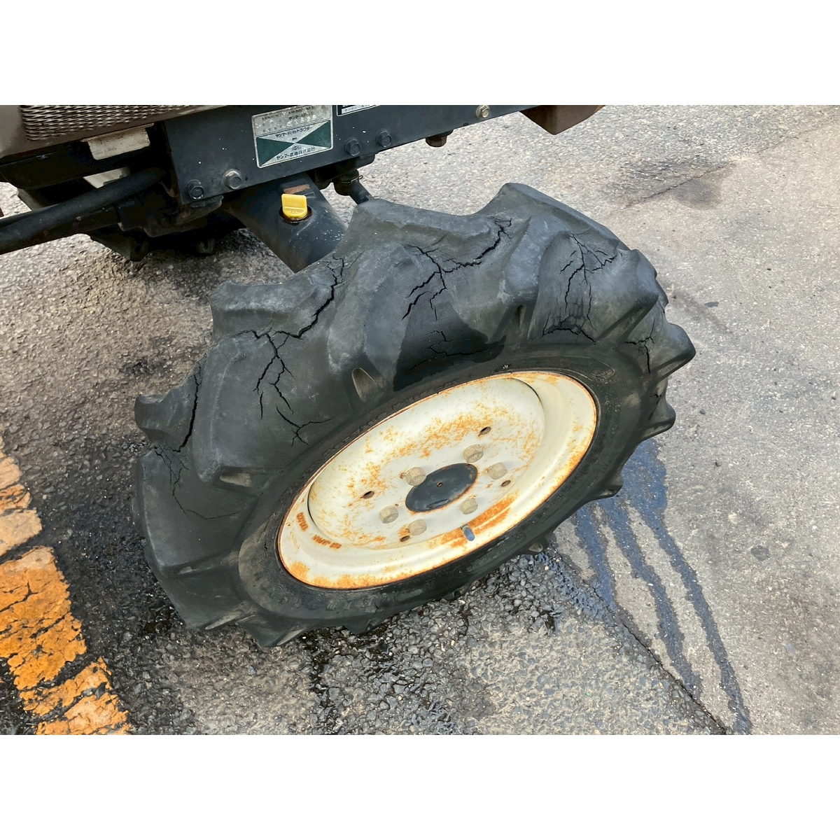 - with rotary, no battery, without PS, cracked and worn tires, oil leak from front knuckle, this tractor has SHIBAURA plate but it is based on YANMAR (Model : AF16)
