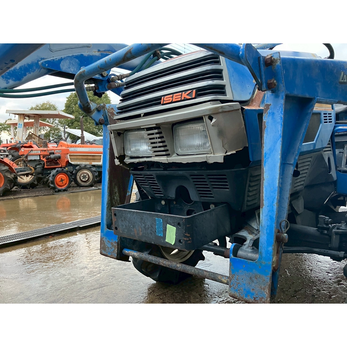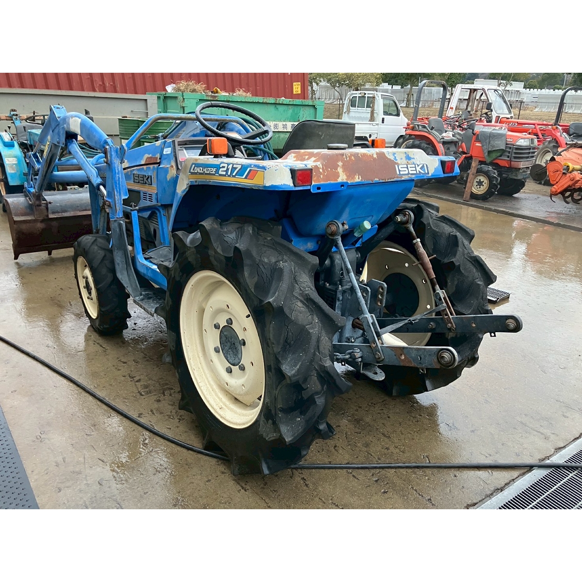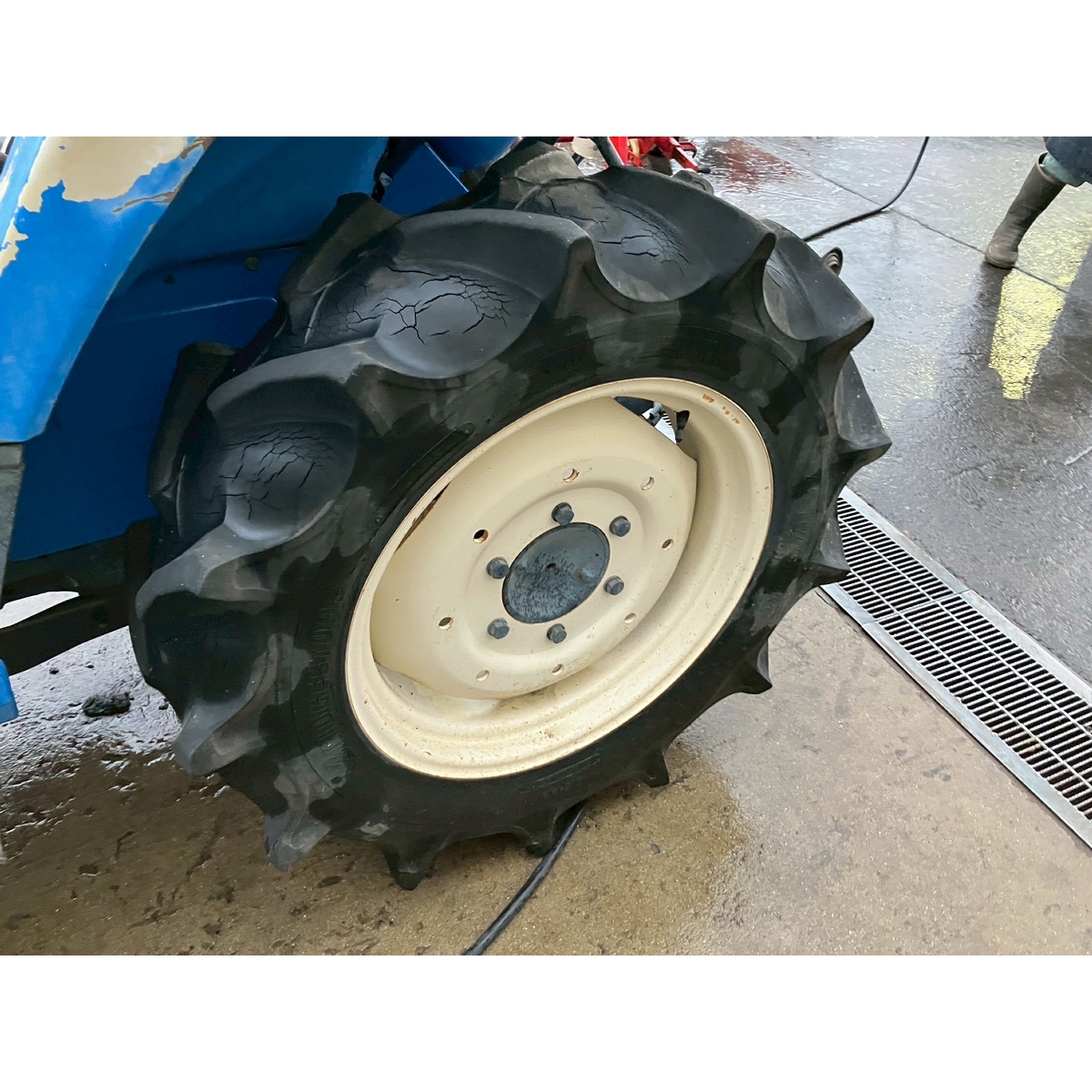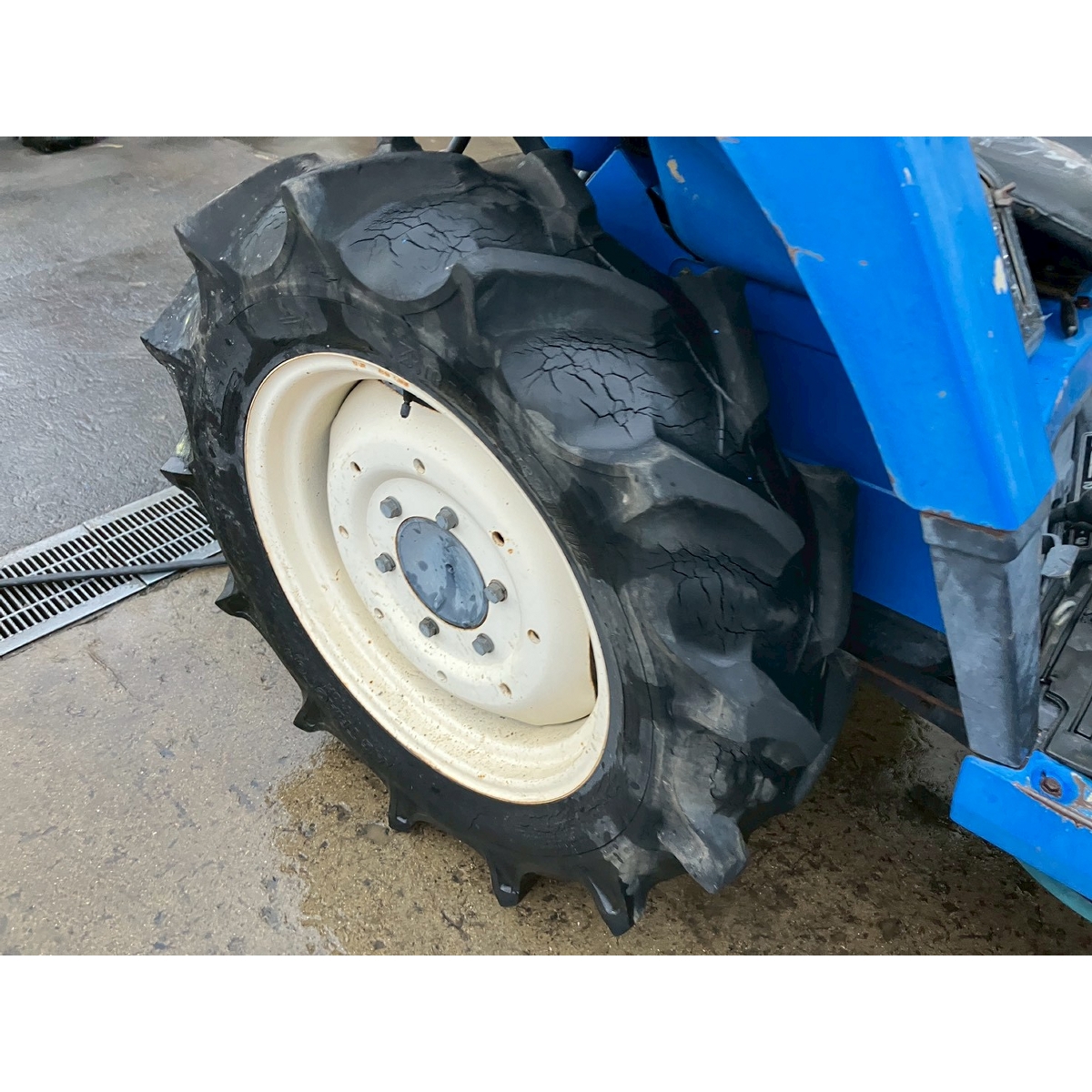 - without rotary, no battery, with PS, cracked and worn all tires, tractor is rattling in high speed gear, white smoke, faded exterior, tractor has rust, torn seat, cracked front mask, loose fan belt, idling is unstable but it would be normal if engine speed increase