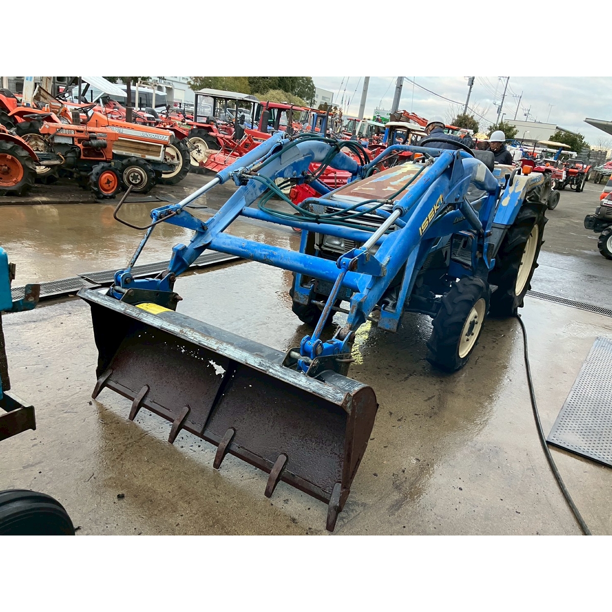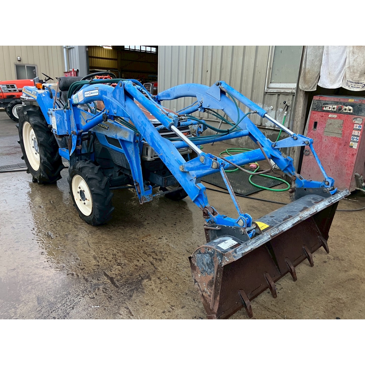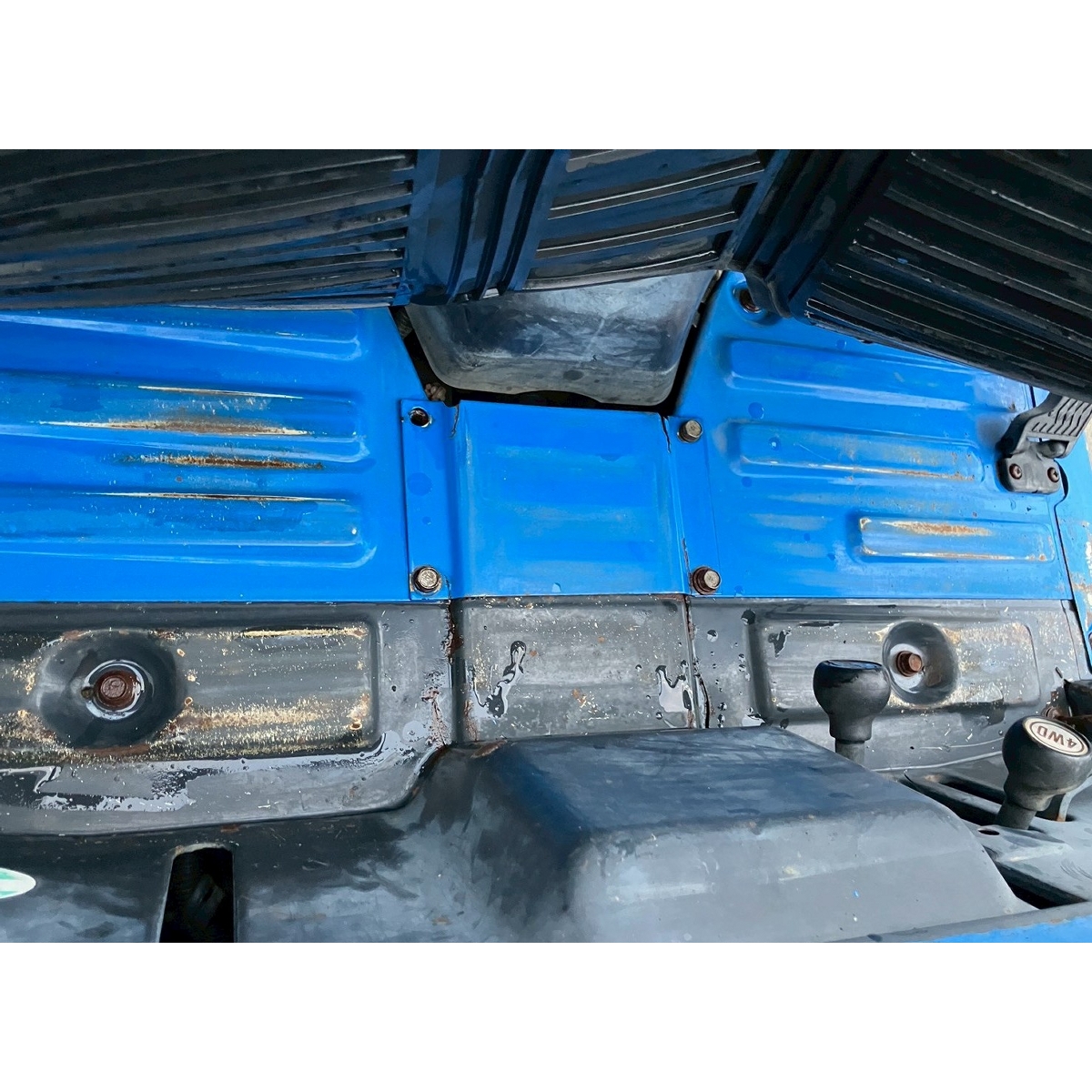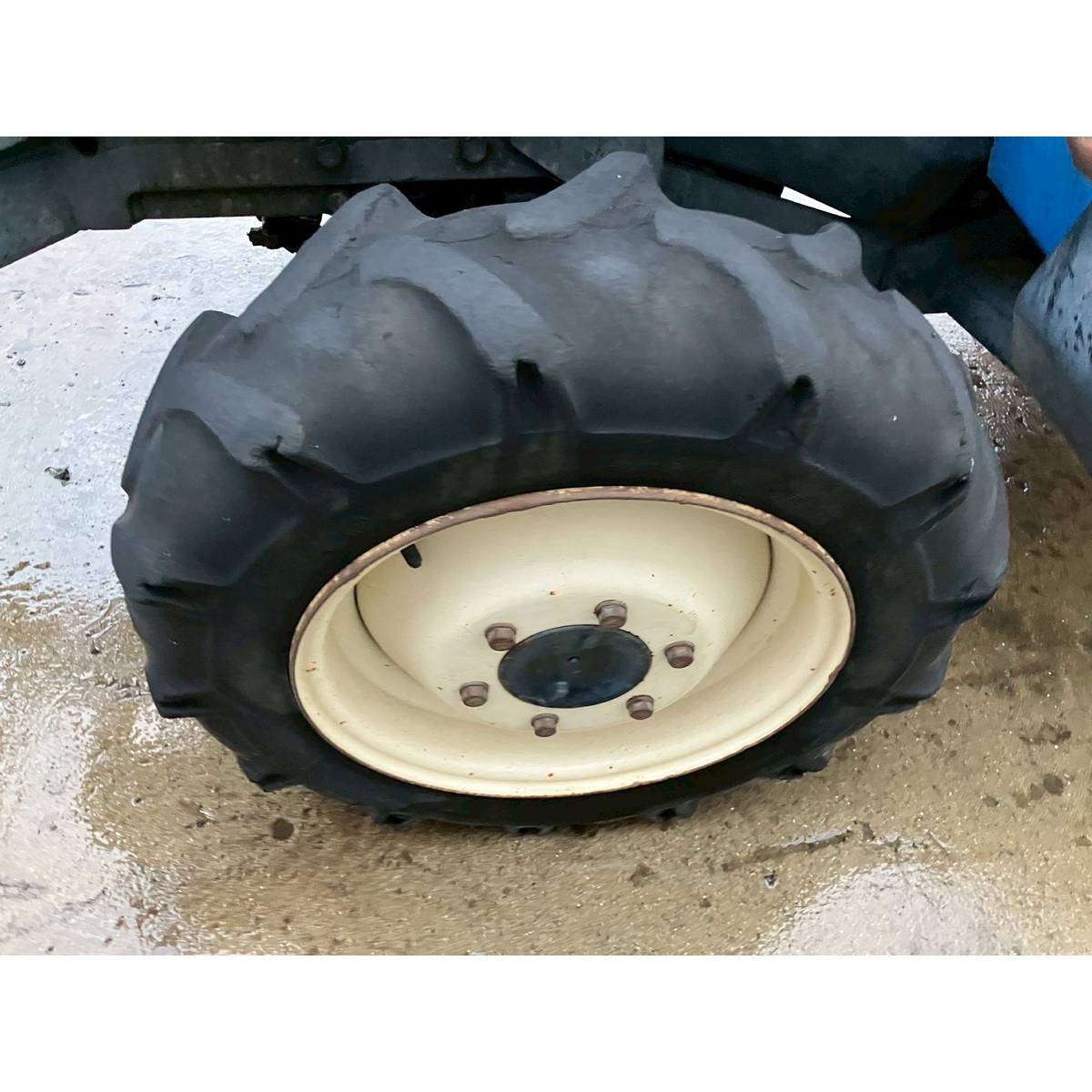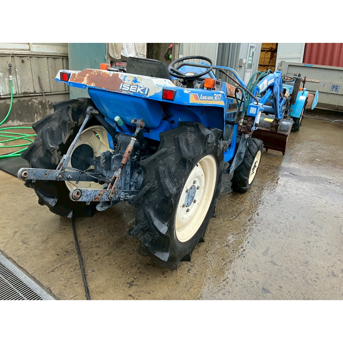- without rotary, no battery, with PS, cracked and worn all tires, tractor is rattling in high speed gear, white smoke, faded exterior, tractor has rust, torn seat, cracked front mask, loose fan belt, idling is unstable but it would be normal if engine speed increase
