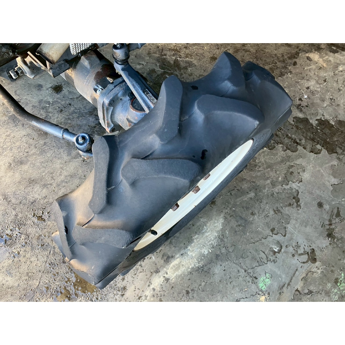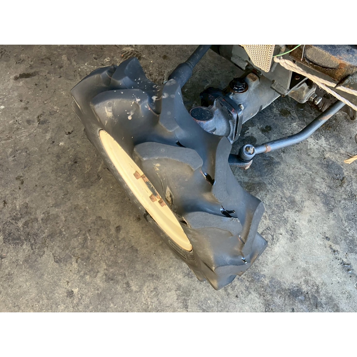 - with rotary, battery ok, without PS, worn all tires, no problem in operation, missing front mask, cracked body around main transmission, radiator has run out of coolant