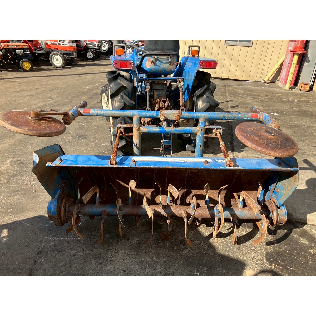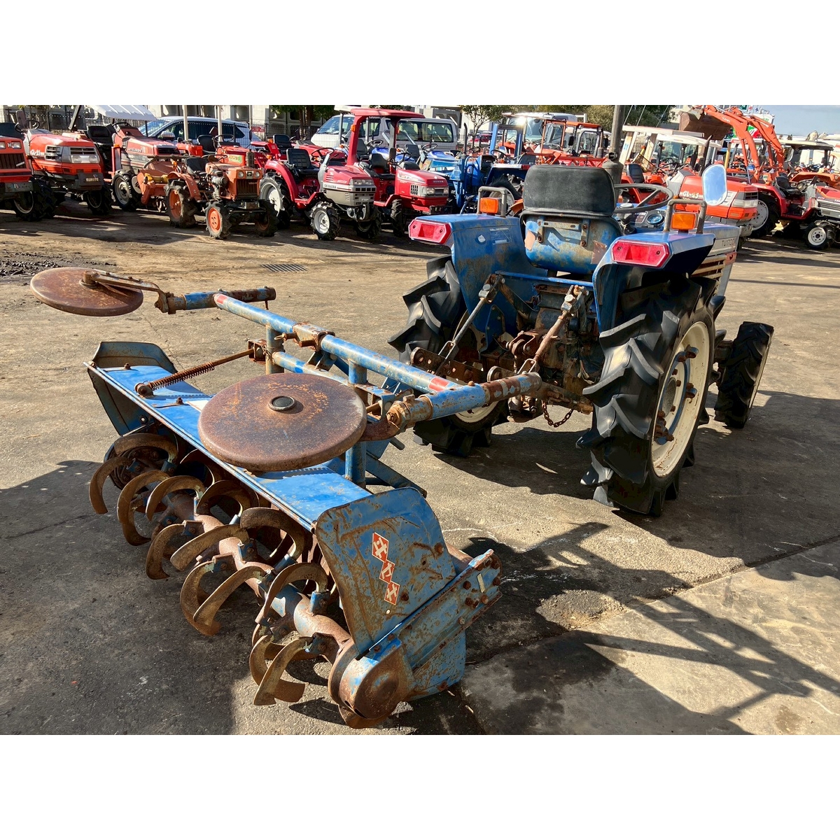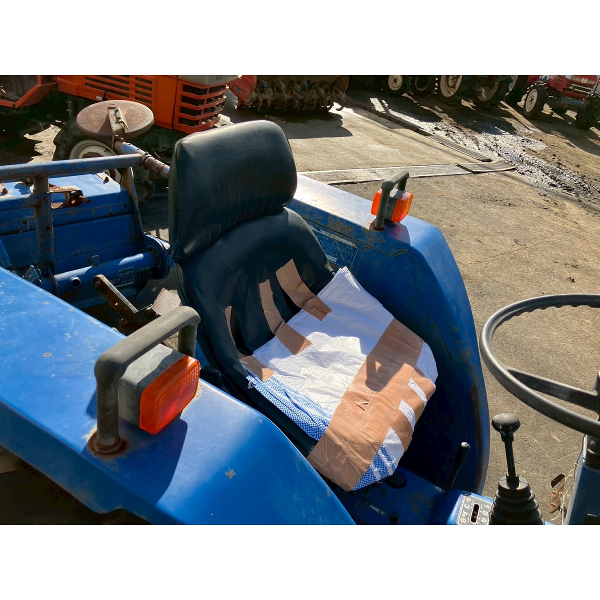 - with rotary, battery ok, without PS, cracked and worn all tires, tractor has rust, torn seat, missing front mask, left brake does not work, white smoke comes out if engine start but it would disappear after idling