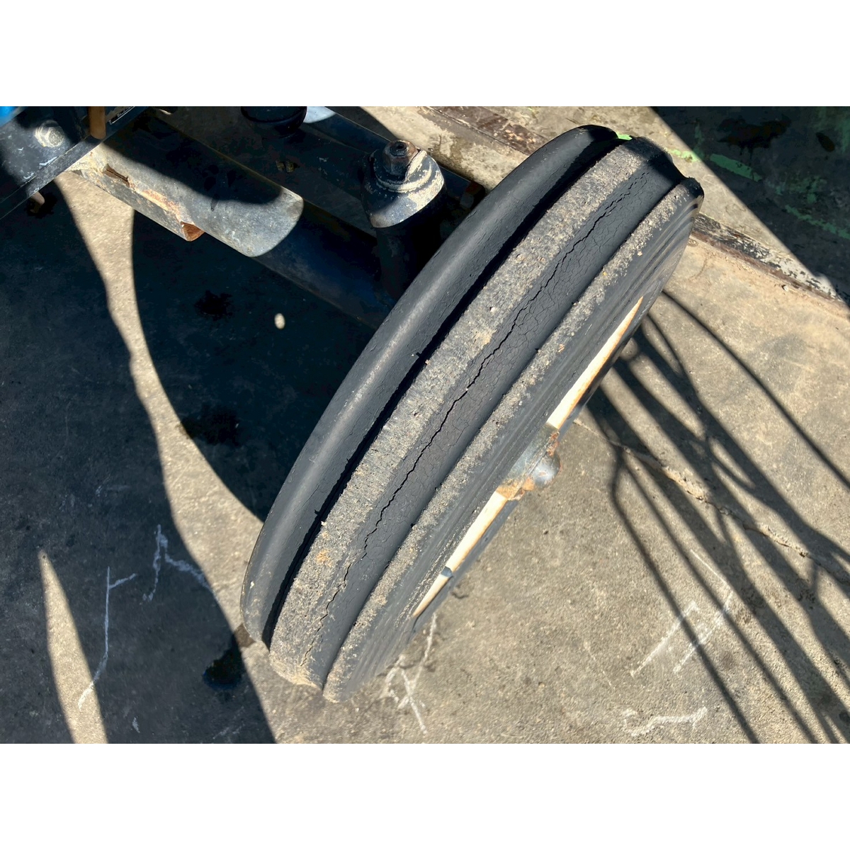 - with rotary, battery ok, without PS, cracked and worn all tires, slightly oil leak from around rear left tire