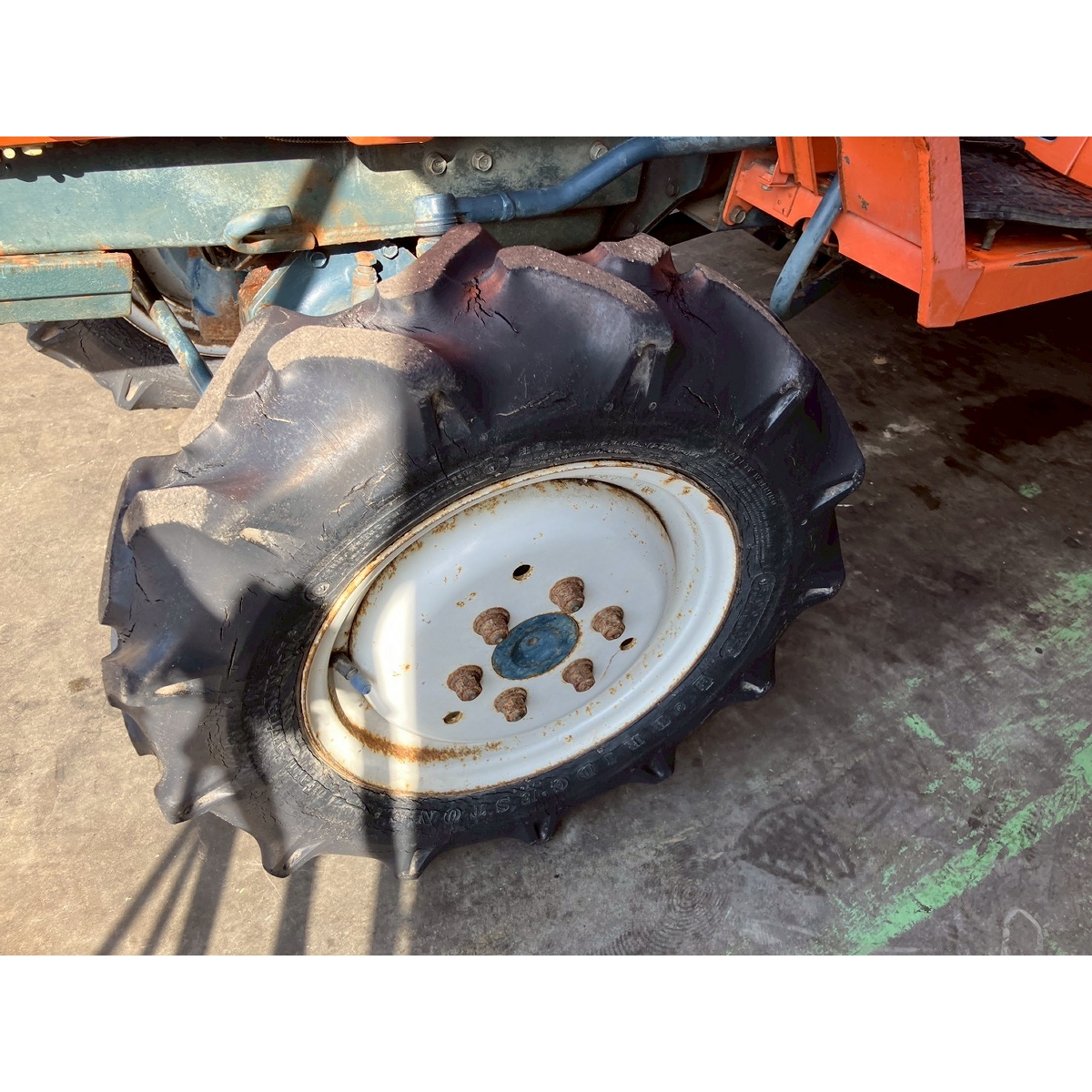 - with rotary, with battery, without ps, cracked front tires, high-range sub-transmission is stuck and does not operate, radiator has a leak due to rubber deterioration, tail wheel is missing, and there is slight blow-by.