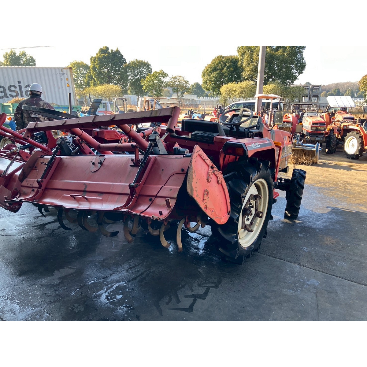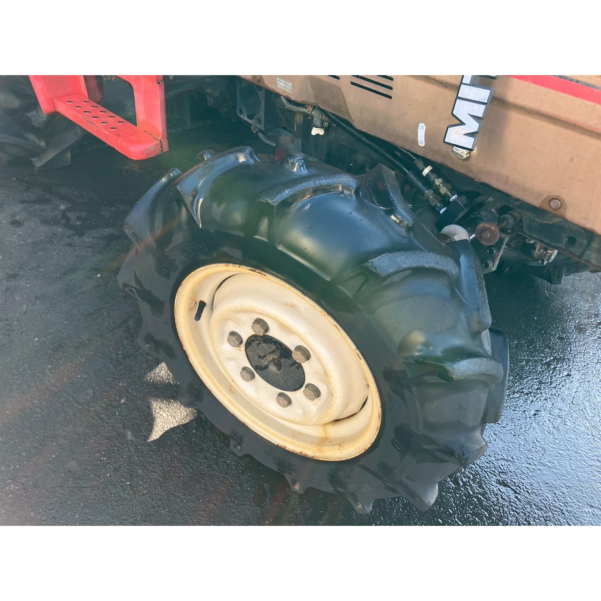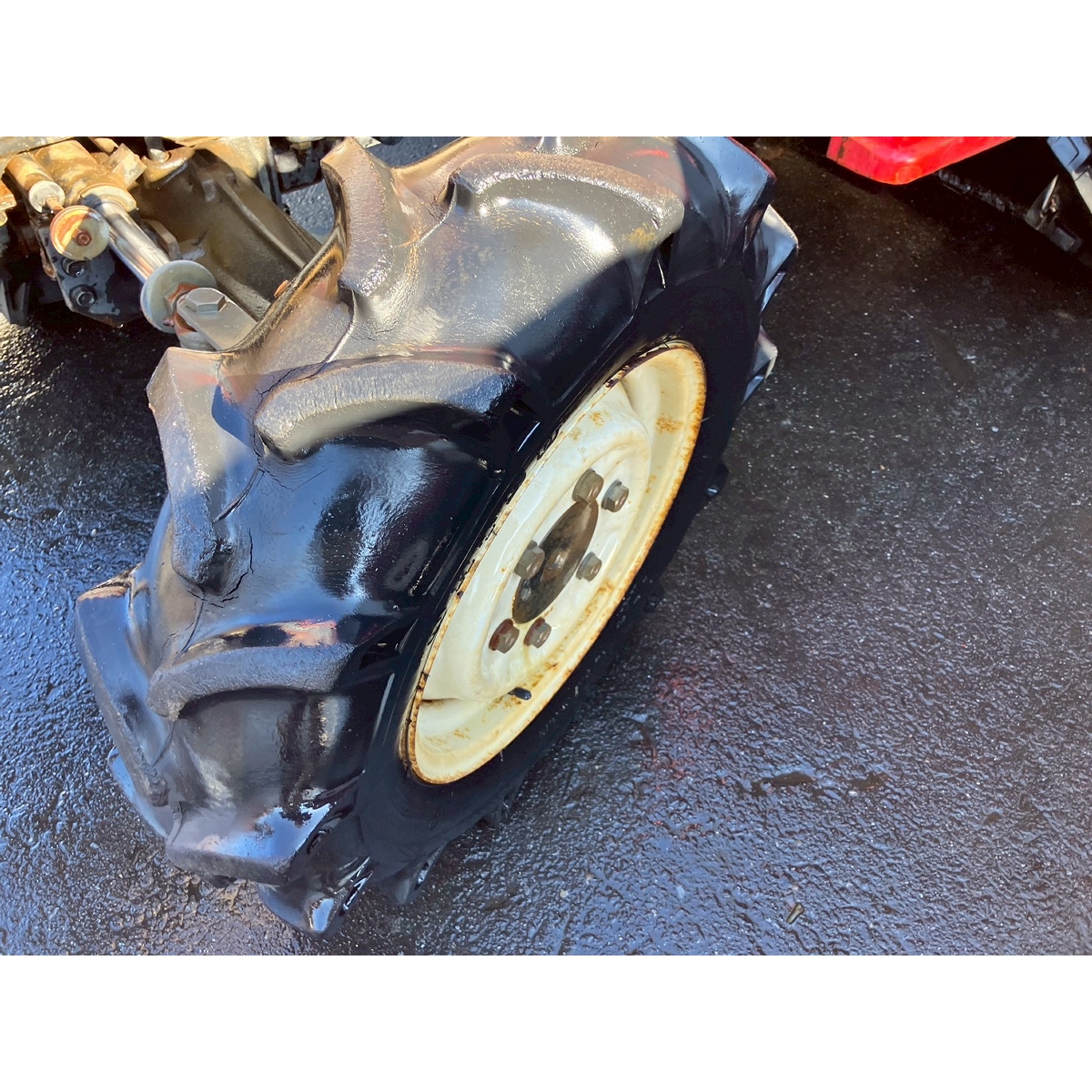 - with rotary, with PS, cracked and worn all tires, torn rear right tire, oil leak from front left tire, slightly oil leak from front right tire, white smoke, dent right side cover, rear right tire has run out of air, engine would be stable if engine speed increase (the engine is running rough at start)