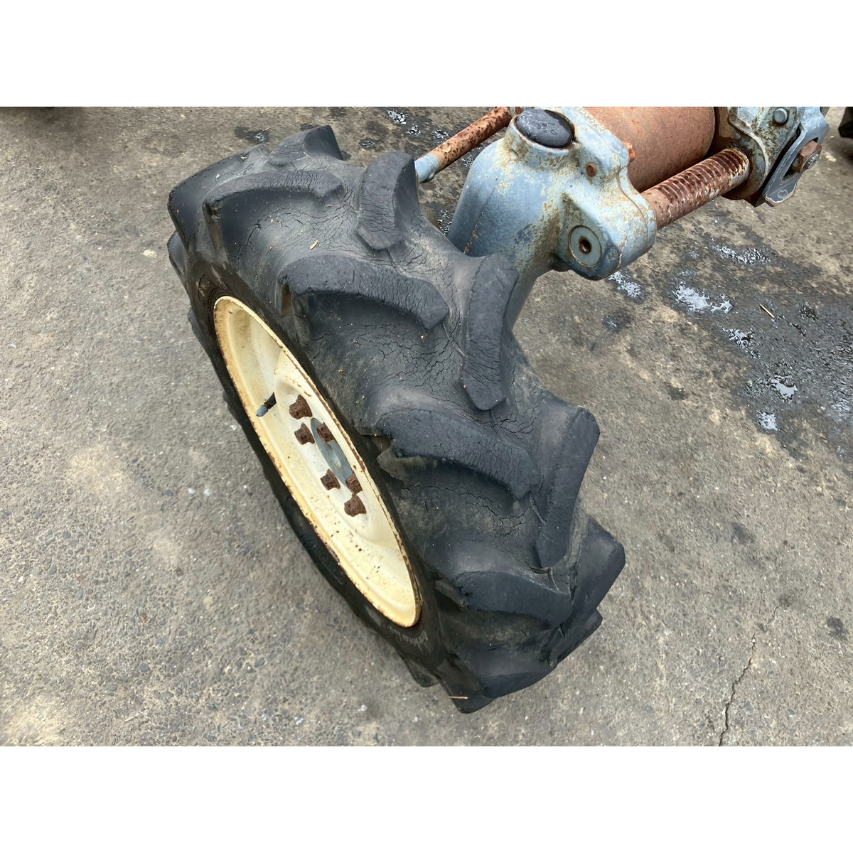 - without rotary, no battery, with PS, cracked and worn all tires, engine starts at 24 volts, faded and rusty exterior, torn seat, hole on bottom part of the seat, slightly oil leak from front tires and bottom part of tractor, PTO lever feels tight and it only work at first speed position, engine stop lever does not work