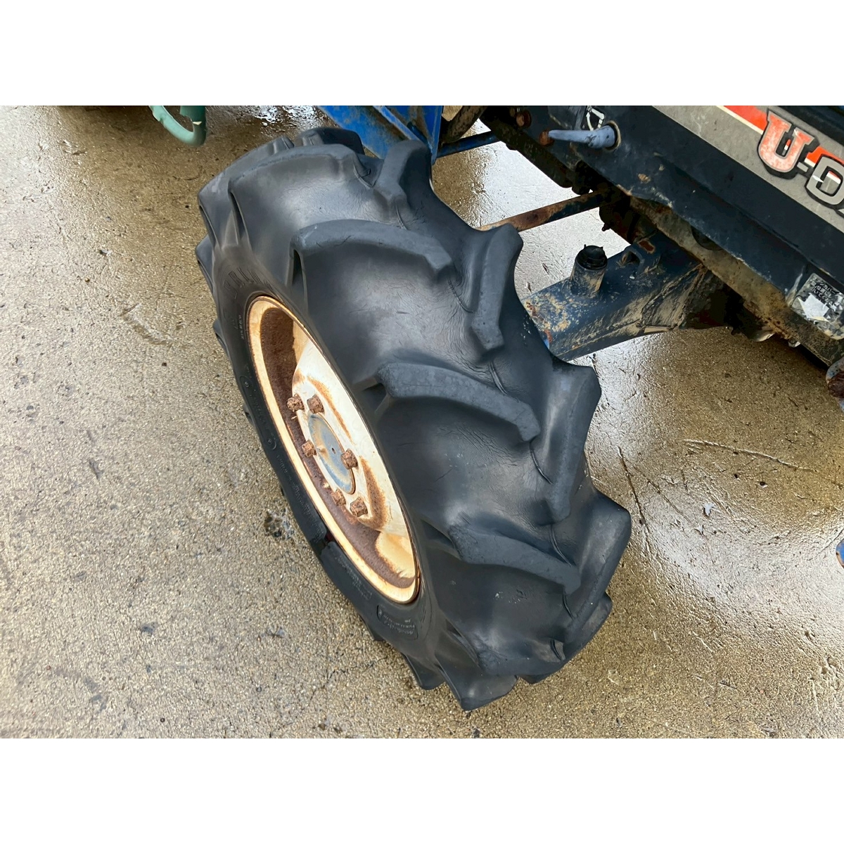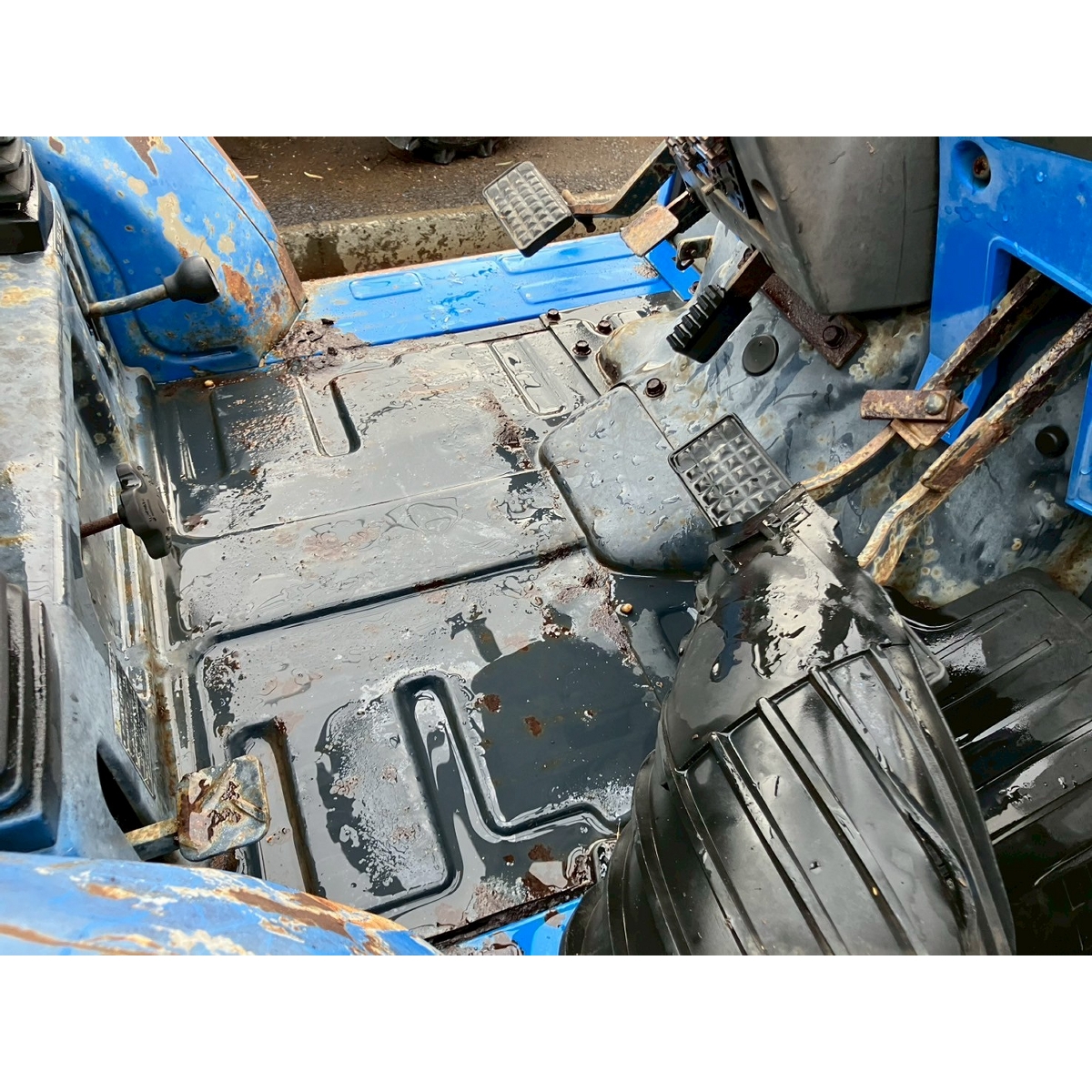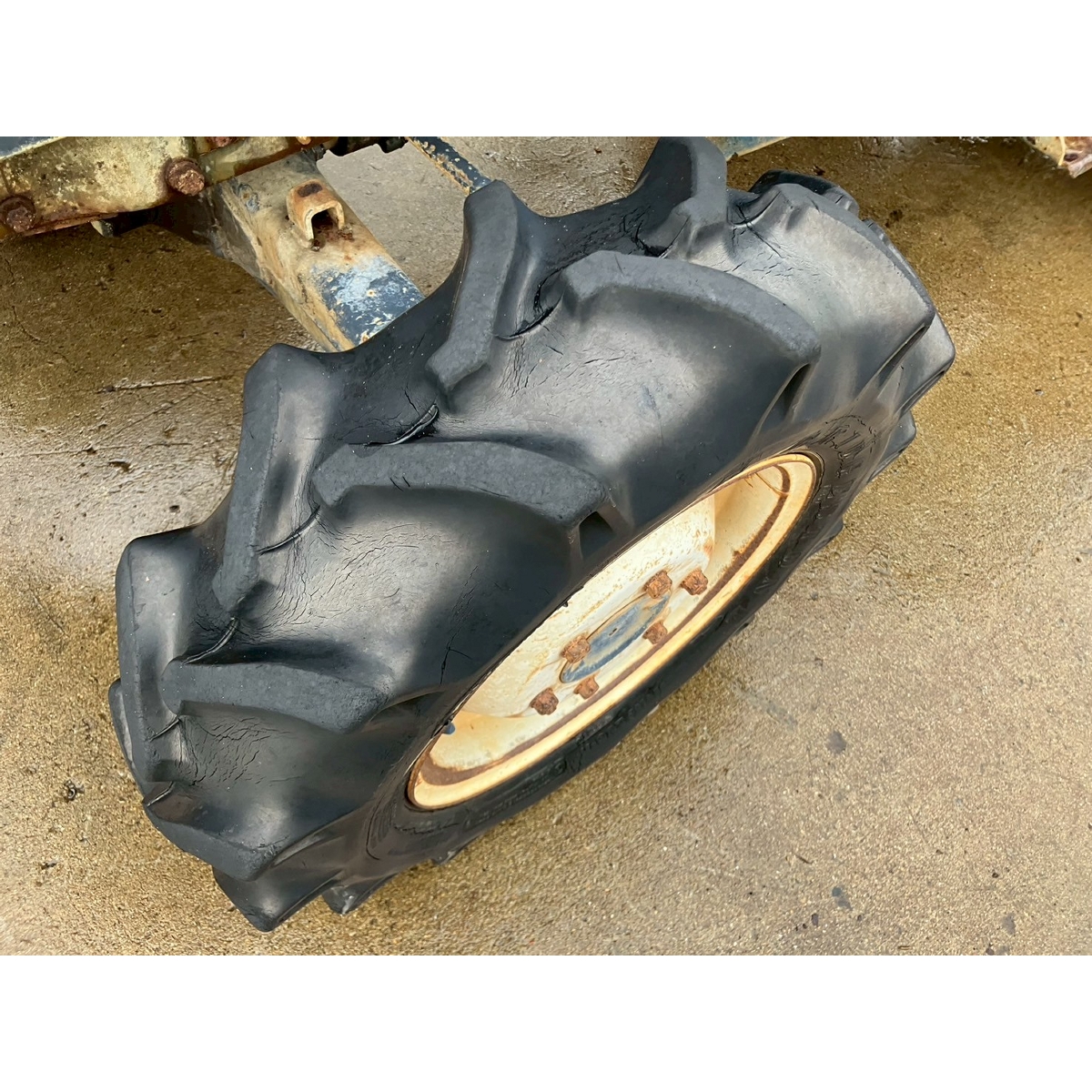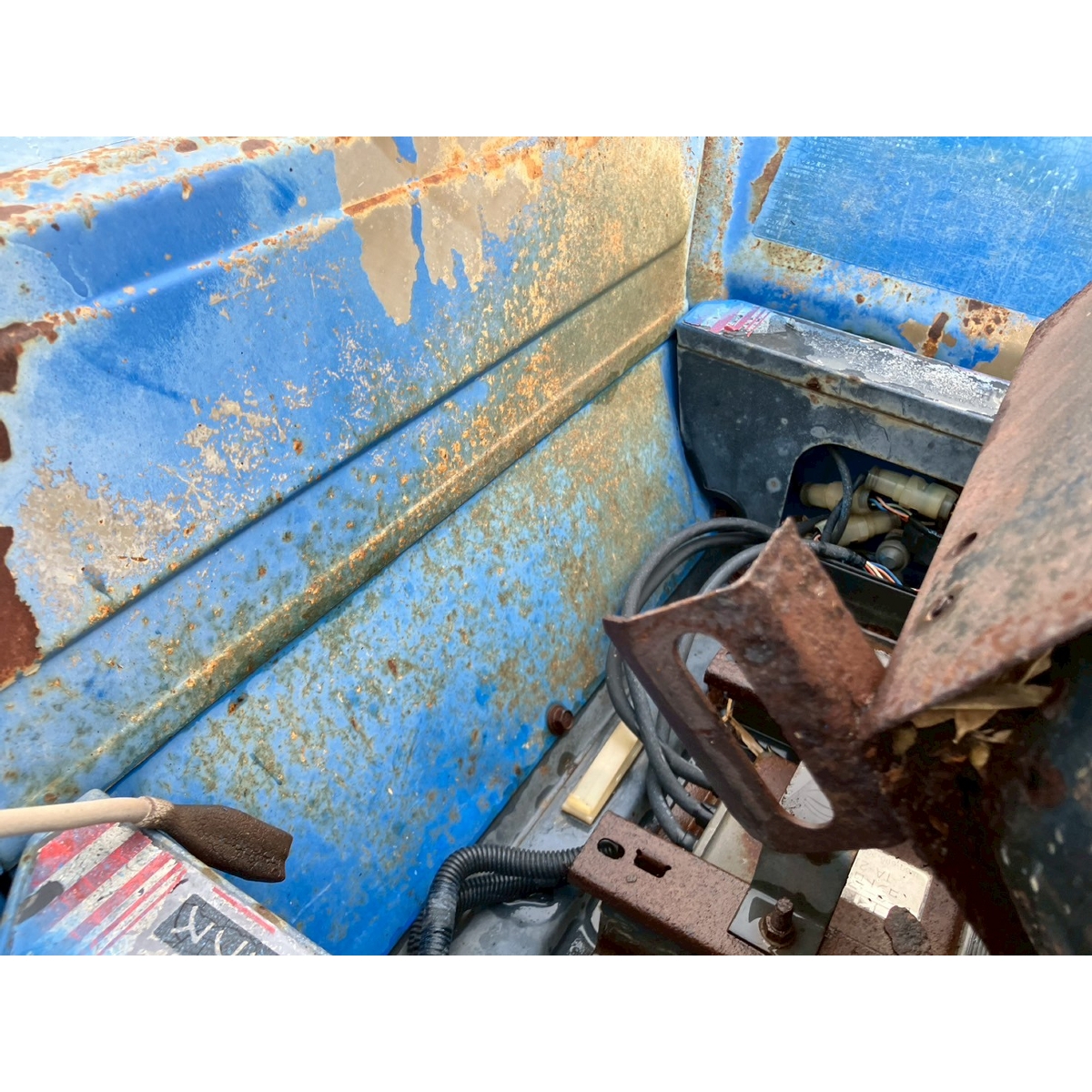 - with broadcaster, with battery, with ps, Tires show cracks and wear. Rust is present. Oil seepage is observed at the front axle and engine area. Corrosion is found under the foot mat.